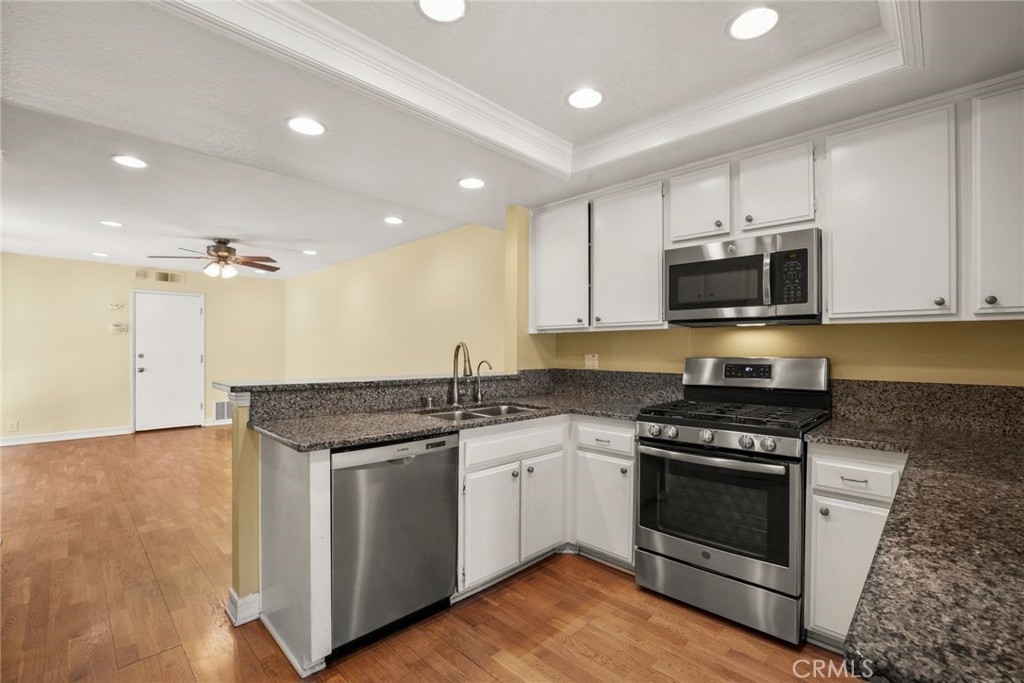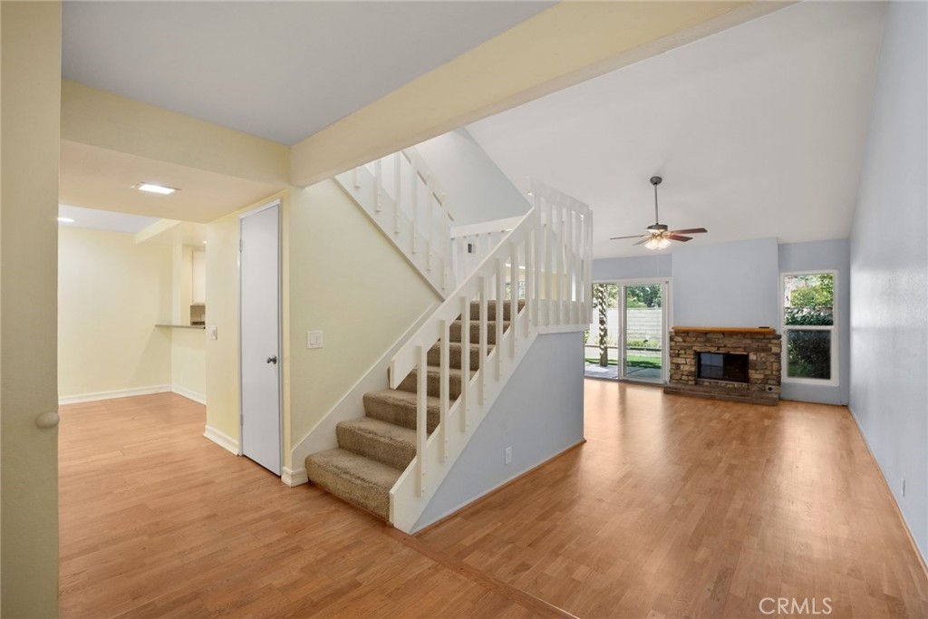 Beautiful 3 bedroom, 2.5. bathroom, 2 story home with hills and city lights views in the community of Aegean Heights in Mission Viejo! Enjoy a double door entry to high ceilings, hardwood flooring, and lots of natural light. The family room features an inviting brick fireplace, a ceiling fan, and flows to the gourmet kitchen. The kitchen offers stainless steel appliances, granite countertops, a breakfast bar, white cabinetry, and a breakfast nook. The primary bedroom features a walk-in closet, dual vanities in the primary bathroom, and a walk-in shower. Additional property highlights include a view deck from the upstairs and sliding doors to the downstairs covered outdoor patio. Community amenities include a swimming pool, spa, tennis courts, and clubhouse. Convenient to nearby schools, shopping, and major freeways!