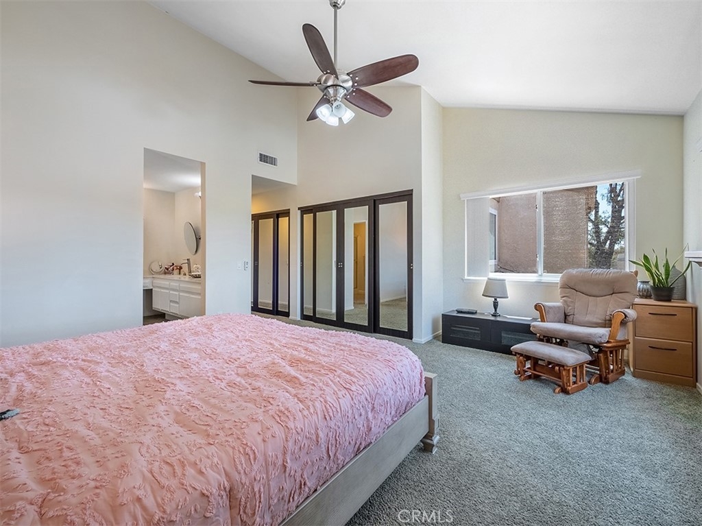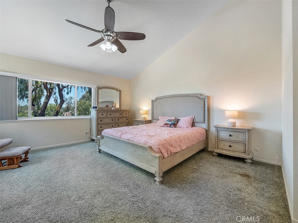 All recently renovated - One of the only few 4 bedrooms in this city and price range. Gated courtyard with brick pavers and new landscaping. Leaded glass front door leads you into over 2100 sq ft of bright and open space with a top of the line remodeled kitchen and Bathrooms! All Electrolux Stainless Steel appliances including fridge. New dual paned sliding doors and windows throughout. Huge master suite with high end wood framed mirrored wardrobe doors. Brand new interior paint, All New Luxurious Carpeting, Ceiling fans in almost every room + Whole house air cool system/fan. Newer water heater, Smart thermostat, 1 bedroom downstairs which is perfect for a guest room, home gym or office with a slider to the front courtyard. Convenient upstairs laundry. Backyard has a large patio overlooking a grove of Eucalyptus trees and a bubbling spa which is included. Low Taxes , Low HOA and No Mello Roos . Hurry- very popular plan!