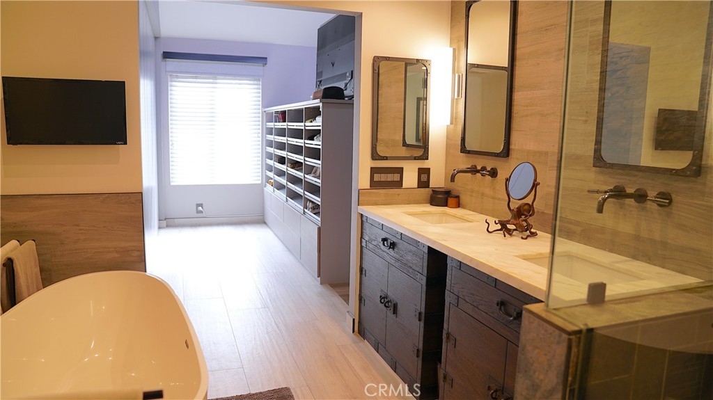 MUST SEE!!! This beautiful turnkey fully upgraded custom townhome. 3 bedroom, 2.5. bathroom, 2 story home in the community of Aegean Heights. Tropical bamboo covered entry helps with natural cooling of the structure leads to a rustic custom double door entry. Custom designed stone flooring around front door, stairwell and fireplace. Fireplace fully refurbished with custom doors. An open air living and dining area with high ceilings with a view of the custom built shelving in the loft-library and custom balustrades. House handcrafted by master carpenters utilizing reclaimed barn wood & wine barrel staves all flow into the gourmet kitchen. The kitchen equipped with custom stainless steel inserts, stone countertops, dry bar and a breakfast bar. The primary bedroom features full designer closets by California Closets. Master bath fully upgraded for spa style feel with TV, dual vanities, vintage above ground tub and spacious walk in shower. A custom aluminum pergola in backyard with a new TREX deck. Additional features include brand new water heater, fully replumbed pipes with PEX, Culligan water softener system. All windows and sliders are Anderson double pained. All new internal doors to rooms, upstairs front patio fully resurfaced and graded within last 12 months. All electrical fixtures updated, nest system. Community amenities include a swimming pool, tennis courts, and clubhouse. Convenient to nearby schools, shopping, and major freeways!