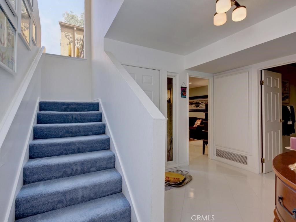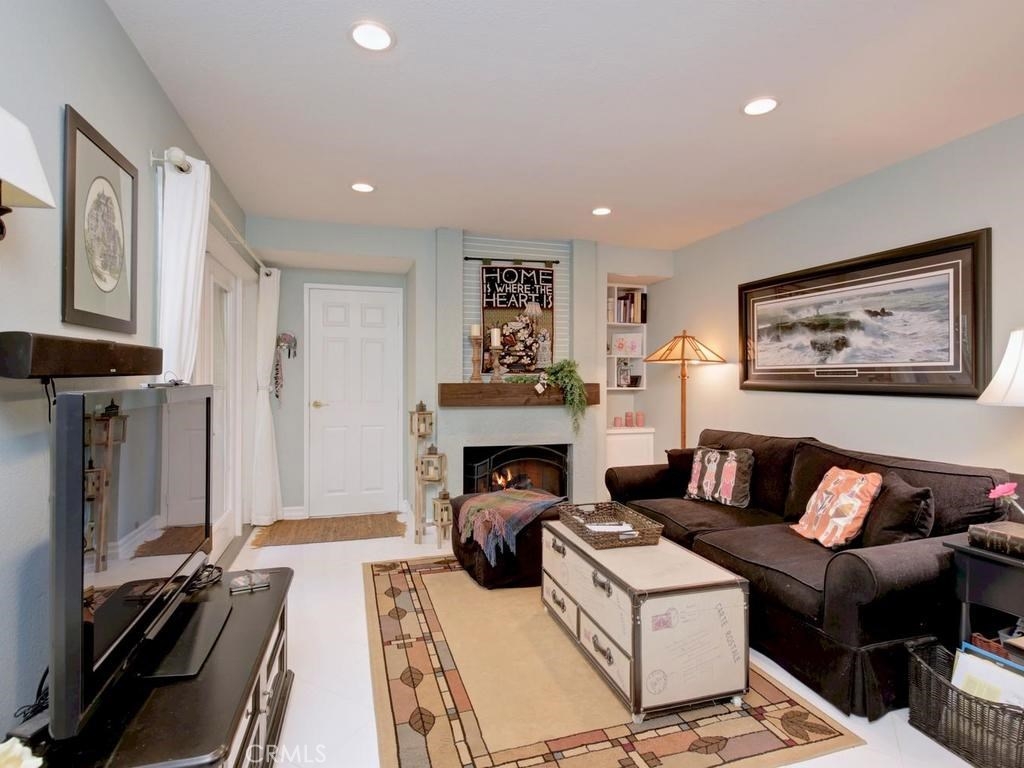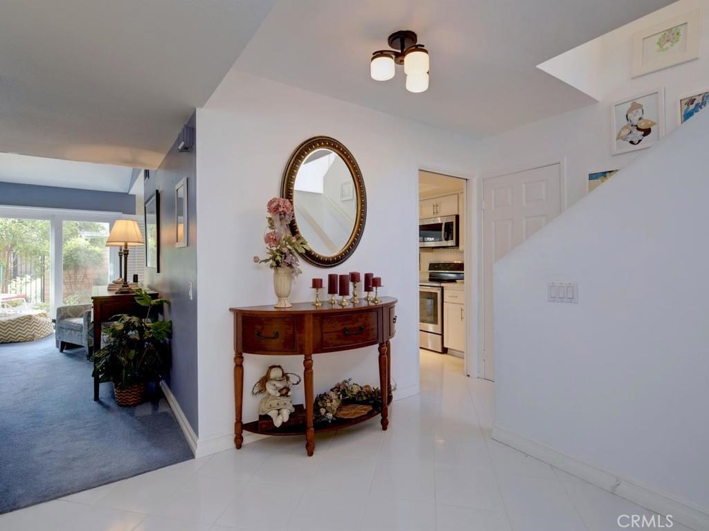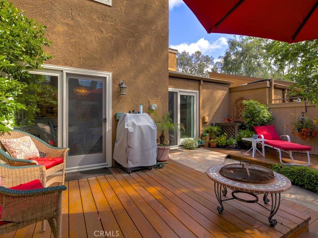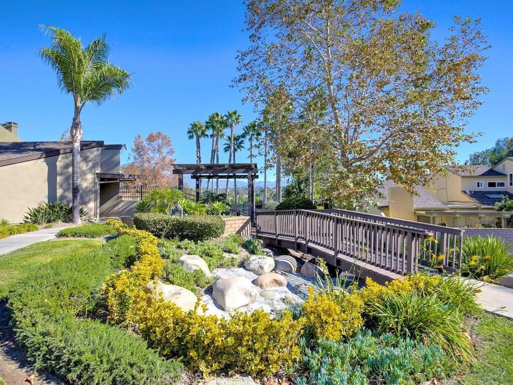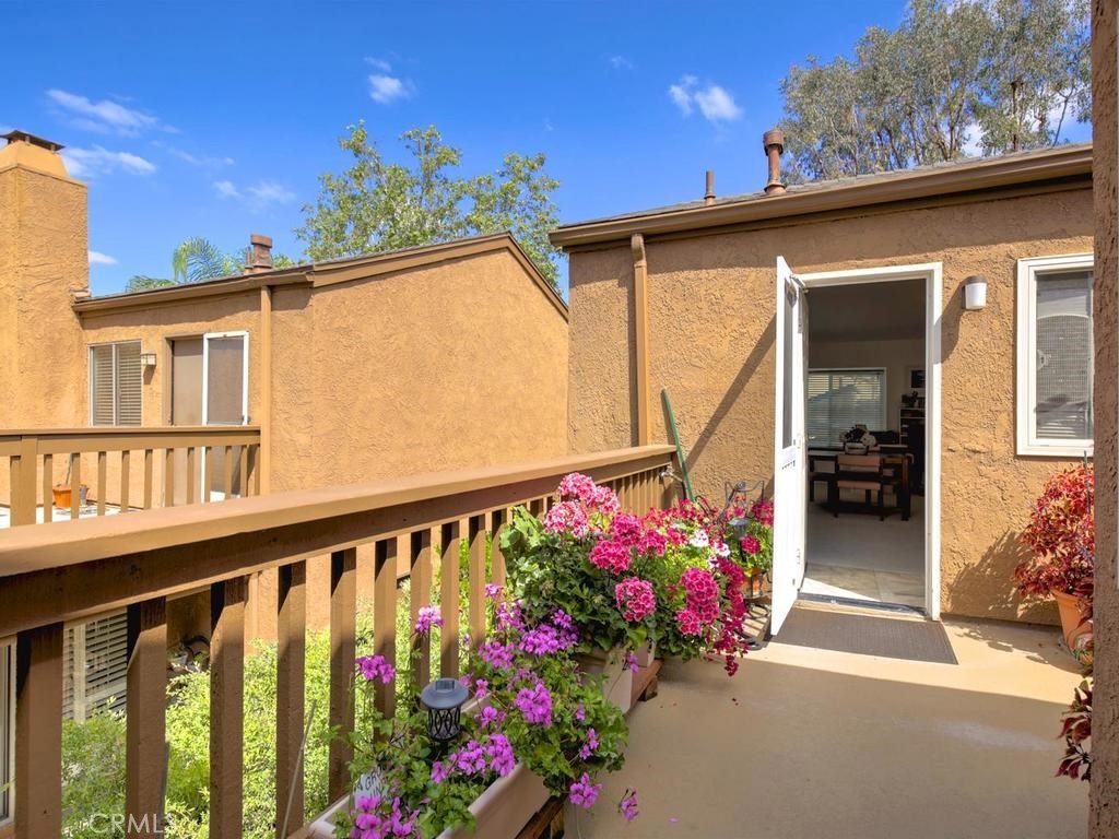 Andrea Court offers a spacious three bed/three bath home with plenty of space to spread out. The flagstone pathway leads thru the front patio to the entry. Downstairs enjoy both a large living room with vaulted ceilings and a cozy family room with fireplace. Both rooms have sliding doors adjacent to front and back patios, creating an airy indoor/outdoor appeal, whether you enjoy entertaining or just relaxing. The kitchen has been attractively remodeled with newer appliances, white cabinetry with pull-outs, deep Silestone sink, quartz countertops and tile flooring. A large pantry or storage is built-in under the stairway. The dining area is off the kitchen and opens to the back patio. Upstairs, the master suite is airy, light and bright with a pitched ceiling, walk-in closet and ensuite bathroom. The secondary bedroom is spacious and the closet is deep. The deck upstairs leads to the huge bonus room, with closets, built-ins, and window seats. It's currently used as a third bedroom/studio but has endless opportunities for your needs. The upstairs deck also creates a nice space for retreat. Additional upgrades include recessed lighting, plantation shutters, newer windows and a newer water heater. You will enjoy the association clubhouse, pool, spa and tennis courts of Aegean Heights. Visit the city of Mission Viejo’s website to browse the interactive map of its 52 parks, open spaces and trails, amazing recreation for enjoyment! Aegean Heights is the hidden gem calling you home!