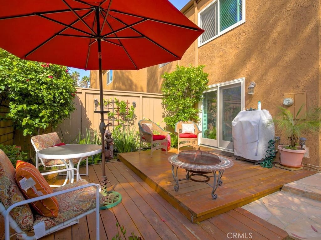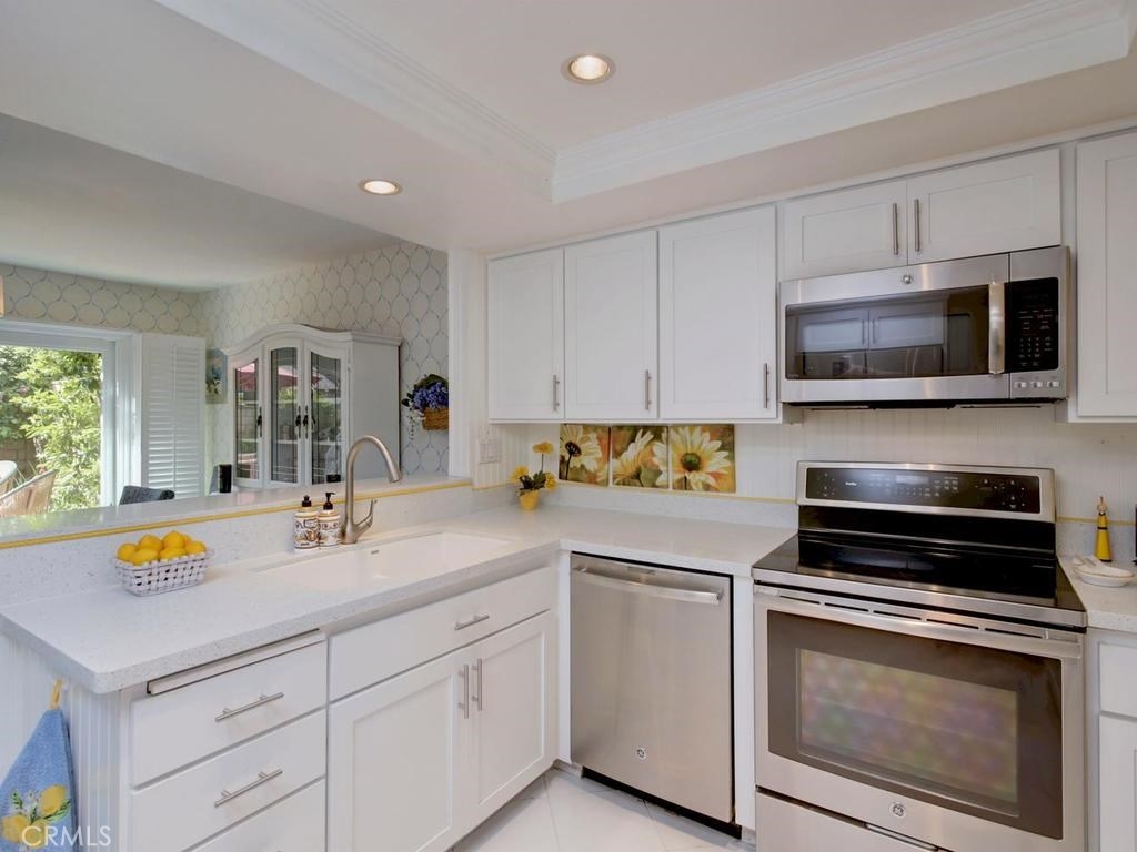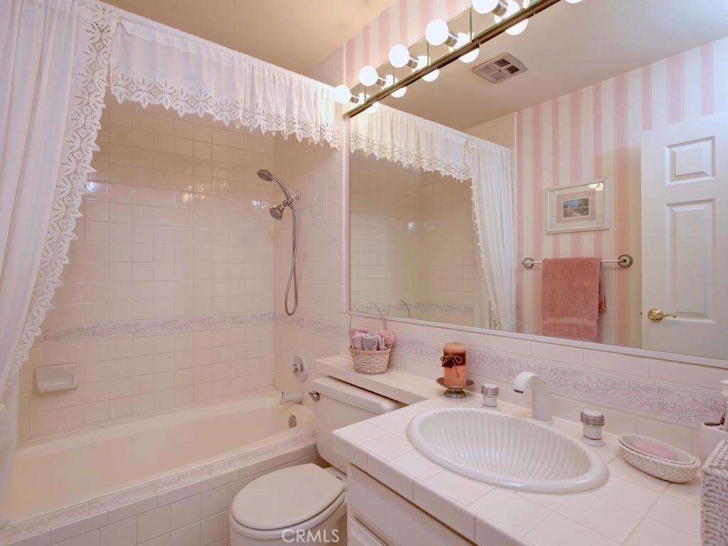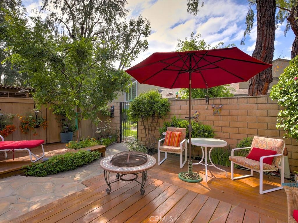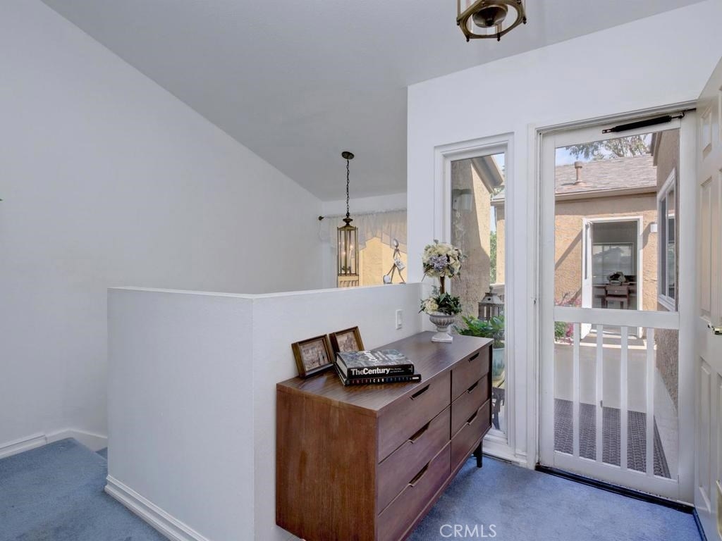 Andrea Court offers a spacious three bed/three bath home with plenty of space to spread out. The flagstone pathway leads thru the front patio to the entry. Downstairs enjoy both a large living room with vaulted ceilings and a cozy family room with fireplace. Both rooms have sliding doors adjacent to front and back patios, creating an airy indoor/outdoor appeal, whether you enjoy entertaining or just relaxing. The kitchen has been attractively remodeled with newer appliances, white cabinetry with pull-outs, deep Silestone sink, quartz countertops and tile flooring. A large pantry or storage is built-in under the stairway. The dining area is off the kitchen and opens to the back patio. Upstairs, the master suite is airy, light and bright with a pitched ceiling, walk-in closet and ensuite bathroom. The secondary bedroom is spacious and the closet is deep. The deck upstairs leads to the huge bonus room, with closets, built-ins, and window seats. It's currently used as a third bedroom/studio but has endless opportunities for your needs. The upstairs deck also creates a nice space for retreat. Additional upgrades include recessed lighting, plantation shutters, newer windows and a newer water heater. You will enjoy the association clubhouse, pool, spa and tennis courts of Aegean Heights. Visit the city of Mission Viejo’s website to browse the interactive map of its 52 parks, open spaces and trails, amazing recreation for enjoyment! Aegean Heights is the hidden gem calling you home!