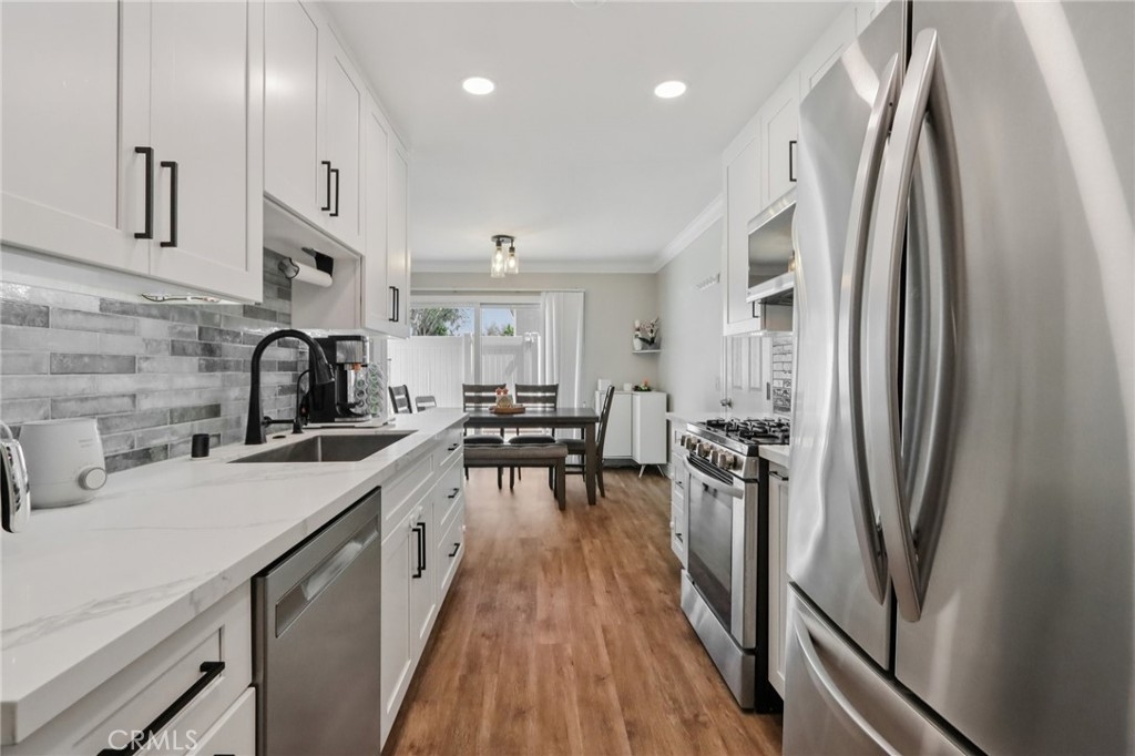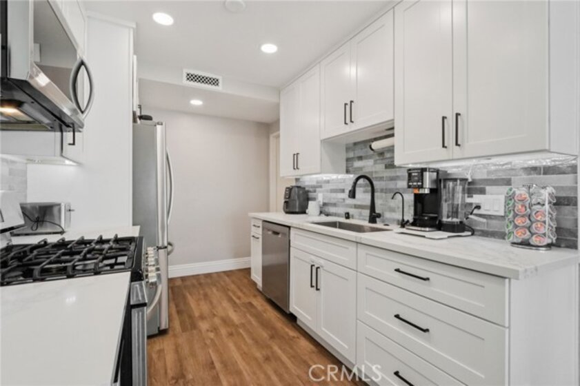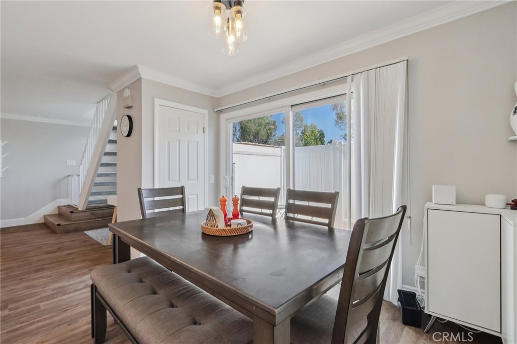 Welcome to 22944 Via Pimiento, a beautifully updated 3 bedroom, 1.5 bathroom condo in the desirable Aliso Villas community with no one above or below. This thoughtfully improved home offers a functional and inviting layout with all bedrooms located upstairs, including a stunningly remodeled full bathroom featuring a tub/shower combination. The spacious primary bedroom includes a walk in closet and direct access to the upstairs bathroom, creating a comfortable and private retreat. Downstairs, the open concept living space seamlessly connects the living room, dining area, and a tastefully remodeled kitchen complete with shaker cabinets, quartz countertops, stainless steel appliances, and a stylish tile backsplash. A recently updated half bathroom adds convenience for guests, while new luxury vinyl plank flooring enhances the entire lower level. Crown molding, recessed lighting, dual pane windows, and fresh interior paint within the last few years add a refined and well maintained feel. Sliding glass doors lead to a private patio, perfect for relaxing or entertaining. Enjoy direct access from the unit into your attached one car garage, offering both convenience and privacy, along with ample storage and private laundry hookups, plus an additional reserved parking space conveniently located right in front of the home. Comfort and efficiency are top of mind with a brand new Carrier HVAC system along with newly installed ducting, as well as a new water heater. The HOA has recently replaced the water lines within the unit, providing an additional level of confidence for future ownership. Every inch of this home reflects pride of ownership and meticulous care. Residents of Aliso Villas enjoy access to a community pool and playground, along with a prime location near parks, walking and biking trails, shopping, and schools. This home also includes membership to Lake Mission Viejo, offering access to two sandy swimming beaches, boating and fishing, picnic areas, a clubhouse, and year round events including summer concerts.