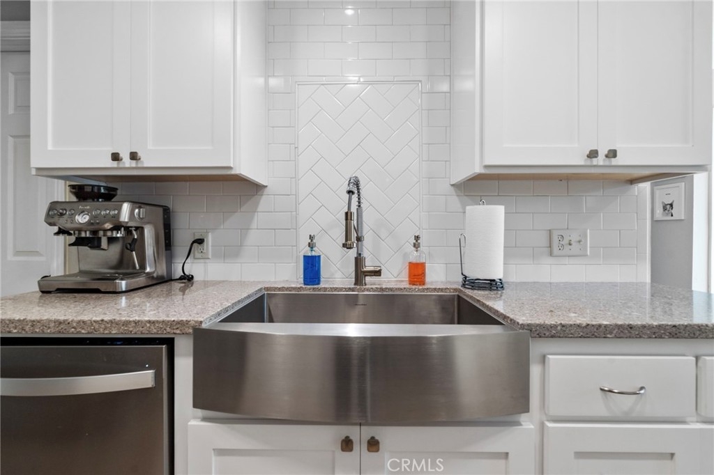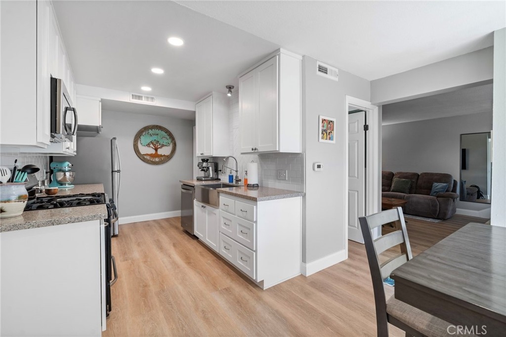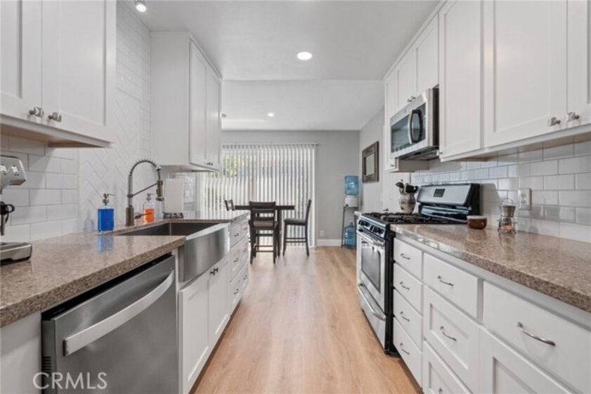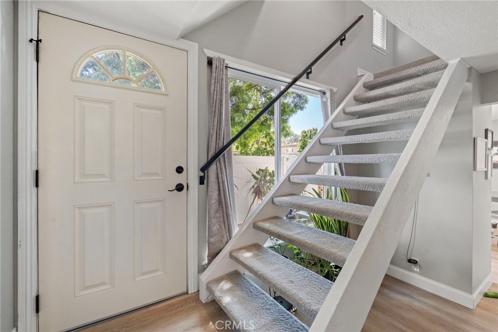 Beautifully remodeled 2-bedroom, 1.5-bath home located in the desirable Aliso Villas community of Mission Viejo. This well-maintained residence features upgraded luxury vinyl flooring throughout the downstairs, and a stunning remodeled kitchen complete with quartz countertops, stainless steel appliances, and a stylish farmhouse sink, large baseboards. Enjoy the convenience of direct access to the patio with recent fencing and a one-car garage with laundry hookups. Upstairs, you’ll find two spacious bedrooms, including one with custom built-in storage, and a beautifully updated bathroom showcasing a modern walk-in shower. Additional highlights include a one-car garage, an assigned parking space, and access to resort-style community amenities such as a pool and playground one building away. Exclusive membership to Lake Mission Viejo, which offers activities such as concerts, 4th of July event, boat rentals and two beaches. This turnkey home offers the perfect blend of style, comfort, and an exceptional lifestyle opportunity you won’t want to miss.