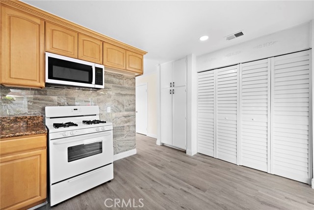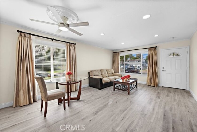 Located in the serene community of Aliso Villas, and in beautiful Mission Viejo, this stunning townhome offers an ideal blend of comfort and modernity. As you step inside, you're greeted by the warm new vinyl plank flooring that flows seamlessly throughout the space, enhancing both aesthetics and functionality. The recently updated bathroom exudes contemporary elegance with a tasteful design. With a newer water heater and pex plumbing installed throughout, you have a peace of mind for many years to come. Enjoy the efficiency with central cooling and heating, as well as quality dual payne windows that invite natural light while maintaining a comfortable indoor environment. These windows also have a dual cover option with elegant drapes and designer faux blinds. The roof, garage door and exterior paint are only a few years old. In the kitchen, granite countertops complement the newly installed backsplash, creating a stylish backdrop for culinary adventures. Equipped with reverse osmosis in the kitchen and a water softener for the entire home, enjoy purified water for cooking, cleaning and drinking. Mirrored closets maximize space and functionality, while new baseboards add a polished finish to the interiors. Home also includes newly installed LED lights, electrical outlets, decorative switches, ceiling fans and a weatherproof pedesteian entry door for the garage. The array of amenities allows you to relax in the pool and spa or let your children explore and have fun at the playground, or socialize with neighbors in the clubhouse. HOA dues also include weekly trash pick up and access to beautiful Lake MV. Enjoy the convenience of ADA compliant ramps at the front and back entrance which ensures easy accessibility for all residents and their guest. Convenience is further enhanced with a washer and dryer conveniently located inside the unit. Did I mention the luck of scoring a corner space? The home has only 1 attached neighbor and conveniently located closer to additional street parking with a larger backyard, you'll be the envy of the neighborhood. With a myriad of upgrades, this classy townhome presents the most unparalleled and affordable opportunity for modern living in the heart of desirable Mission Viejo.