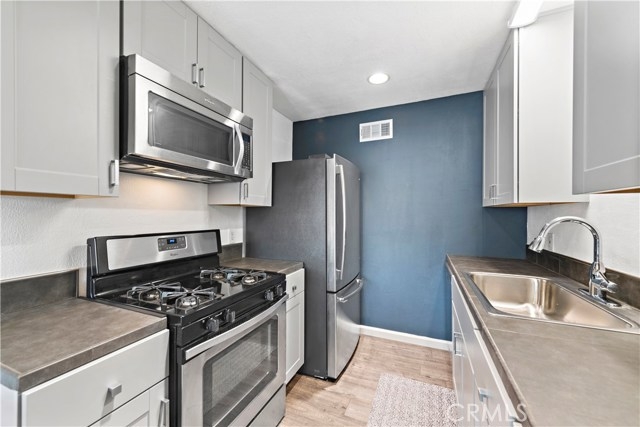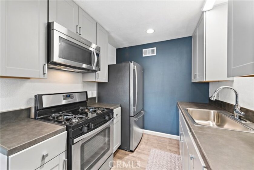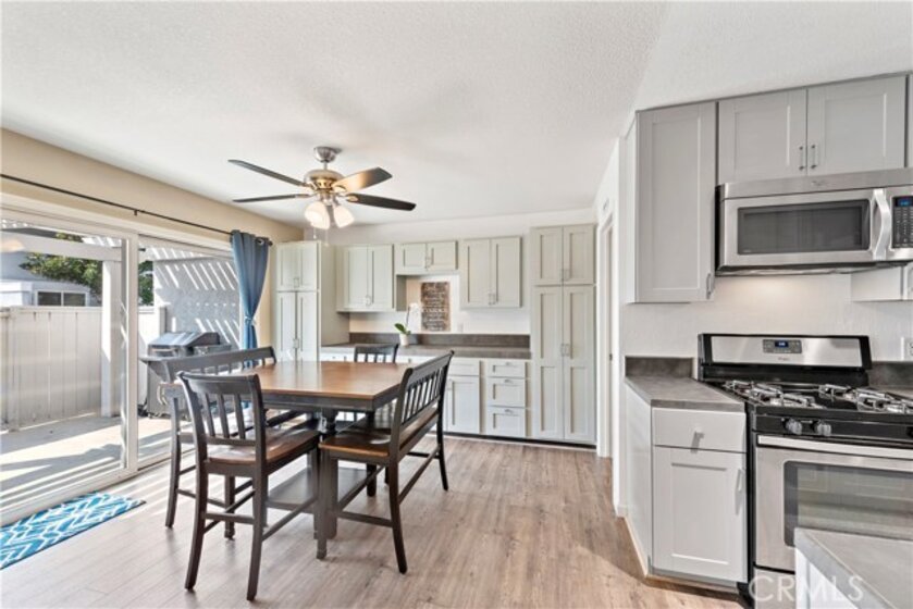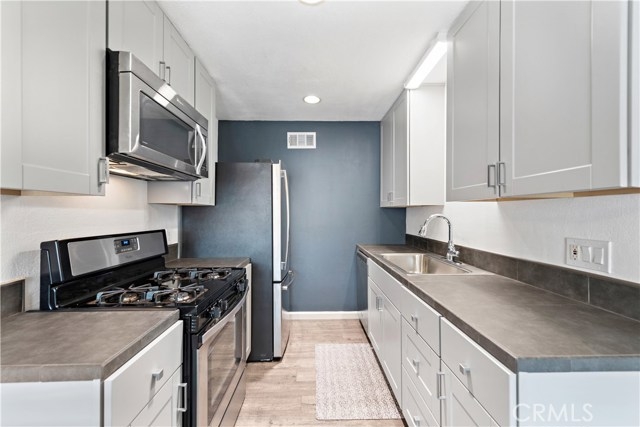 Condo – Single-level “Aliso Villas” in Mission Viejo – 3 bedrooms, 2 baths, 1,200 sq. ft. condominium. Rare! Single level condos with a large, covered, private patio off the dining room area is a rare find—an even greater investment! Recently updated with new flooring and paint throughout. The kitchen has recently been remodeled with handsome Gray Mohak Oak laminate flooring (waterproof and scratch-resistant). Beautiful custom tiles in both bathrooms. The “Aliso Villas” condo has a beautiful floor plan offering the open-concept feel with the living room opening to the kitchen and dining areas. Master suite includes a walk-in closet and a beautiful master bath updated with custom tile work and modern tile flooring. Enjoy the one car, detached garage located close to the condo, and one assigned parking spot conveniently located directly in front of the condo making life easier. Move in ready!
