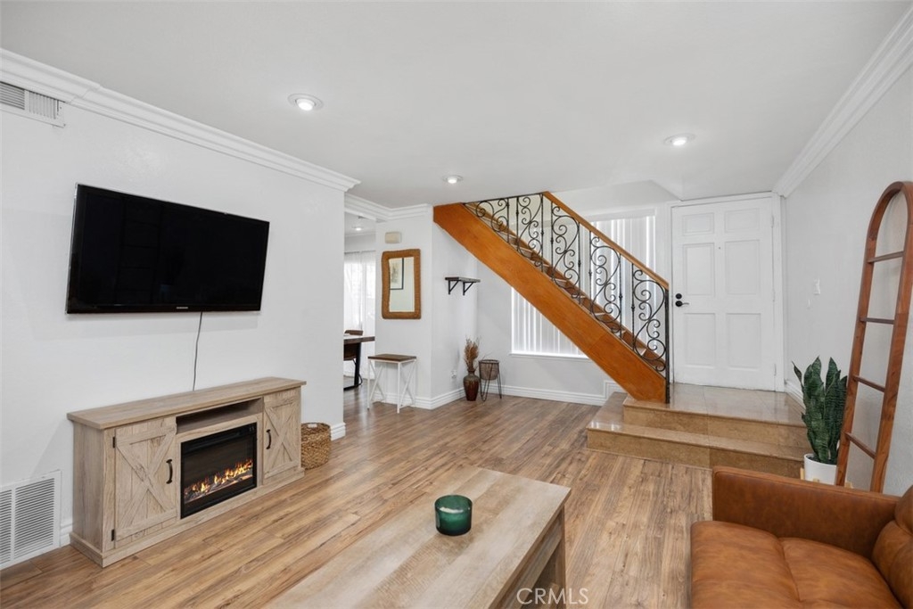 Welcome to this beautifully upgraded townhouse-style condominium in the Aliso Villas Community of Mission Viejo. This two level home offers 2 bedrooms, 1.5 bathrooms, and a convenient one-car garage with direct access. Upon entry, you are greeted with a great living space, new vinyl flooring that flows seamlessly throughout, and fresh paint creating a light-filled ambiance. Enjoy recessed lighting that illuminates the interior and crown molding throughout. The kitchen features stainless steel appliances, granite countertops, ceramic backsplash, and adjacent is a private patio space to entertain. On the second level, two generously sized bedrooms with a walk-in closet in the primary and ample closet space in the other. Both bathrooms were recently updated and the primary bathroom features a new sliding glass shower door. Ideally located close to the community's pool, spa, playground, and park, all of which are offered by the Aliso Villas Association for enjoyment. Additionally, you have Mission Viejo Lake privileges, close proximity to restaurants, shopping destinations, and a great school system. Don't miss out on this opportunity!