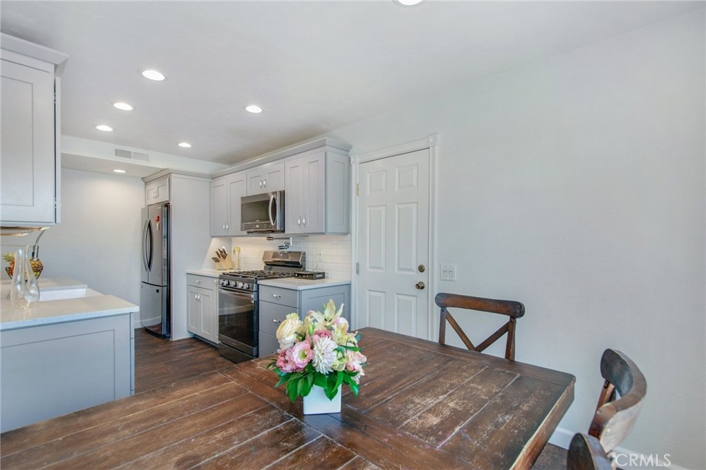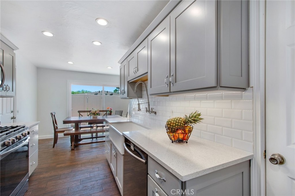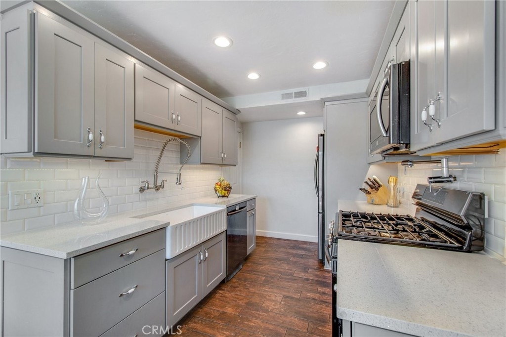 AWESOME PRICE REDUCTION! Welcome home to this wonderful PRIVATE condo located in the lush community of Aliso Villas. LOCATION is key as this home is a quiet END UNIT with no one above or below you. Thoughtfully remodeled in recent years with recessed lighting, porcelain tile flooring throughout, updated baths and kitchen! (All windows are less than 10 years old and AC was replaced in 2018.) Entertain your friends and family in this inspiring kitchen, accented with quartz countertops, tile backsplash, farmhouse sink and Samsung appliances. The dining area is adjacent and a new vinyl 8 ft. sliding patio door leads you to your sunny, very private patio with gate and vinyl fencing. Upstairs the primary bedroom suite is complete with a renovated bathroom, ceiling fan and recessed lighting. The secondary bedroom is very close and could accommodate a private bath if desired. Call agent for details...The laundry area is located in the attached one car garage, there is also an assigned parking space close by. Sparkling pool and tot lot for the kiddos is just steps away from your front door. At your option, this property allows you to take advantage of a membership to Lake Mission Viejo with private beaches, concerts and boating.