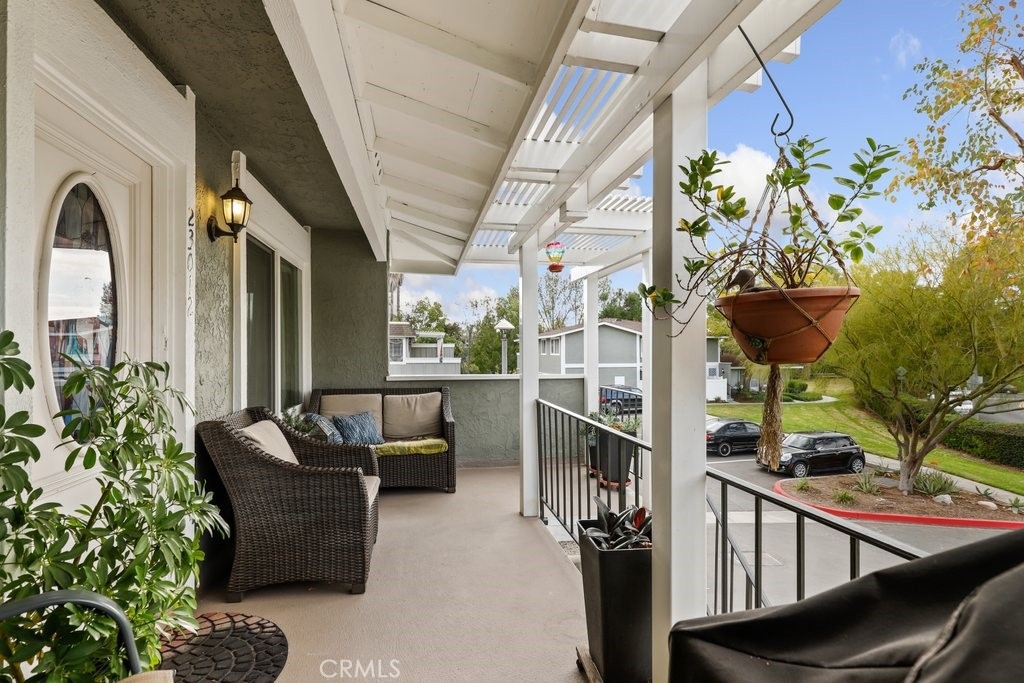 Beautiful upper-level condo located in the Aliso Villas neighborhood of Mission Viejo. This condo has one of the best locations in the complex, adjacent to the community pool and park. Enter into the inviting living room featuring rich wood-look laminate floors that add to the cozy feeling of comfort. The neighboring kitchen features granite counters, glass tile backsplash and a dining area. Just past the kitchen is a convenient, full-size laundry room. Guest have access to the 1/2 bath which adjoins to the master through the tub and shower area. Down the hall, the master bedroom features a walk-in closet and a private vanity in the primary suite and access to the tub and shower. The secondary bedroom is generously sized and adjacent to the full hall bathroom. Also featuring a one-car garage. Enjoy the spacious and private front patio. This home also comes with Mission Viejo Lake privileges. Welcome home!