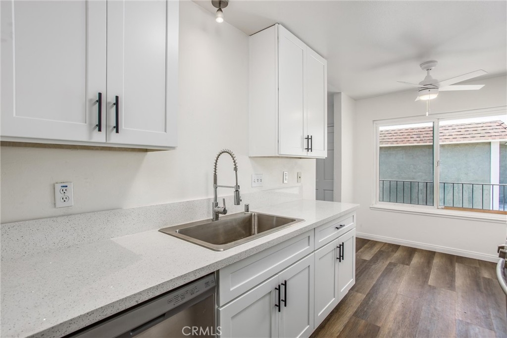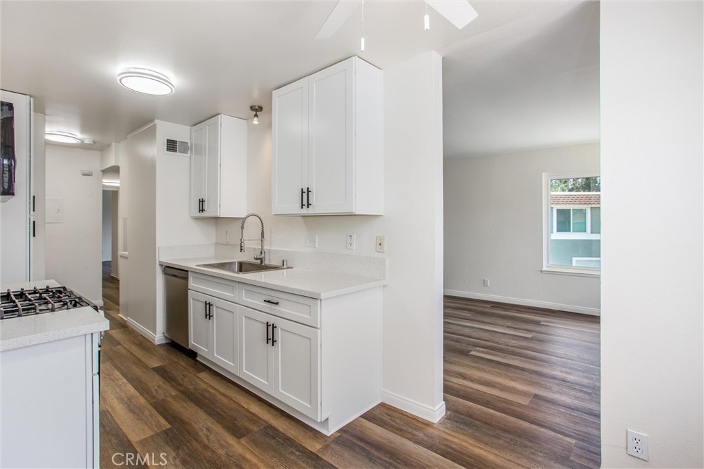 MOVE IN READY! Priced below market!! Newly renovated and gorgeous turn key condo at the beautiful Aliso Villas. This upstairs end unit with an expansive front patio is complete with new paint, new high end waterproof laminate flooring as well as new appliances, ceiling fans, quartz counter tops and new designer kitchen cabinetry. The condo also features an interior laundry room. The expansive one car garage is conveniently located nearby with one assigned parking space as well. Moreover, this well maintained condo community boasts a children's park, swimming pools, spa, and access to lake rights. Award winning schools near by, upscale restaurants, shopping and easy access to freeways.