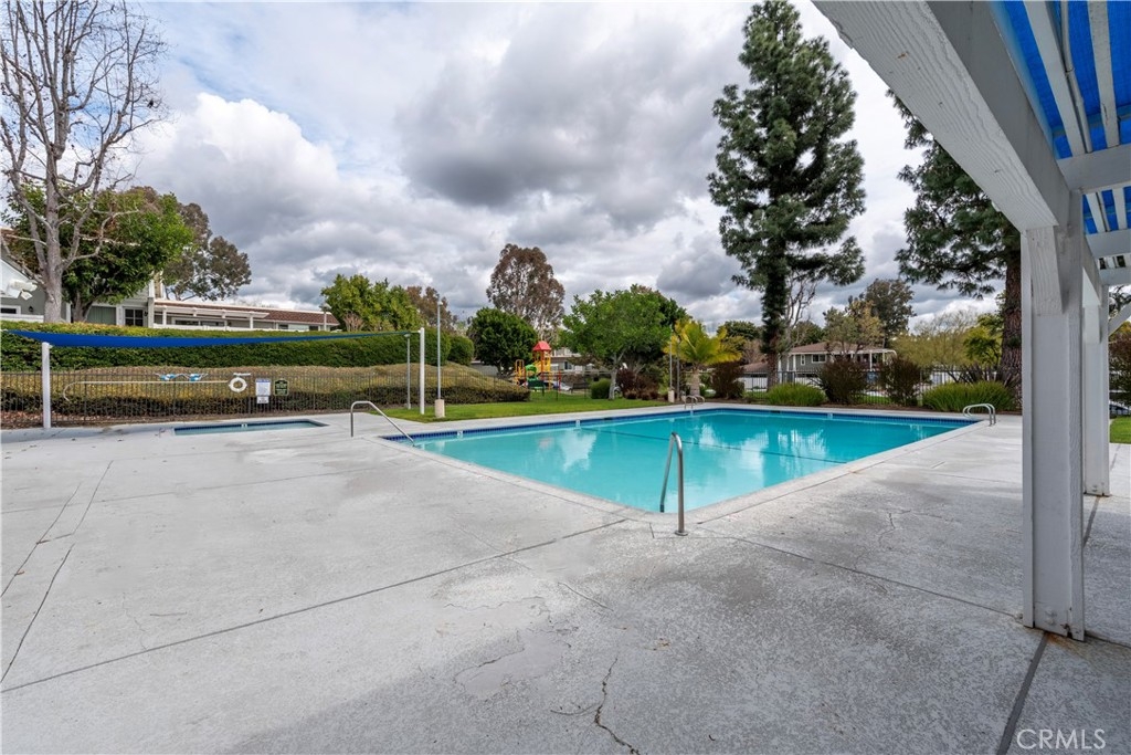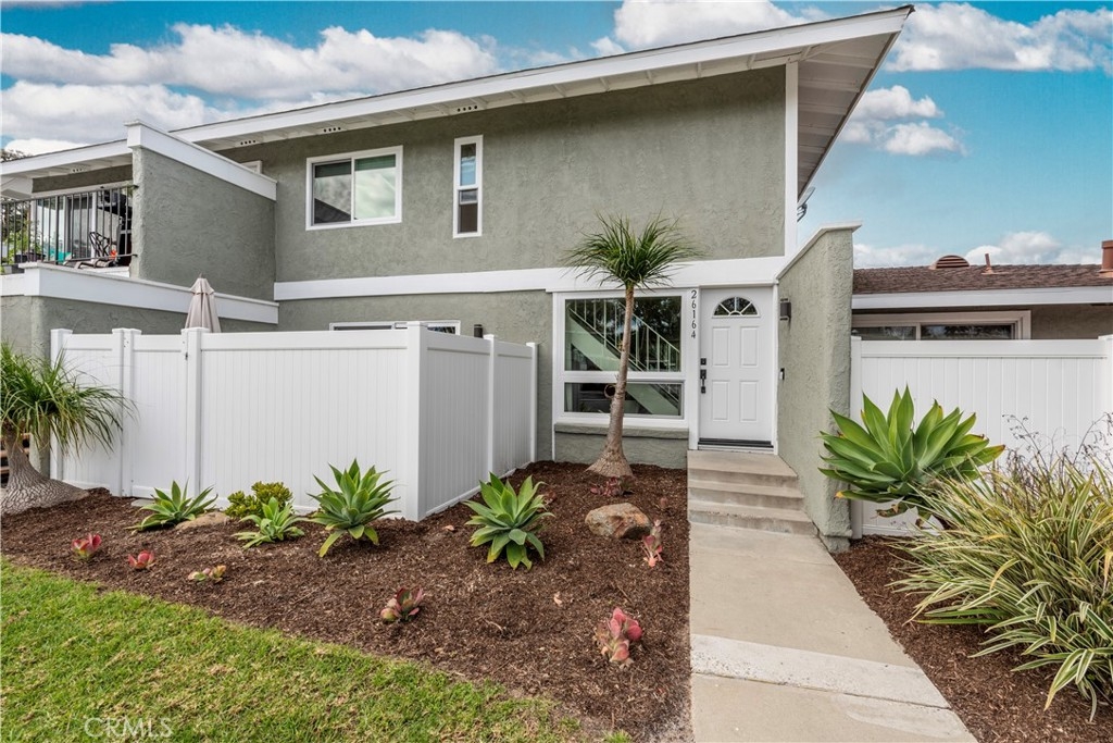 Don't Miss this Gorgeous, Remodeled, Aliso Villas 1 with 2 Bedrooms + 1.5 Baths - End unit on Green Belt. Features include custom textured ceilings, walls, new flooring, paint, carpets, dual pane windows, New kitchen with recessed lighting, self-close cabinets, Quartz counters, tiled backsplash. Convenient half bath on this level too. Lovely Dining area leads to large patio with vinyl fence. Two Very Large Bedrooms Upstairs, both with walk in closets and ceiling fans, Main bedroom closet is cedar-lined. Hard to find oversized garage with direct access to the unit, includes storage areas and washer and dryer, plus there is also a private reserved parking spot. Wonderful, well managed and maintained Development with Pool, Tot Pool, Picnic Area, Play area.
