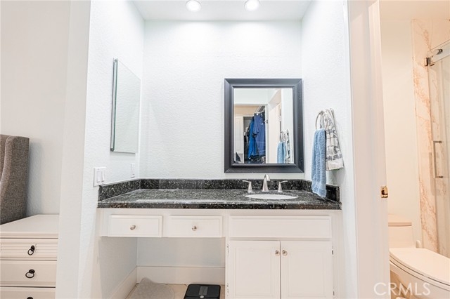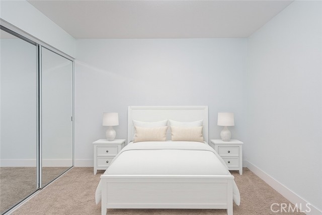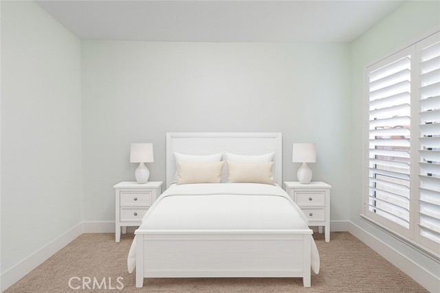 Finisterra on the Green, an elegant gated community situated adjacent to the Lake Mission Viejo Country Club. This beautifully maintained townhouse offers 2 bedrooms, 2 bathrooms, the spacious upstairs loft that has been thoughtfully converted into a third bedroom. The kitchen is designed with both style and function in mind, showcasing quartz countertops, recessed lighting, abundant cabinetry, plenty of storage for those kitchen essentials. The layout flows seamlessly into a formal dining area and an expansive living room with impressive high ceilings. A striking fireplace serves as the focal point, while surrounding windows fill the home with natural light and custom wood shutters. Sliding glass doors open to a private balcony, ideal for relaxing or entertaining. The master bedroom offers vaulted ceilings, and direct balcony access. Its ensuite bathroom features quartz countertops, a walk-in-shower, and a custom built closet organizer. The secondary bedroom, located on the opposite side of the home, provides comfort and privacy for guests. The hall bathroom includes a tub-shower combination and granite countertops. Convenient washer and dryer hookups are discreetly located in a hallway closet with additional storage cabinets. The upper level loft, currently configured as a third bedroom, provides flexible space that can easily function as a home office, gym, or creative studio, complete with a large closet. Residents of Finisterra on the Green enjoy exclusive access to Lake Mission Viejo, as well as community amenities including a pool, spa, recreation area just steps from the property. This is an exceptional opportunity to own a home in one of Mission Viejo’s most desirable neighborhoods. Additional features include a detached single-car garage and an assigned covered carport and a new HVAC system, ensuring enhanced comfort and energy efficiency throughout the home.