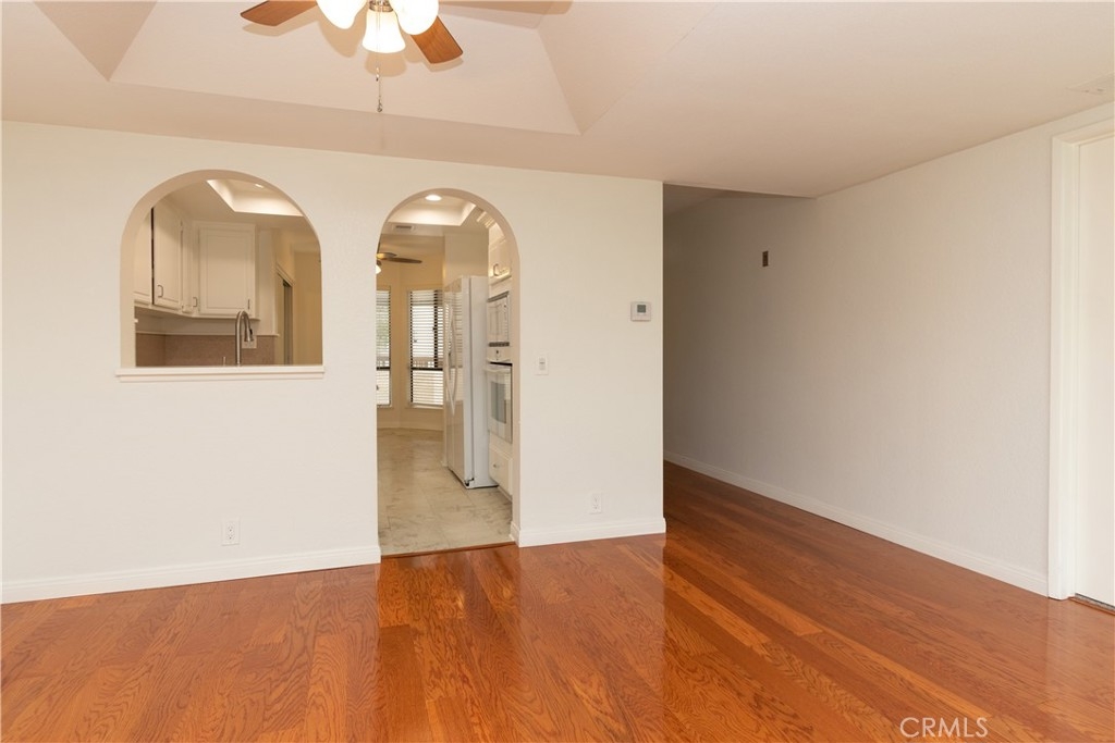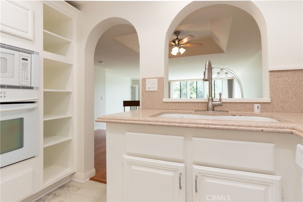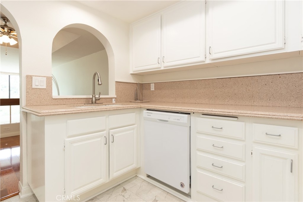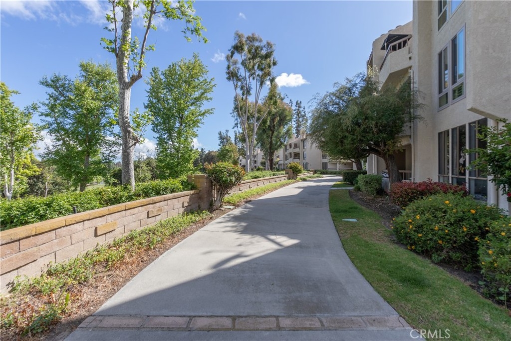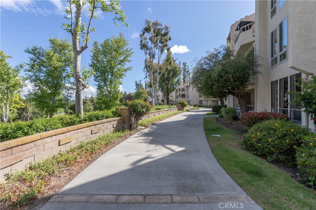 GATED 'FINISTERRA ON THE GREEN" located across from Lake Mission Viejo. Enjoy a beautiful Oso Creek golf course view as soon as you walk into unit. NO STEPS, except for 2 to living room. Desirable 2 bedroom 2 bath unit with inside laundry, entrance to patio from both master bedroom and living room. Patio has a door to staircase leading down to pleasant neighborhood walk overlooking golf course. Laundry area inside kitchen eating area, hall linen closet, wood burning fireplace, generous size dining room, 2 steps down to living room with that gorgeous view of golf course. What's unique about this unit, is the separation of the bedrooms. Perfect for privacy. Finisterra on the Green is centrally located to variety of grocery stores, restaurants too many to name, library, city hall, close to Laguna Beach 5 Freeway and toll roads.
