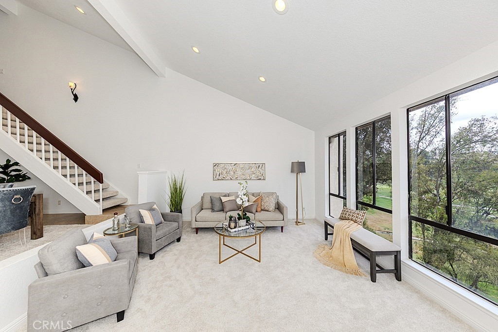 Welcome to this CLASSY gated COMMUNITY with BREATHTAKING golf course VIEW and this ELEGANT and PLEASING HOME . Complete PRIVACY in each room, BRIGHTNESS, OPENNESS, Cathedral HIGH CEILING and BEAUTY are the first things you will see and notice in this delightful and pleasurable home. Remodeling in the entire kitchen, living room, bathrooms, flooring, ceiling fans, and paint throughout are sooooo beautifully done some just recently and some during past few years; just look at the pictures. Third bedroom is the large loft on the second floor. Association pays for the trash and also takes care of all water pipes, gas pipes, sewer pipes and water pressure regulators. They are also responsible for the termite inspection and treatments. Have yourselves and your children enjoy all the fantastic amenities of the beautiful Lake Mission Viejo that is steps away and the Schools that are among top rating schools. Check the Tour Field for taking your tour. :)