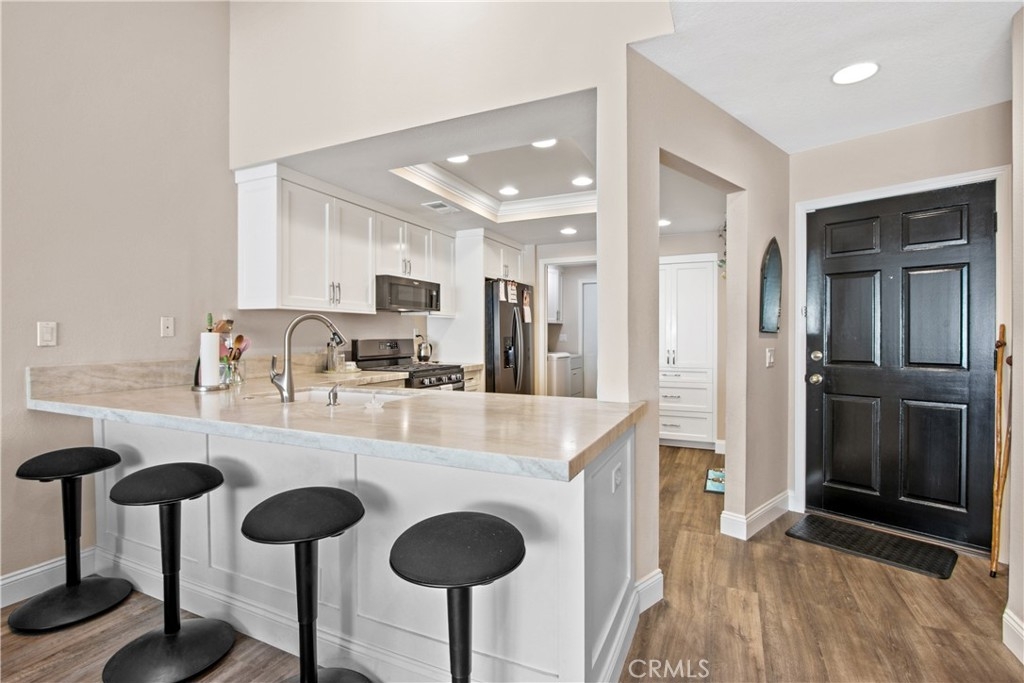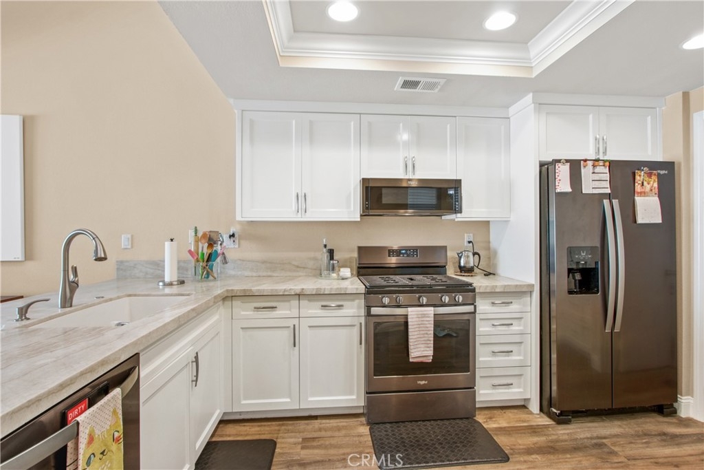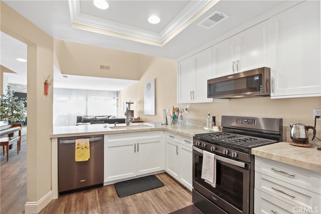 RECENTLY UPGRADED, TURN-KEY MISSION VIEJO CONDO! This beautiful condo features a lengthly list of upgrades. Walking up to the condo, you have a long walkway which creates privacy and quietness from the rest of the community. Starting through the front doors, you're welcomed into a large open floor plan with high-quality vinyl flooring, high ceilings and a custom fireplace in the living room. To the right, you'll find the fully remodeled kitchen with custom cabinets and countertops. Before walking into the garage, you'll walk into the conveniently placed laundry room. Heading upstairs, you'll find two en-suite bedrooms, both of which include plush carpeting, high-quality vinyl flooring in the bathrooms, and custom bathroom cabinets and baths. There is also the option of creating an upstairs loft space between the two bedrooms! The association takes pride in maintaining the landscape, the cleanliness of the pool and common areas, and safety of their community. This condo is also part of the Lake Mission Viejo Association, so you have access to their large clubhouse, volleyball courts, snack bar, boating, and fishing. On top of that, you're in the highly sought-after Capistrano Unified School District with Bathgate Elementary School walking distance from your new home.