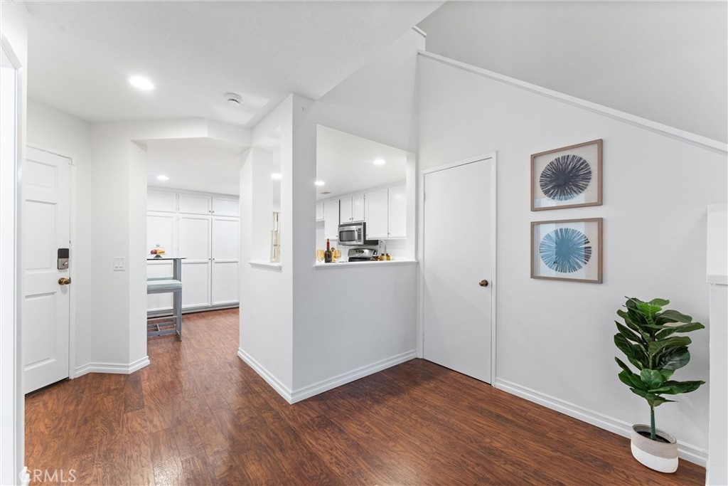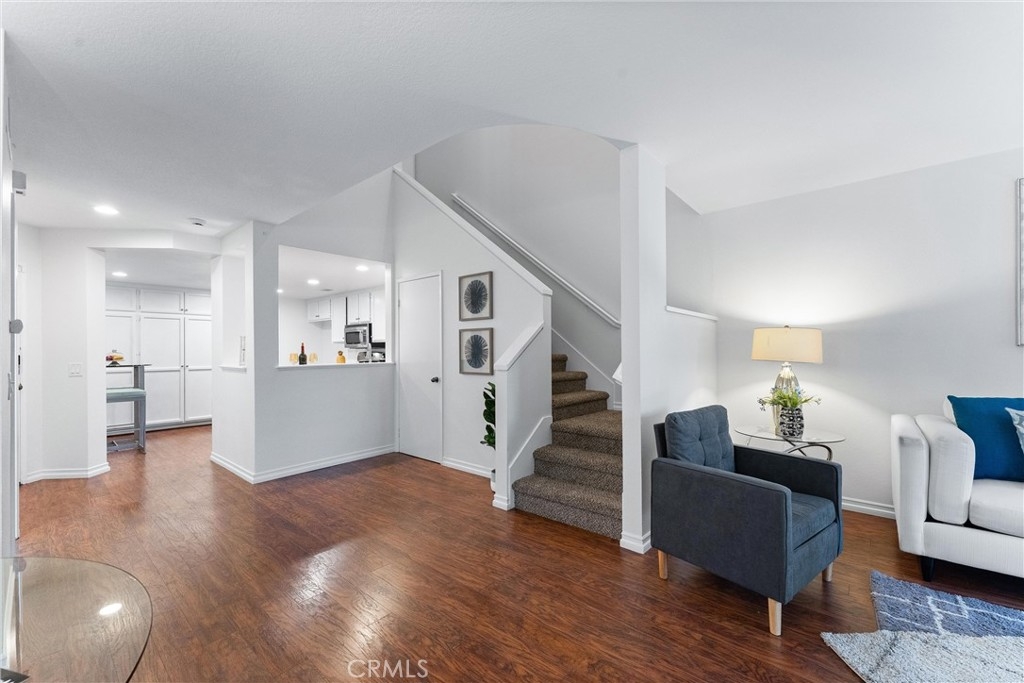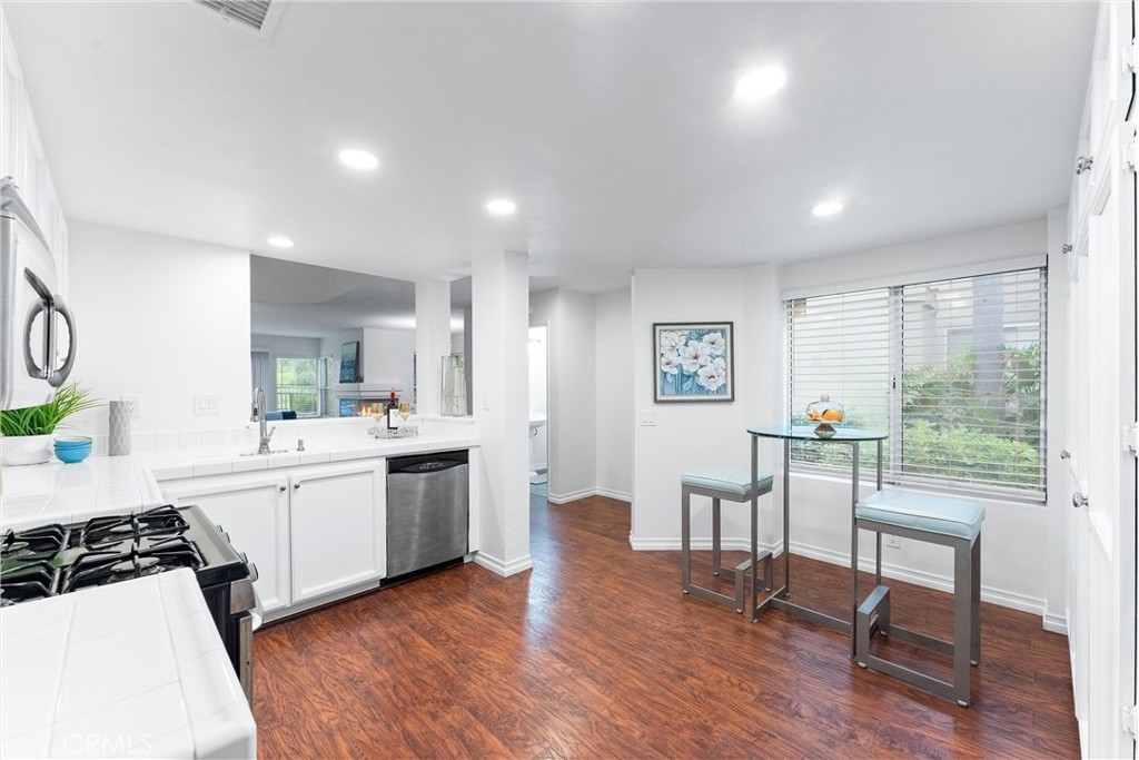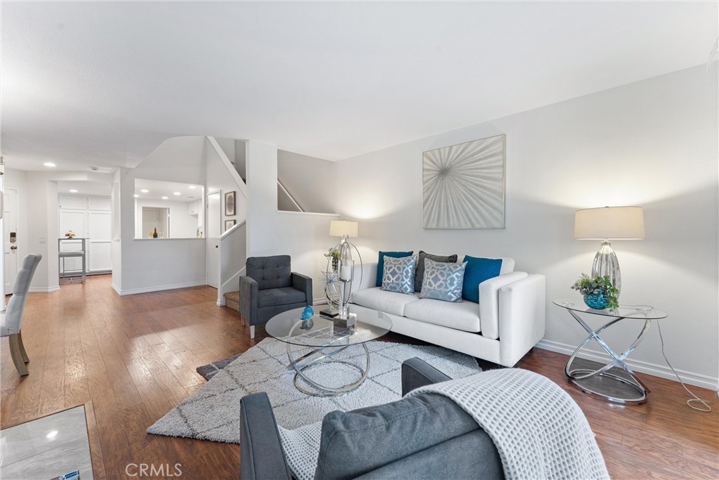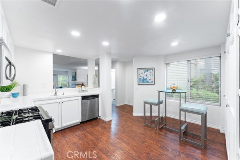 Welcome to this meticulously remodeled home within the highly sought-after Ashton community! This spacious home boasts an open, light, and bright living space with high ceilings. Upon entry, you'll find wood flooring throughout and an open floor plan leading to the upgraded kitchen, separate dining area, and living room. The living room features a cozy wood/gas fireplace and direct access to the backyard patio, perfect for peace and relaxation with great views. The chef-style kitchen offers ample storage, extra cabinet space, and a breakfast nook. Downstairs also includes a separate guest bathroom, an inside laundry room, and access to the attached garage. Ascend upstairs to find two expansive bedrooms, each with a private bathroom. The master bedroom offers a separate makeup and vanity area, a bathroom with a tub, and a dressing room. This end unit is super private and adjacent to a green belt with views of hillsides and city lights. The community includes a pool and spa within walking distance. Located close to restaurants, shopping, parks, and more, situated in the heart of Mission Viejo. A membership to the private Lake Mission Viejo is included, offering amenities like swimming, boating, and picnicking, creating endless memories with family and friends. Plus, NO Mello-Roos! Don't miss out on the opportunity to call this home your own with "as little as 3% down and no PMI"... Call for details!