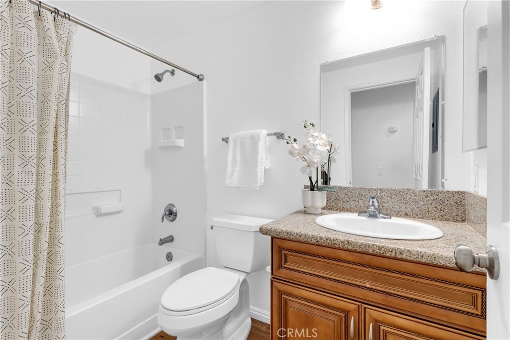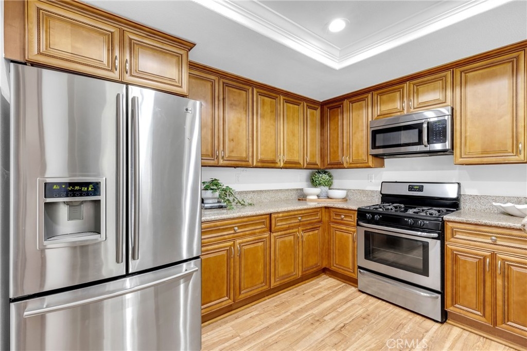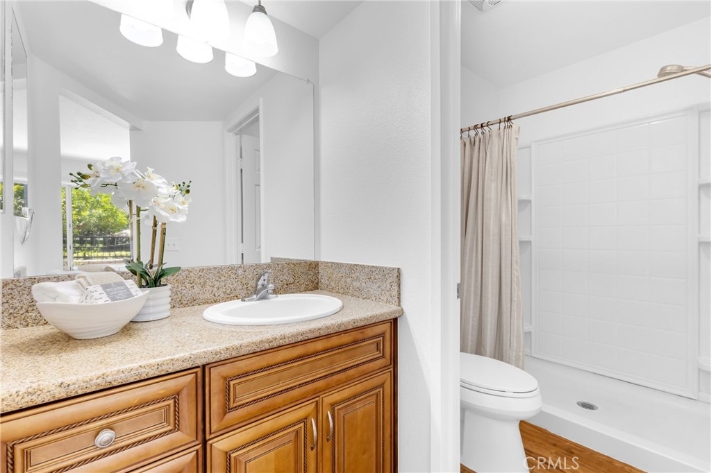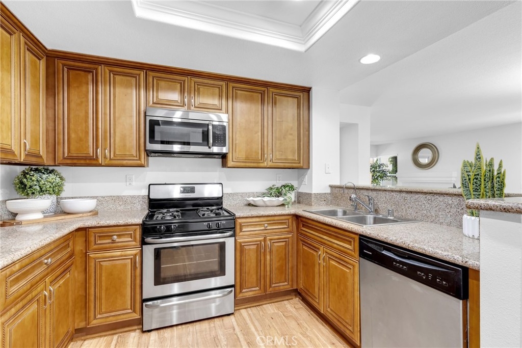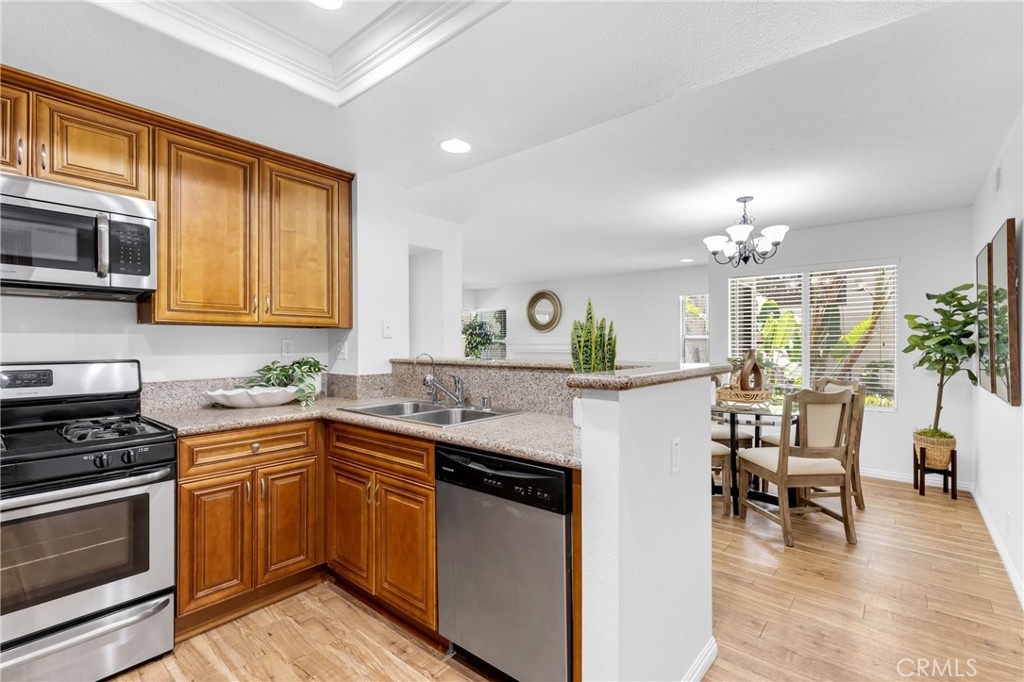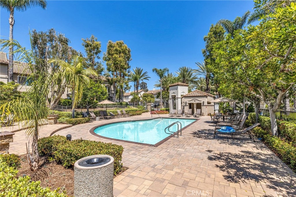 Stunning Pool View Lower-Level Home in Ashton in Mission Viejo! Discover this beautifully updated 2-bedroom, 2-bath gem—perfect as a starter home or a smart investment for your income property portfolio. Situated in a prime location with direct views of the pool complex, this turnkey treasure offers endless possibilities. Step into an inviting living room bathed in natural light from the large sliding door leading to an entertainer’s patio. The focal point fireplace and open layout seamlessly connect the living, dining, and remodeled chef’s kitchen, creating the heart of your daily life. The kitchen is a culinary dream with granite countertops, stainless steel appliances, upgraded cabinetry, fixtures, hardware, and recessed lighting. The breakfast bar peninsula adds a perfect spot for casual dining and meal prep. The primary suite, overlooking the pool view deck, offers ample space and light, featuring an updated ensuite with a walk-in shower. The sizable guest bedroom is conveniently located opposite the kitchen, adjacent to the updated full guest bath. Additional highlights include an inside laundry/mudroom leading to a single-car garage with an automatic opener. The spacious patio provides plenty of room for multiple seating areas, perfect for entertaining or relaxing in a safe, enclosed space. Enjoy easy access to the community pool, minimal maintenance, proximity to sought-after Bathgate Elementary, and minutes away from shopping, dining, entertainment, and commuting options. This home truly has it all! Make this your new home today!