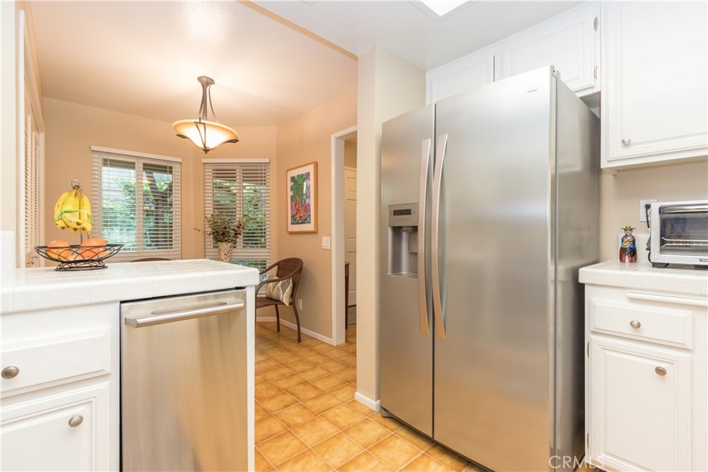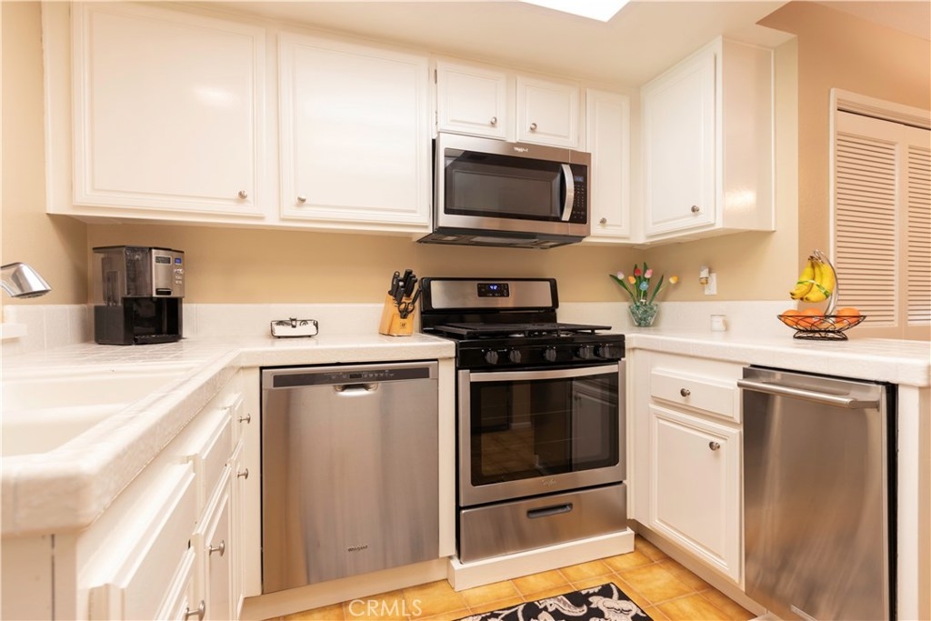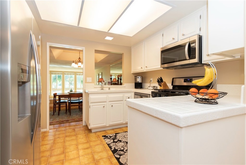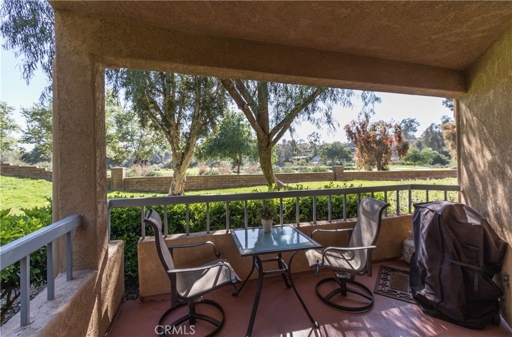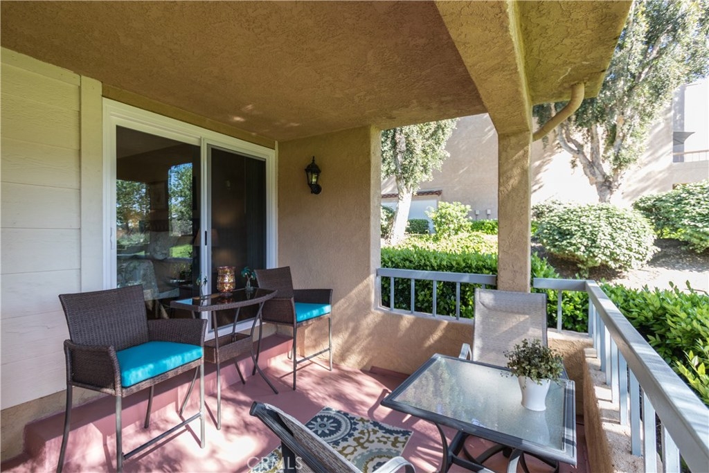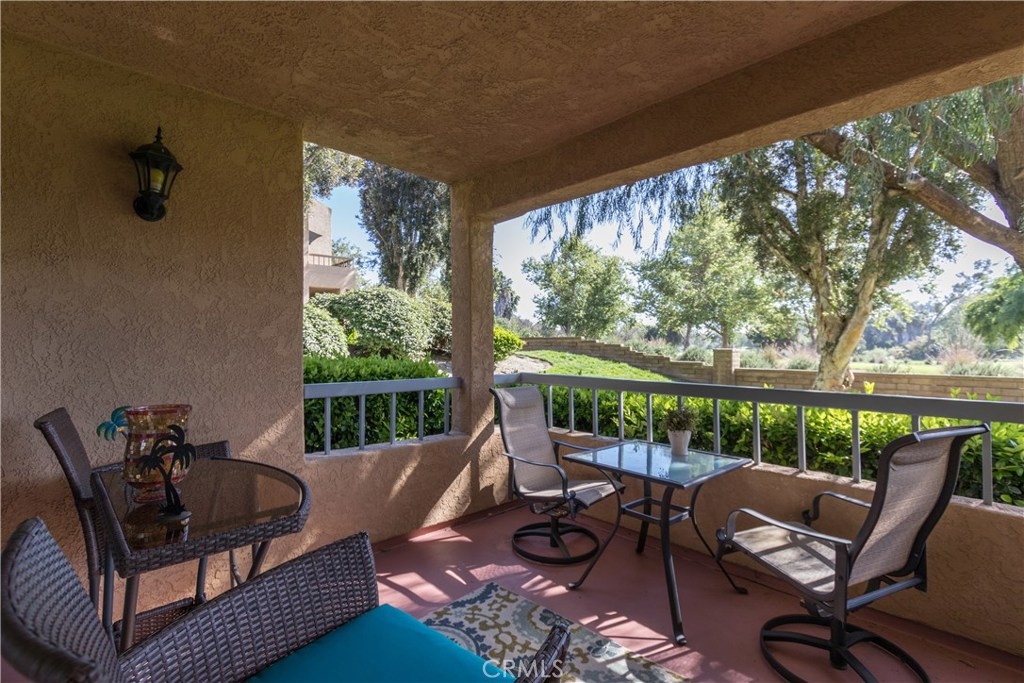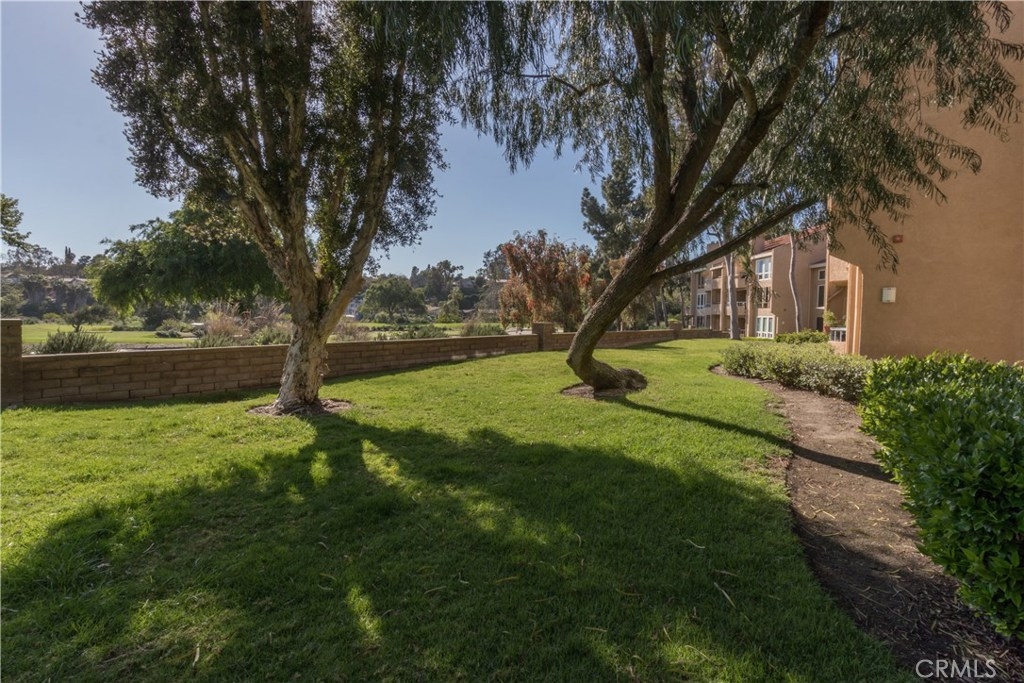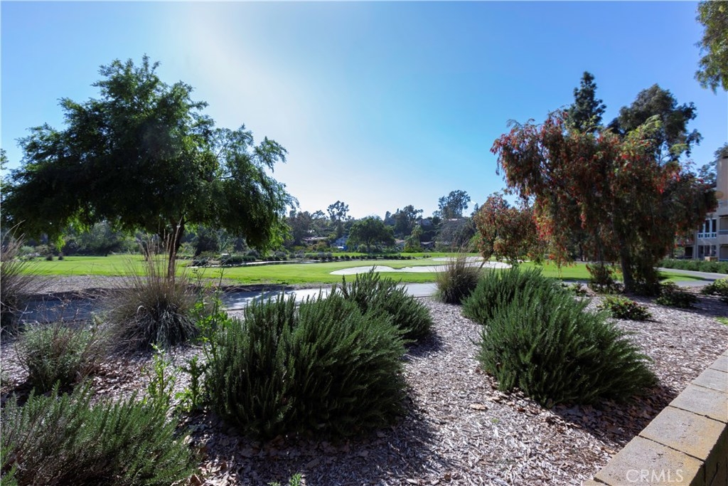 Retreat to your peaceful and private view home tucked away in the lovely Baja Finesterra community. This darling and extremely well maintained and nicely updated home features an extra large living room with a stunning golf course view. Painted in soft neutrals with popular wood-style floors crisp white baseboards and interior trim/doors. Energy efficient dual pane windows with new blinds. Kitchen features updated stainless steel appliances which include a stove, microwave, trash compactor and refrigerator, a great kitchen to prepare your favorite meals while enjoying the golf course view. Other great details include, updated counter tops and tile flooring in both bathrooms and freshly painted patio floor and railings. Parking and storage is a breeze with shelving in the garage, one assigned carport, and plenty of nearby guest parking. HOA dues are $450.00/month for exterior maintenance, landscaping and Fire & Hazard insurance, plus with an additional $65.00/month to cover WATER, trash, street sweeping. Enjoy the membership to Lake Mission Viejo, concerts, boating, paddle yoga, sailing and more. Great fun year around. Great starter home or for those downsizing. Convenient location, walk to your favorite coffee house, or the market or hop on the freeway in minutes.