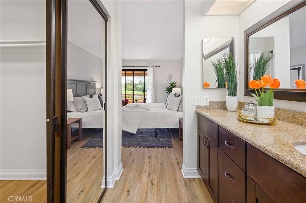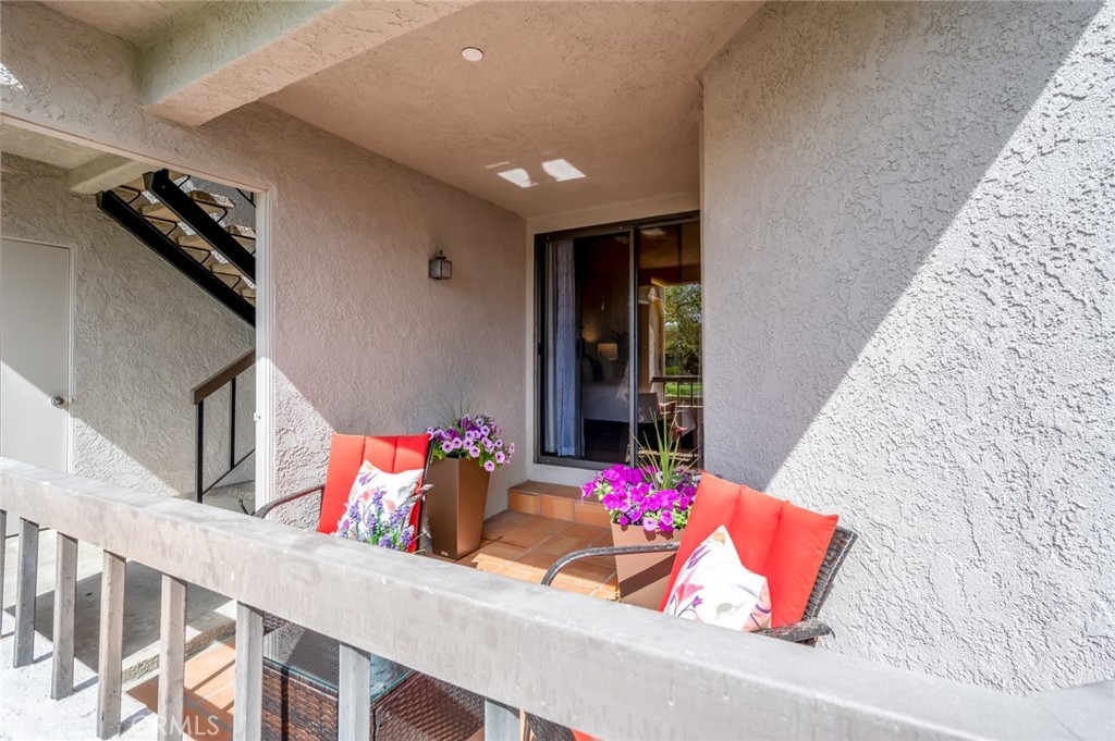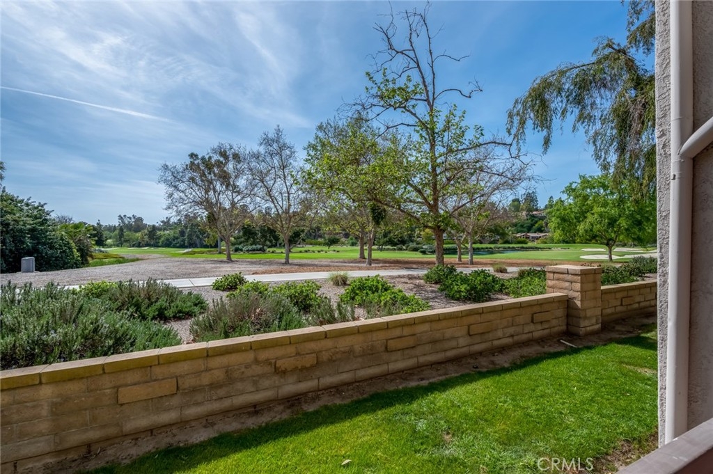 Enjoy the calming park like setting and views of the 13th hole! Welcome to Baja Finisterra on the Green, a quaint gated community located in the heart of Mission Viejo, overlooking the MV Country Club Golf Course. Experience all the city has to offer, like the Oso Creek Golf Course, Felipe Tennis Center, Oso Creek Trails and don't forget the endless amenities offered at Lake MV. Also known for our award winning schools, multiple sports parks, La Paz Dog Park and the Norman P. Murray Community & Senior Center...just to name a few! Convenient freeway access and walking distance to shopping, trails, restaurants and more. This lower level Villa Riviera model with 2 bedroom/2 bath condo has Golf Course views from both living and master bed rooms! Spacious sunken living room with large picture windows overlooking the golf course and a cozy gas fireplace. Remodeled master bathroom with walk-in shower. Granite counters in kitchen and bathrooms. Cozy breakfast nook with laundry closet and extra storage. Freshly painted interior with a warm and neutral color palette. New luxury woodgrain vinyl flooring accented by rustic Tuscany style stone flooring in kitchen, nook, dining room and hallways. Included are tankless water heater, new thermostat, detached 1 car garage with extra storage space and covered carport. Guest parking available as well! Baja community improvements include exterior painting and PEX re-piping. No Mello Roos! Relax on the back patio while watching the sunset over the green!