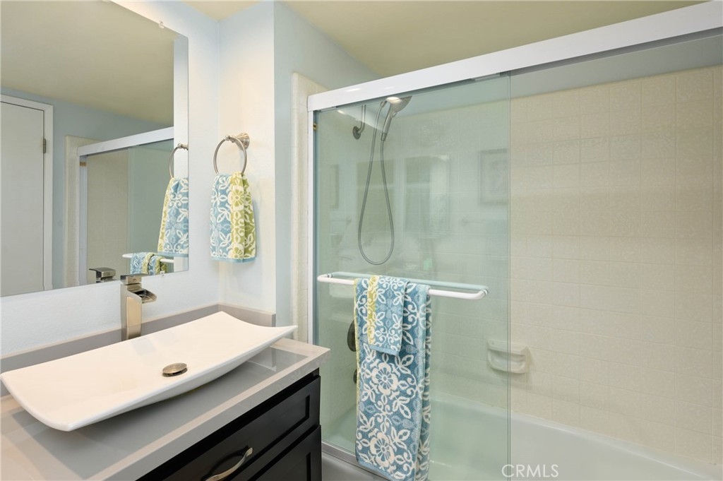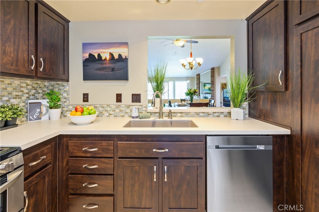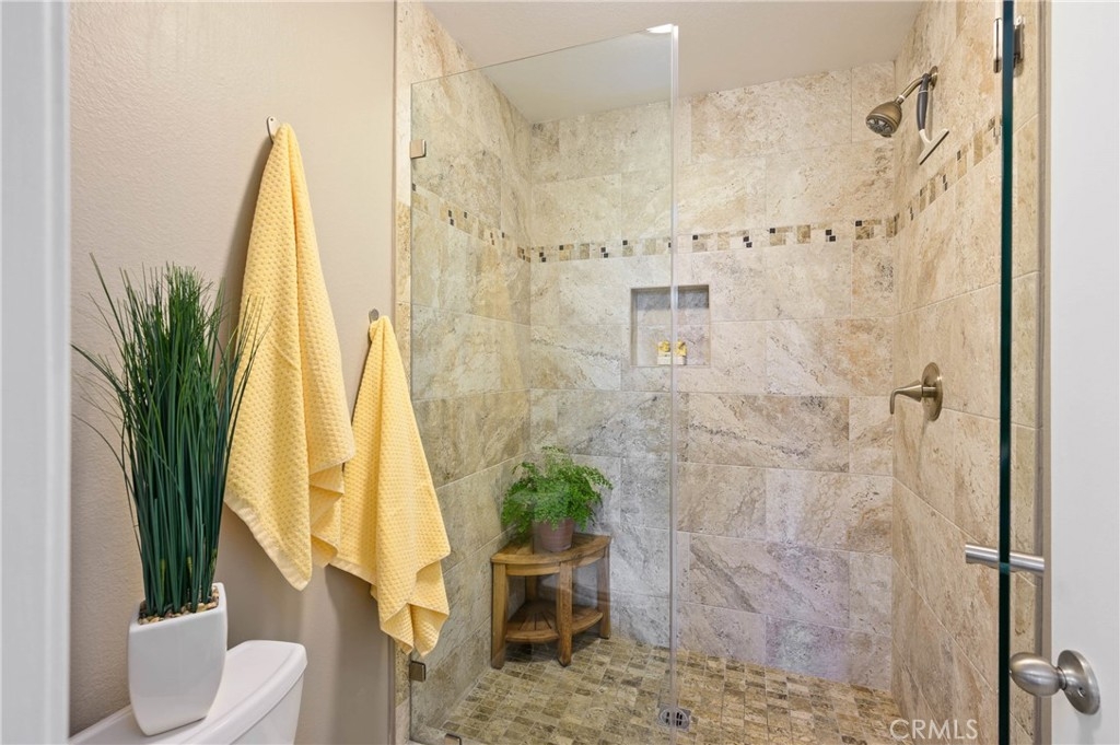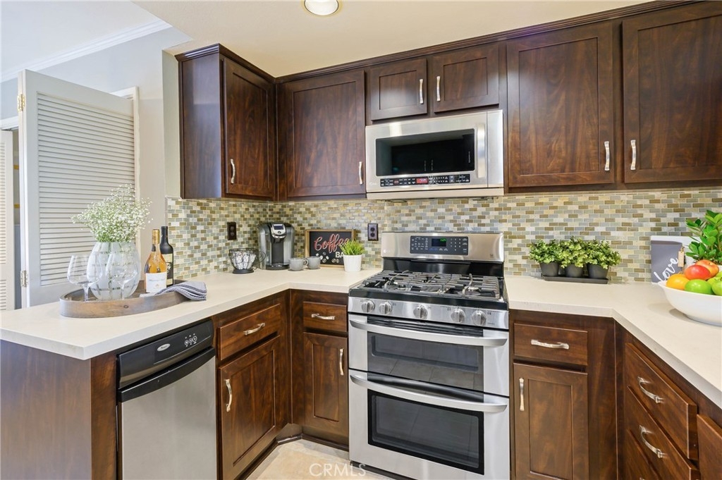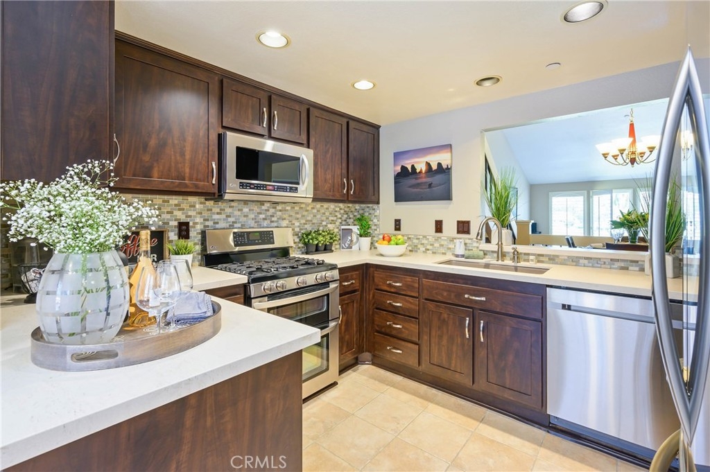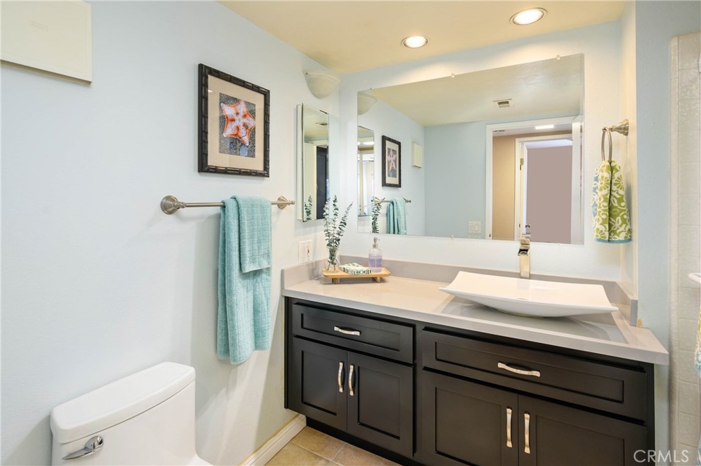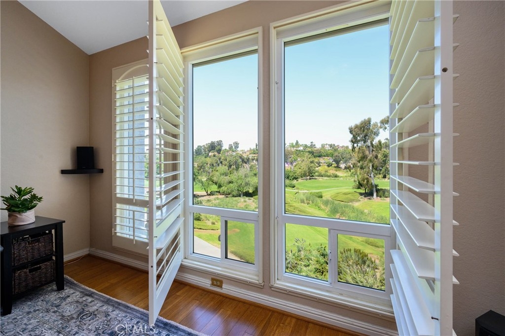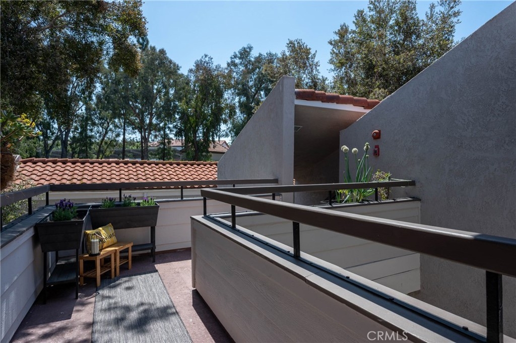 Darling I love you, but give me those Penthouse Views! Breathtaking views of the 13th hole Tee... Welcome to Baja Finisterra on the Green, a quaint gated community located in the heart of Mission Viejo, overlooking the MV Country Club & Golf Course. Experience all the city has to offer, like the North Paseo Farmers Market, Felipe Tennis Center, Oso Creek Trails, Oso Creek Golf Course, firework displays, not to mention the endless amenities offered at Lake MV. Also known for our award winning schools, multiple sports parks, La Paz Dog Park and the Norman P. Murray Community & Senior Center! Convenient freeway access and walking distance to shopping, trails, restaurants and more. This spacious two-level Penthouse Condo with 2 bedrooms/2 baths on the main floor is warm & inviting, tastefully updated and move-in ready. The large Loft with brand new carpeting also has an unfinished attic, which can easily be turned into a bedroom, private office or workout room, plus there's additional storage in the crawl space. You'll love how open the dining and living room feel, thanks to the two-story beamed ceiling and an abundance of natural light. You can't help but notice the large picture windows and golf course views! Additional features include custom shutters, warm bamboo & porcelain tile flooring, a Smart WEMO whole house fan, dual pane windows, skylight, custom front door and deco steel security doors. The remodeled kitchen has espresso shaker cabinetry, colored glass backsplash, stainless steel LG appliances, Dekton counter tops, a farm sink, double oven and a 5 burner gas stove. Cozy breakfast nook with laundry closet and more storage shelving. The large primary bedroom has private ensuite, vaulted ceilings, Smart window blinds, access to the balcony and views of the golf course. Primary bathroom has been remodeled with a porcelain tile walk-in shower, seamless glass doors, espresso shaker cabinetry, Dekton counter top, and custom closet organizer. Light & bright secondary bedroom with custom built-ins, also makes a great office! Guest bathroom similarly remodeled to match the master with a shower in tub. Let's not forget the built-in attic/storage space in the garage, light & ladder added for ease of access. Baja community PEX re-piping complete. Water & Trash are paid with HOA dues. No Mello Roos! Newer Lennox A/C and furnace. From your balcony admire the views, soak up the sunsets, relax & enjoy your evenings away...What's not to Love!