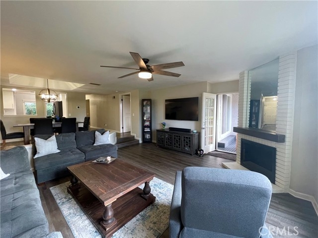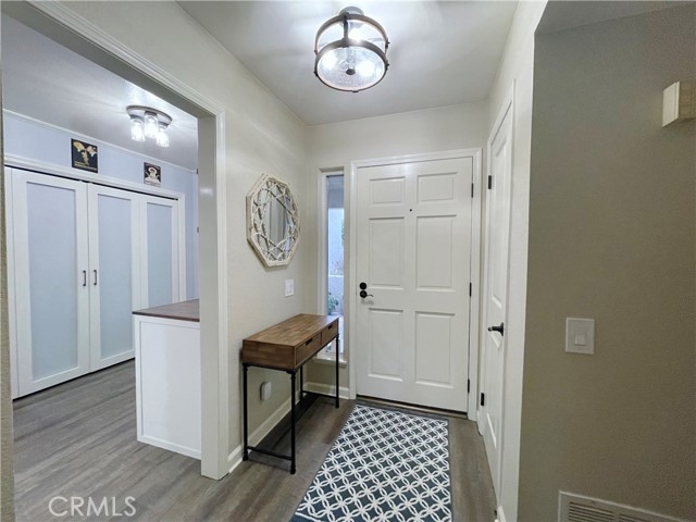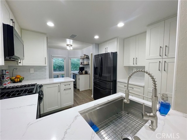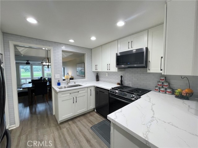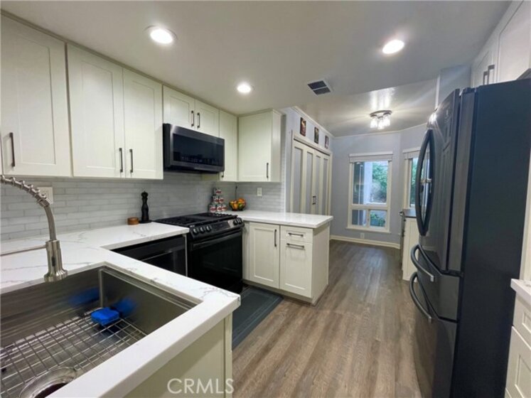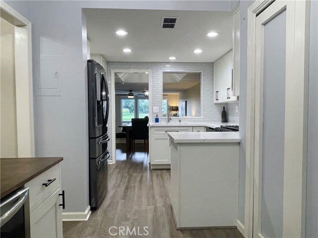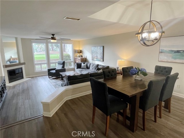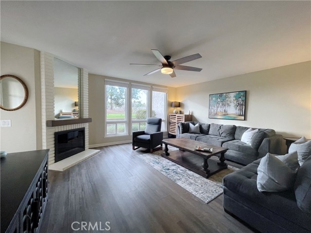 Located in the gated community of Baja Finisterra this stylish end unit home is nestled along Mission Viejo Golf Course and surrounded by lush greenery. This beautifully upgraded, remodeled home displays sophistication and style. Enter into the step-down living room that showcases floor to ceiling windows and a cozy brick fireplace, with a access leading you to the covered patio overlooking the well-manicured fairways of the golf course. The fully remodeled kitchen that overlooks the living room showcases, high efficiency stainless appliances, quartz countertops, tiled backsplash, space saving pull out pantry, soft close cabinetry, a chef workstation sink, dining nook and laundry closet that can accommodate full size machines. This home features two bedrooms and two baths. Situated at the back end of the home is the master bedroom featuring a spacious walk-in closet, remodeled ensuite bathroom. The second bedroom doubles as an office or guestroom with a built in Murphy Bed with easy access to the fully remodeled hall bathroom located to the front of the home. This stunning home features upgraded flooring throughout, 3 Ceiling fans and upgraded LED lighting, newer HVAC system with Nest thermostat, low flow toilets, newer paneled doors and the home has been re-piped and much, much more! HOA dues include water, trash, community maintenance and membership to Mission Viejo Lake featuring private beaches, boat rentals, fishing, and summer concerts. It is located within minutes to shopping, dining, walking trails, freeway, toll roads and 15 minutes to the beach.