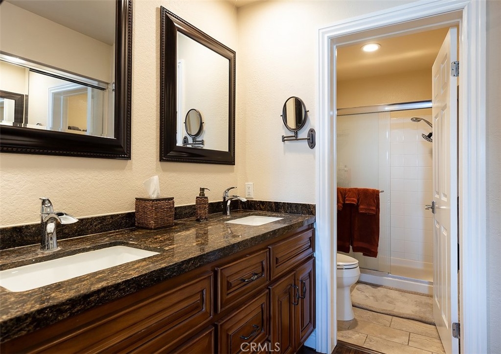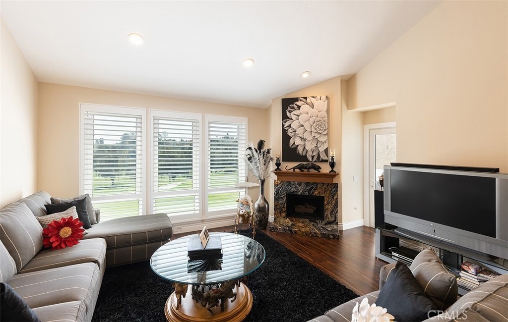 FANTASTIC PANORAMIC VIEW!!! Sits on top of the 12th green at Mission Viejo Country Club Golf Course with a view down the fairway back to the tee plus other fairways plus a view of the close surrounding hills. Additionally an upstairs Office has been added to the Loft that with a place to hang clothes, can easily be converted to a 3rd Bedroom. This home has been fully upgraded to make it very special. Recessed lighting has been added through out plus vinyl plank flooring has recently been installed in the entire 1st floor and stairs. The Kitchen is Beautiful! Custom made cabinetry has been added plus exotic granite countertops with a full splash. The exotic granite counter has been extended into the Dining Room for barstools. You have to see it to fully appreciate the craftsmanship. In the Living Room a fireplace with a custom mantel has been created with the exotic granite plus custom recessed lighting to show off your prize painting. Also Custom dual glazed windows with shutters have been installed in the Living Room to enhance the panoramic views and let the cool breeze from the Pacific Ocean in. There are beautiful fans downstairs in the two bedrooms and in the Loft and Office. Also you won't believe the storage that's available! The Master Bedroom has a custom dual glazed slider plus the bathroom has been modified with a custom made vanity that has dual sinks and pull-out drawers. The other bath has a custom tile shower and pull-out drawers. The washer and dryer area is hidden and located behind folding doors in the Kitchen. Garage and carport parking locations are the best in complex. Freeway close.