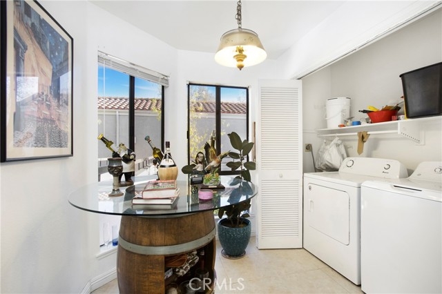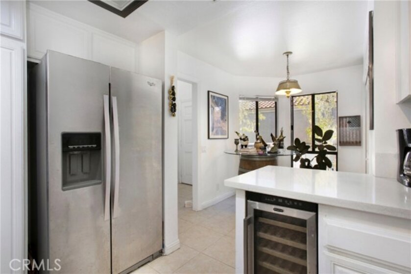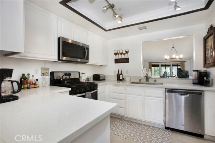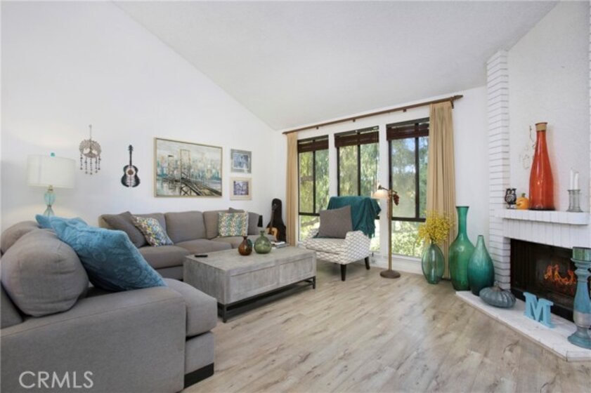 Welcome home to the gated community of Baja Finisterra On the Green! This peaceful and private end unit showcases a rare premium golf course location at the 12th hole, with panoramic fairway views framed by floor-to-ceiling living-room windows. Soaring vaulted ceilings and abundant natural light create an open, airy feel. The flexible layout features a primary suite, secondary bedroom and bathroom as well as a large loft that can be converted to a third bedroom. Enjoy a freshly painted interior, remodeled secondary bathroom, new commodes plus laminate and tile flooring on the main level with carpeted stairs and loft. The light and bright kitchen offers quartz countertops, a stainless-steel farmhouse sink, built-in Whyntr wine cooler, designer lighting, and a convenient passthrough to the dining area. A sunny breakfast nook with an in-unit laundry closet accommodates full-size machines. Thoughtful flow makes entertaining easy, with the elevated dining area to the living room with cozy fireplace and quaint French door to the balcony, while multiple windows capture tranquil golf course vistas from nearly every room. Unwind and relax on the on the private deck while enjoying the songs of birds and gentle ocean breezes. Primary suite off the living room has its own slider to the balcony, a vaulted ceiling, and the ensuite bathroom boasts a dressing and vanity area, large walk-in closet, and walk-in shower. The association fees include water, trash, and large enclosed spa with plenty of space for lounging in the sun. No mello roos and low tax rate. Steet level entrance, one car garage with shelving, one assigned carport and ample guest parking for ease and convenience. Lake Mission Viejo membership offers boat rentals, swimming beach, BBQ areas, playground, summer concerts events and more! Close proximity to shopping, dining, entertainment, and freeway access – this is a must see!