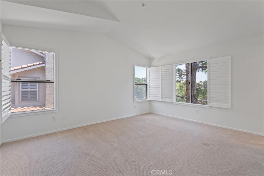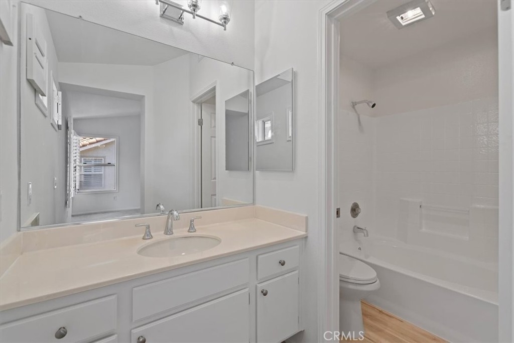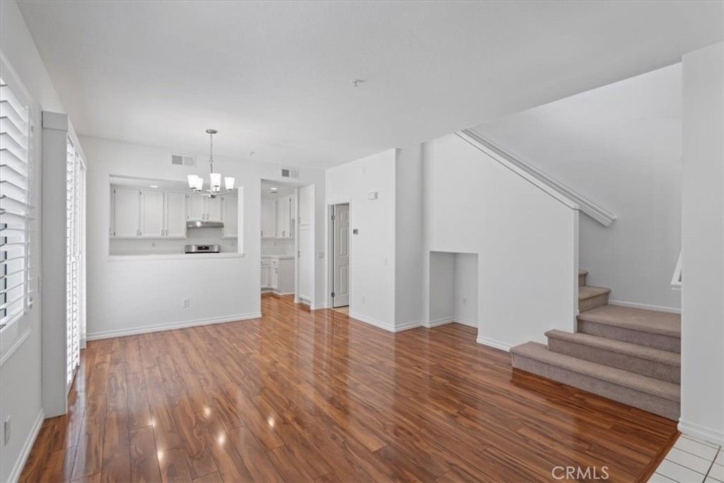 Amazing lower level end unit townhome tucked away in a tranquil corner that offers privacy and views of lush landscape. Built in 1993, it includes 2 bedrooms, 2.5 bathrooms and 1,111 square feet of living space. The open floorplan of the living, dining and kitchen areas make it the perfect space to entertain family and friends. The sundrenched living area includes multiple windows and a gas fireplace. The comfortable dining area overlooks the kitchen and includes a sliding door that opens to its large private patio. The tastefully upgraded kitchen includes white cabinets, stainless steel appliances and recessed lighting. The adjacent utility room includes washer & dryer hook ups, a storage closet and direct access to the one car attached garage. The downstairs is completed by the convenient half bathroom. The guest suite includes a vaulted ceiling, walk in closet and an updated full bathroom. The primary suite includes a vaulted ceiling, a massive wall to wall closet and an updated full bathroom. Additional features include fresh interior paint, plantation shutters throughout, laminate flooring on the lower level, newer carpet on the upper level, new luxury vinyl plank flooring in the bathrooms and utility room and central air & heat. The pool, hot tub, playground and clubhouse are in close proximity through the lush, parklike grounds. Community advantages include membership access to the greatly desired Lake Mission Viejo, award winning schools, restaurants, entertainment and convenient to major freeways and Toll Roads.
