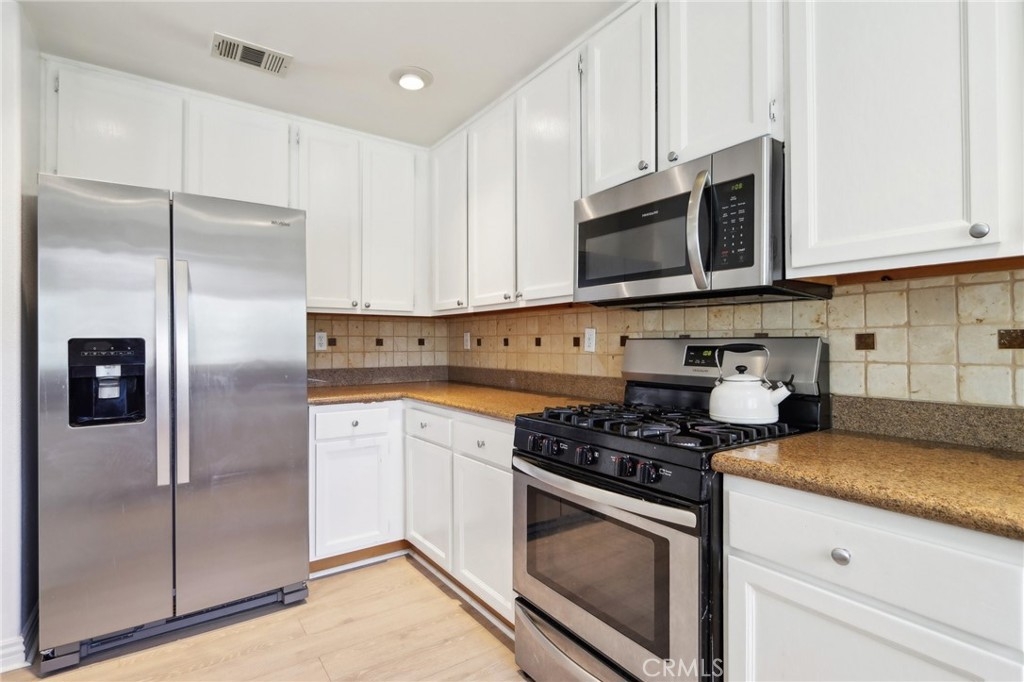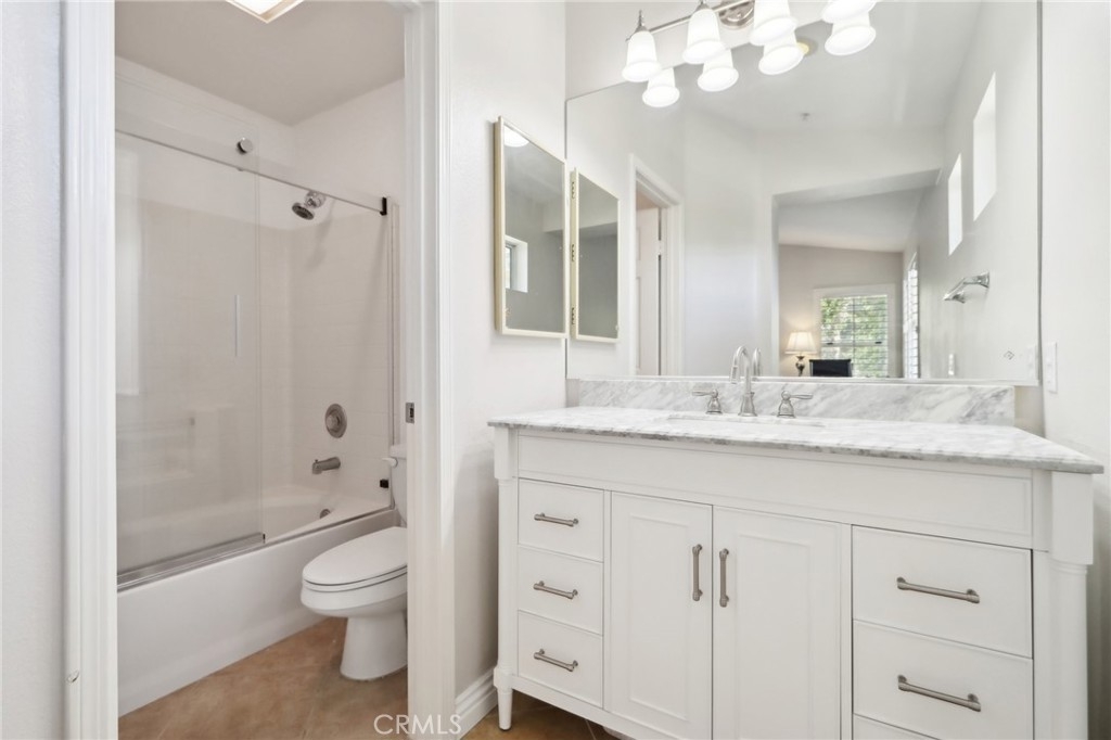 Step into this beautifully updated 2-bedroom, 2 and a half bathroom condo, where modern comfort meets everyday convenience. Located in the sought-after California Court community, this home features an inviting open-concept layout perfect for both relaxation and entertaining. The spacious living room offers a cozy fireplace, seamlessly flowing into the dining area and out to a private, fenced patio with peaceful open views. The kitchen is thoughtfully designed with stainless steel appliances, granite countertops and plentiful storage space. Both bedrooms are generously sized, with the their own en-suite bath with shower/tub combo and stylish finishes. The second bathroom mirrors the same modern design, providing both comfort and functionality. Additional highlights include an attached two-car garage, washer/dryer hookups, and ample storage space. Enjoy the perks of living in this vibrant community with easy access to shopping, dining, hiking trails, and exclusive Lake Mission Viejo membership privileges. Don’t miss the opportunity to make this stunning condo your new home—schedule a tour today!
