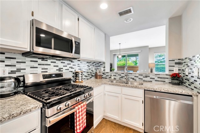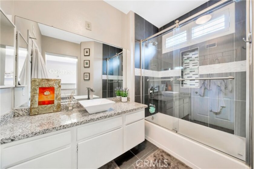 Introducing an impressive upgraded single-level lower-level condo with no steps, boasting a generous 1,365 square feet of comfortable living space in the desirable California Court community. With 2 spacious bedrooms and 2 luxurious bathrooms, including a convenient direct access 1-car garage, this home offers both style and convenience. Enjoy the perks of HOA access to Lake Mission Viejo, providing access to a range of amenities. Tucked away in a tranquil back corner of the neighborhood, this residence offers privacy and views of Saddleback Mountain. Relax and unwind at the community pool and spa, and take advantage of ample guest parking and a nearby tot lot. This move-in ready home features upgrades including a newer HVAC system and water heater, as well as stylish wood-tile flooring throughout and ceiling fans in the bedrooms. The well-appointed kitchen has granite counters, a beautiful tile backsplash, and upgraded stainless-steel appliances, seamlessly flowing into the cozy family room that has a gorgeous floor to ceiling stone fireplace. Indulge in the master bathroom's luxurious walk-in shower and stay organized with the custom-built walk-in closet. Step out onto the spacious patio from the dining room and soak in the scenic mountain views. With shopping, dining options, and the 241 Toll Road nearby, this home offers both convenience and luxury. Benefit from low HOA dues, inclusive of Mission Viejo Lake access, and FHA and VA financing approval. Don’t miss the opportunity to make this exceptional property your own and embrace the Orange County lifestyle to the fullest.