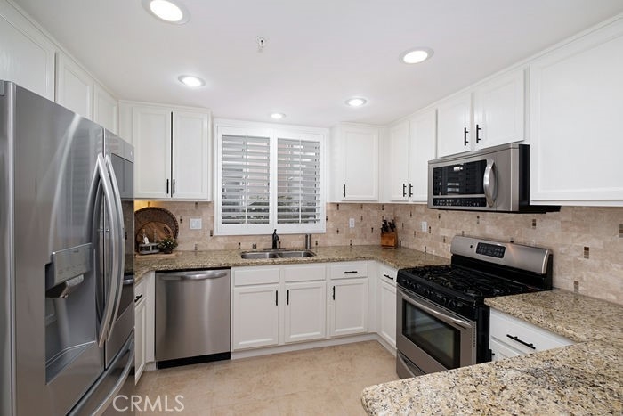 Gorgeous SINGLE story unit, NO STEPS, with large MASTER Suite & a private patio! Nested in beautifully-maintained California Court. This turnkey and updated unit features a spacious kitchen with white cabinetry, stainless steel appliances, Granite countertops and is open to the dining and living areas. Laminate floors. New recessed lighting. Attached garage with washer and dryer in it for extra convenience. Open Concept kitchen, Breakfast bar, Open to Dining room and Living room. King-sized Bedroom lots of closet space, lots of natural light, Balcony with Views. Incredibly Private! A perk of living in Mission Viejo is that you gain Lake access that includes summer concerts, multiple firework shows, 2 private beaches, sailing and so much more. California Court amenities feature a private and newly updated pool/spa, toddler play area, and BBQs for outdoor dining with family and friends. Nearby are award-winning schools, exceptional parks, walking/running trails that are just minutes away. Easy access to shopping, restaurants, Cinepolis Theatres, and the 241 Toll Roads. Come make this home your today!