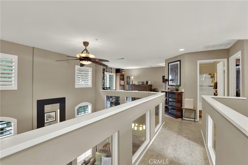 Welcome to this beautiful 3-bedroom, 2.5-bath condo located in the well maintained Terrace View community in Mission Viejo. This spacious home offers an inviting floor plan perfect for both relaxation and entertaining. The main level features a living room with a cozy fireplace, and a separate dining area ideal for family meals or gatherings. The kitchen boasts ample counter space and cabinetry, making it a chef's delight. Downstairs, you'll also find gorgeous porcelain tile flooring throughout the living areas and in bathrooms, adding both style and easy maintenance. Upstairs, the primary suite provides a serene retreat, with an en-suite bath for added privacy. One of the bedrooms has been thoughtfully converted into a loft, offering versatile space that can be used as a home office, studio, or den, and can be easily converted back to a bedroom. Step outside to the private patio, where a canopy provides shade for relaxing or entertaining outdoors. The attached two-car garage offers convenience and storage with direct access into the home. Enjoy the community's amenities, including a sparkling pool and relaxing spa, just a short walk away. This home is ideally located in the heart of Mission Viejo, with easy access to shopping, dining, and outdoor activities. Don't miss out on the opportunity to make this stunning condo your new home!
