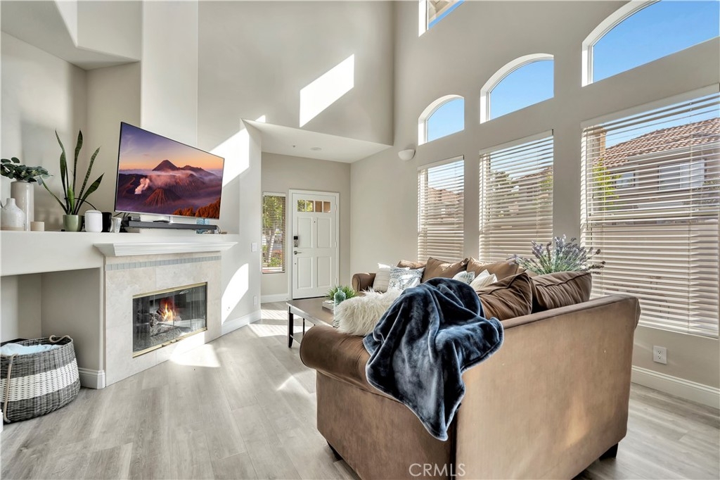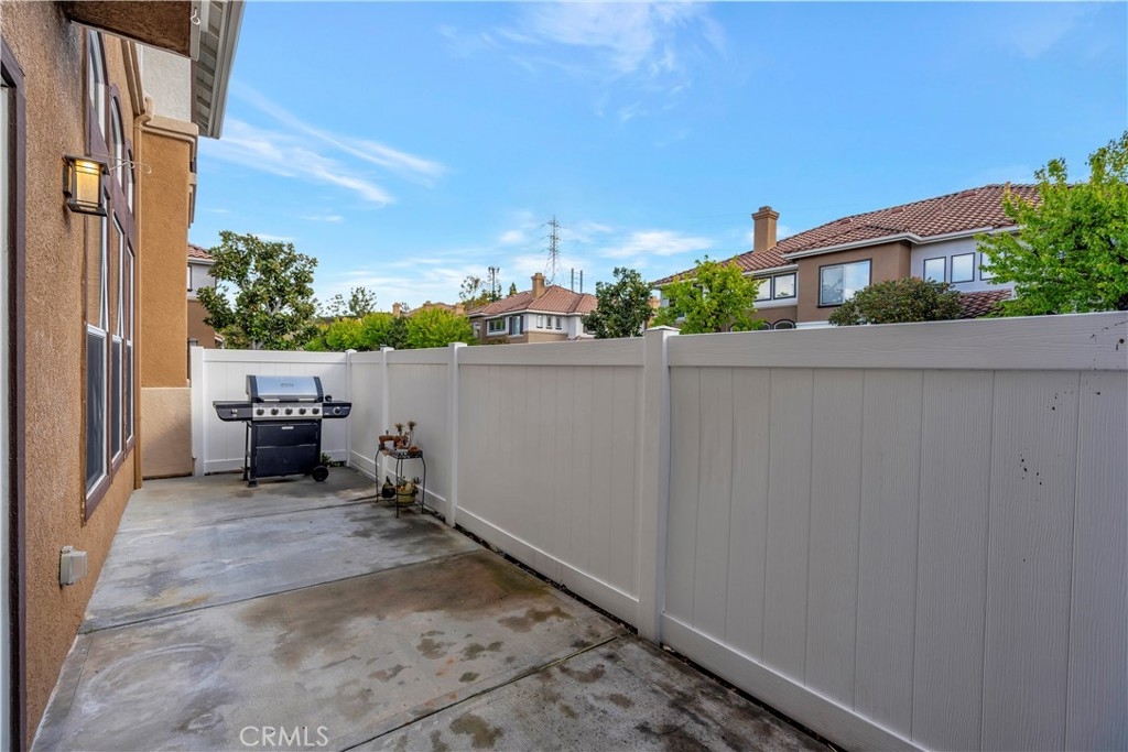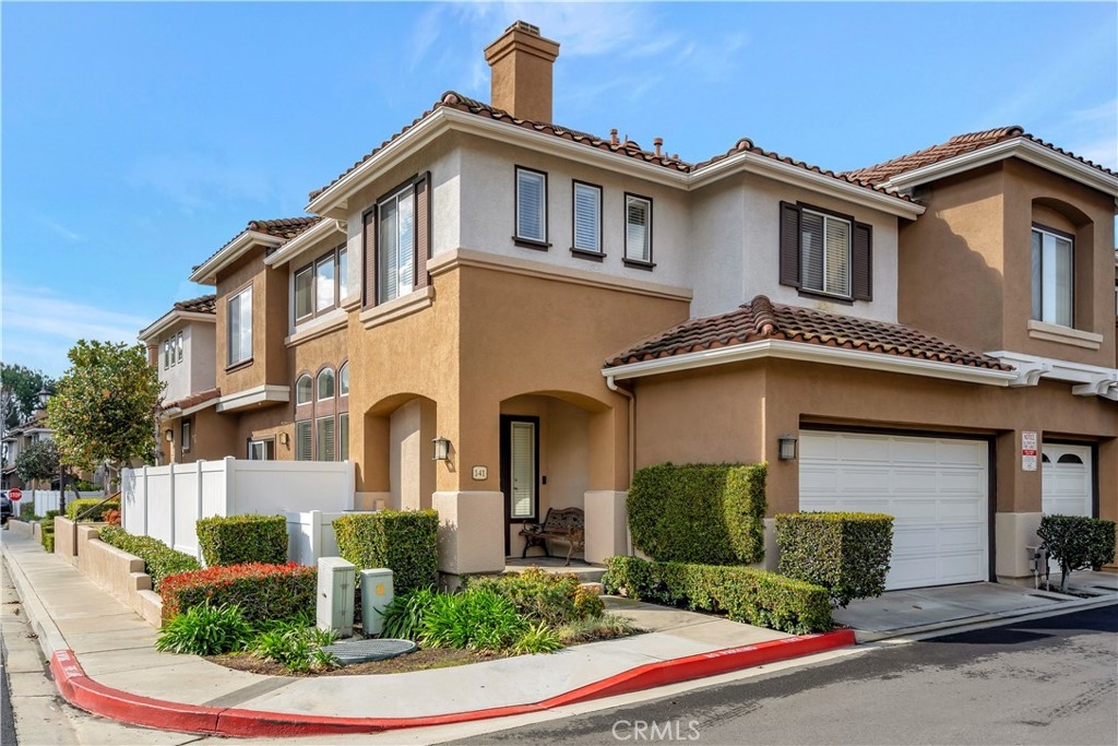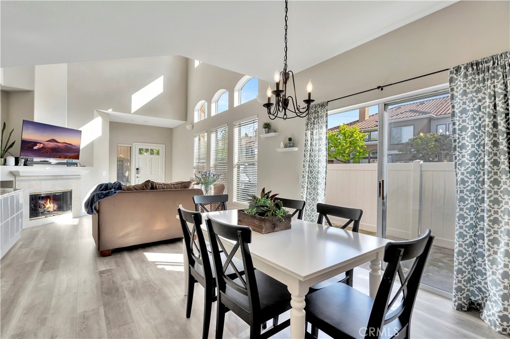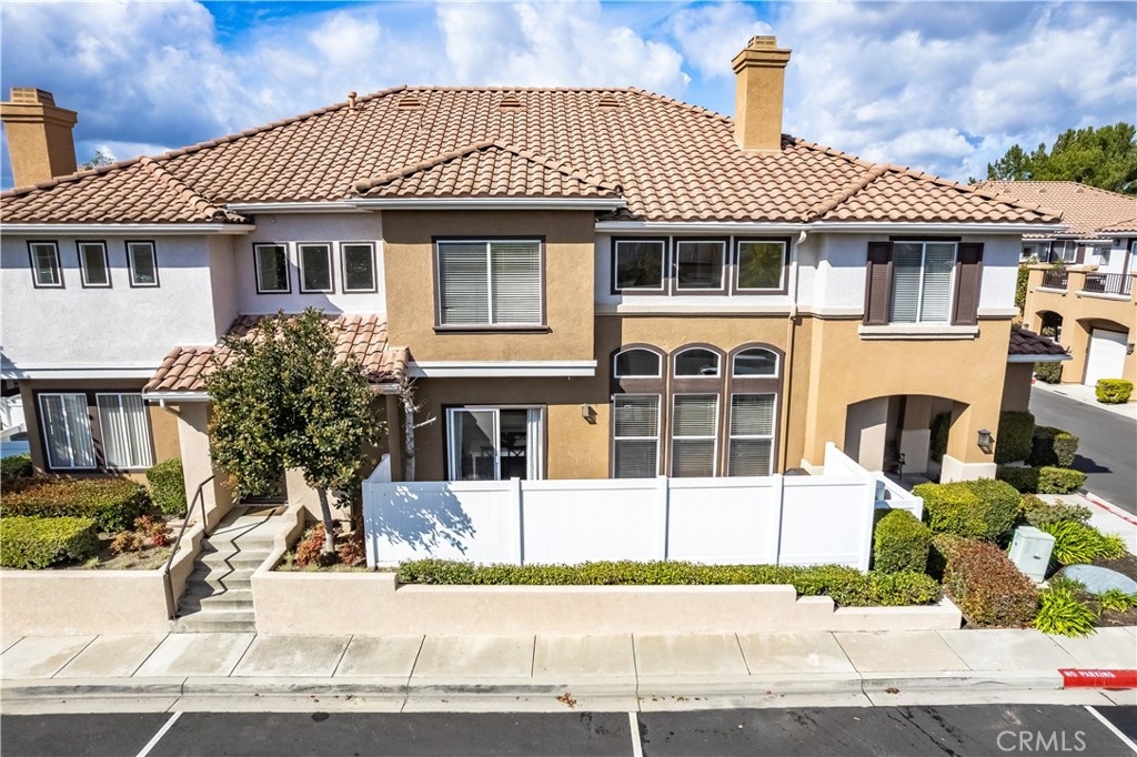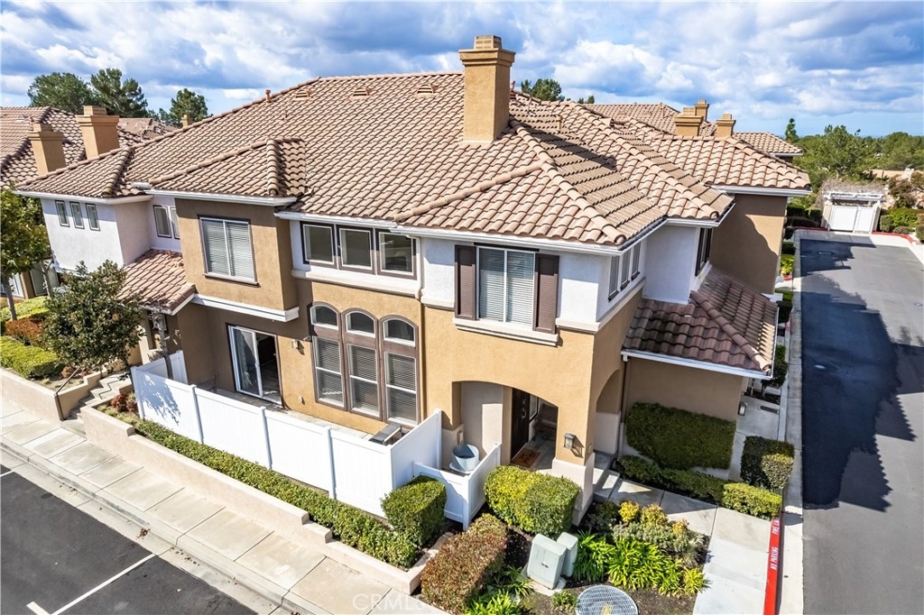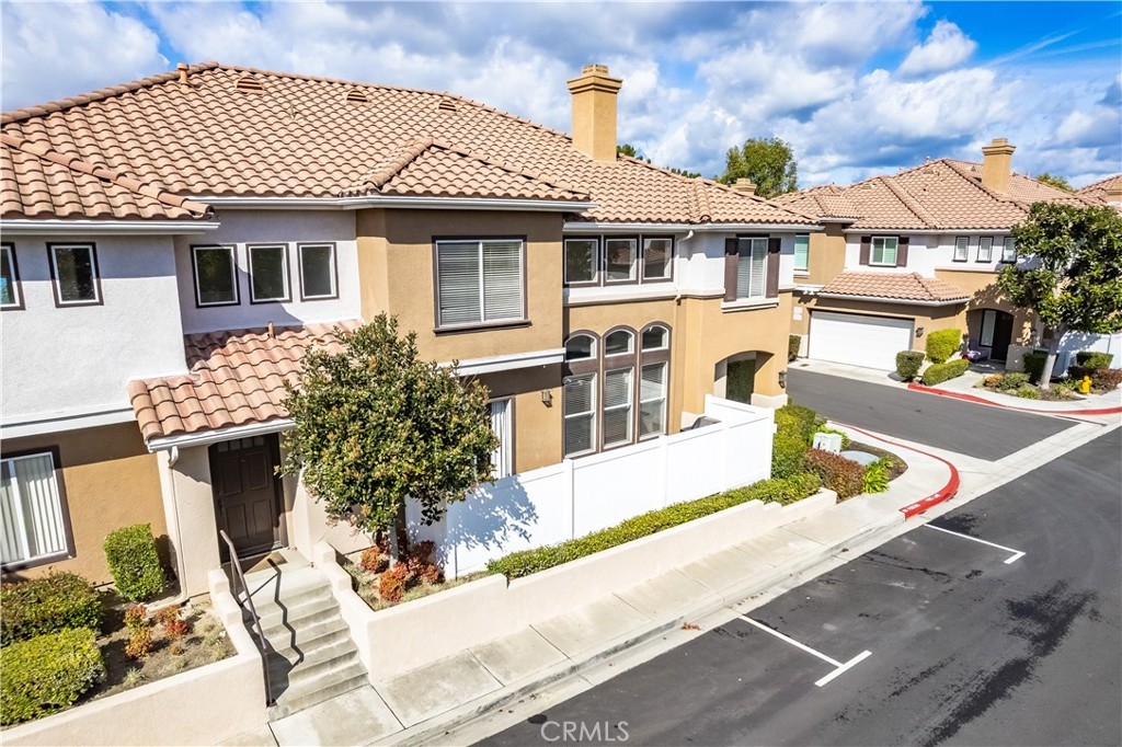 WATCH THE VIDEO (360)!! Fabulous location! This quiet and peaceful end unit is situated in the highly sought-after community of Terrace View. The townhome style home offers 3 bedrooms, 2 ½ bathrooms, and a two-car attached garage, with the added extra of a vinyl fenced private patio, perfect for entertaining, kids playing, or puppies romping! Delight in the volume ceilings downstairs, spacious living areas, fabulous window patterns cascading natural light throughout the home, designer paint colors, luxury vinyl plank flooring downstairs, and upgraded carpeting upstairs. Add in the enjoyment of this home being an Amazon Alexa + Samsung SmartThings home. The spacious kitchen has a new stainless-steel range and dishwasher, plenty of cabinetry for storage, great countertop space, and recessed can lighting. The kitchen opens to the spacious dining area with upgraded light fixture, and the delightful private patio. The living room is enhanced by a lovely gas log fireplace to provide added warmth on these cold nights! The master bedroom is light and bright, and is enhanced by a volume ceiling, upgraded ceiling fan, and recessed can lights. The master bathroom has upgraded luxury vinyl plank flooring, two sinks with a long countertop, a tub/shower with glass enclosure, upgraded light fixture, and a walk-in closet. The two secondary bedrooms are also light, bright, and spacious! The secondary bathroom upstairs has an upgraded vanity, tub/shower with glass enclosure, and luxury vinyl plank flooring. The downstairs guest bathroom has an upgraded vanity, newer fixtures, and lights. Added bonuses include the RING doorbell, the wall outlets, light switches, and wall plates have been replaced; the light switches all have dimmers and work with the Smart system. Enjoy the private community pool and spa with kids’ play area just around the corner. This wonderful community is tucked away, yet so close to everything! Walk to the shopping centers and restaurants; enjoy Lake Mission Viejo privileges offering fishing, boating, beaches, picnic areas, club house, summer concerts, and other seasonal events. Find beauty surrounding you in Whiting Ranch Wilderness Park where hiking and biking trails abound and improve your golf score at the Oso Creek Golf Course! Award winning, Blue Ribbon Distinguished schools in the highly desirable Saddleback Unified School District. Race to this home. You will delight in calling it “home sweet home”!