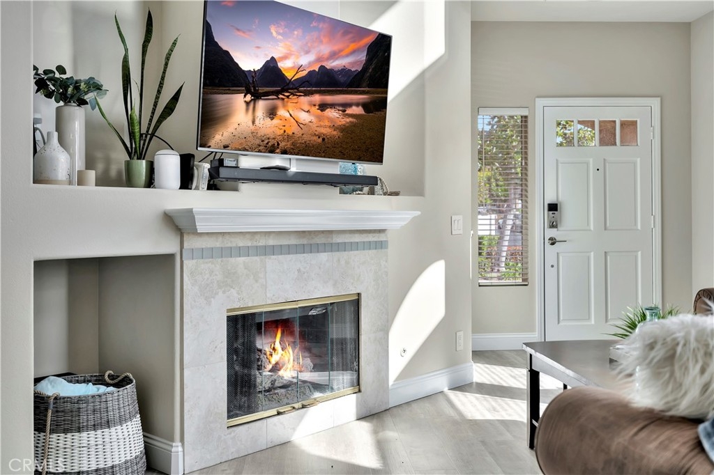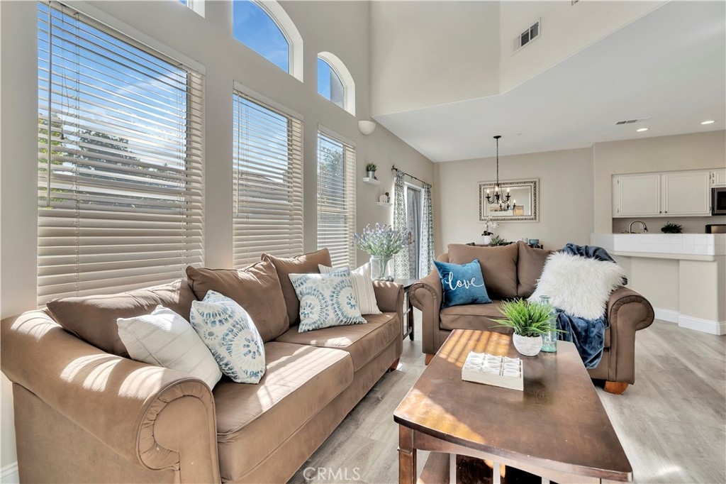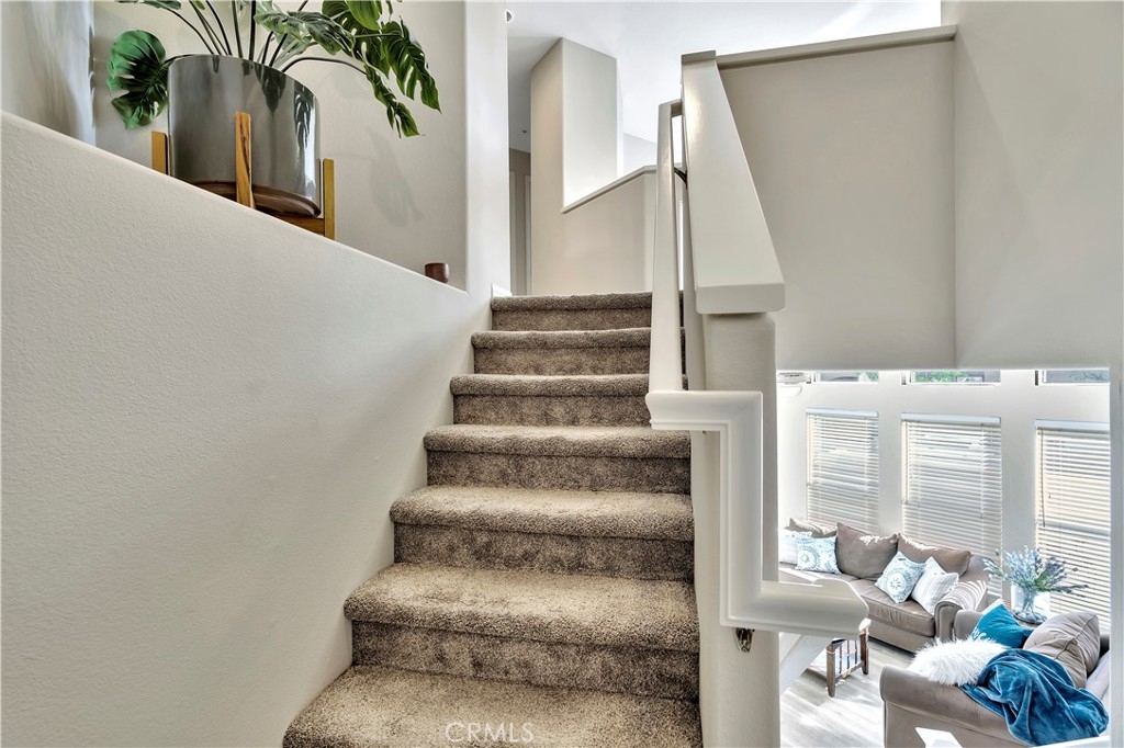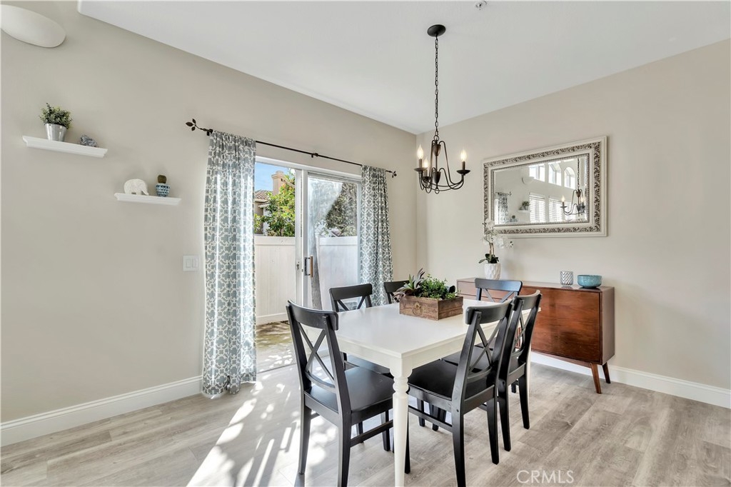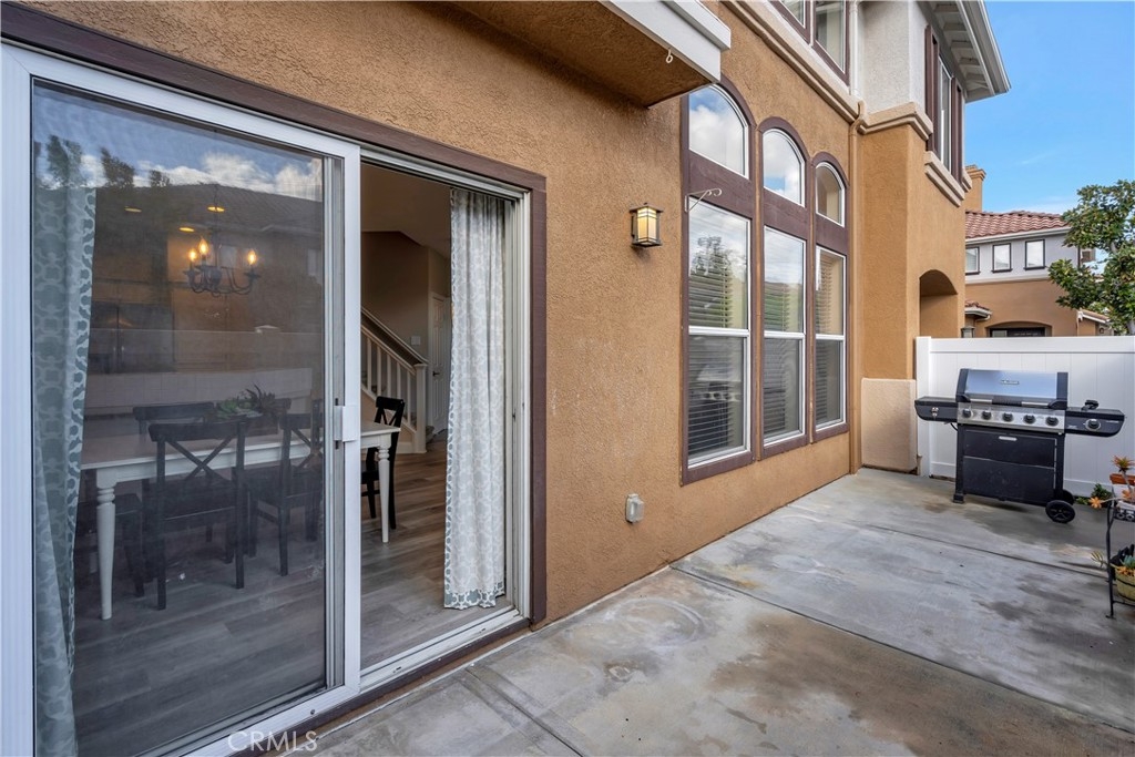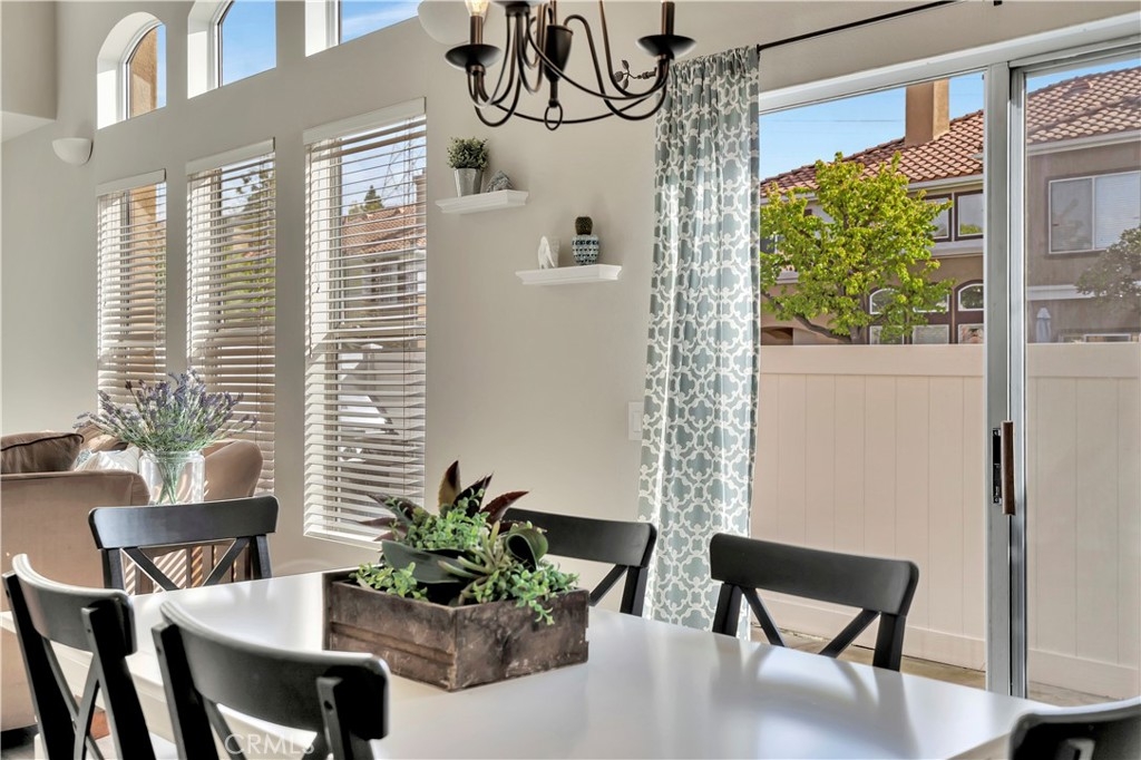 WATCH THE VIDEO (360)!! Fabulous location! This quiet and peaceful end unit is situated in the highly sought-after community of Terrace View. The townhome style home offers 3 bedrooms, 2 ½ bathrooms, and a two-car attached garage, with the added extra of a vinyl fenced private patio, perfect for entertaining, kids playing, or puppies romping! Delight in the volume ceilings downstairs, spacious living areas, fabulous window patterns cascading natural light throughout the home, designer paint colors, luxury vinyl plank flooring downstairs, and upgraded carpeting upstairs. Add in the enjoyment of this home being an Amazon Alexa + Samsung SmartThings home. The spacious kitchen has a new stainless-steel range and dishwasher, plenty of cabinetry for storage, great countertop space, and recessed can lighting. The kitchen opens to the spacious dining area with upgraded light fixture, and the delightful private patio. The living room is enhanced by a lovely gas log fireplace to provide added warmth on these cold nights! The master bedroom is light and bright, and is enhanced by a volume ceiling, upgraded ceiling fan, and recessed can lights. The master bathroom has upgraded luxury vinyl plank flooring, two sinks with a long countertop, a tub/shower with glass enclosure, upgraded light fixture, and a walk-in closet. The two secondary bedrooms are also light, bright, and spacious! The secondary bathroom upstairs has an upgraded vanity, tub/shower with glass enclosure, and luxury vinyl plank flooring. The downstairs guest bathroom has an upgraded vanity, newer fixtures, and lights. Added bonuses include the RING doorbell, the wall outlets, light switches, and wall plates have been replaced; the light switches all have dimmers and work with the Smart system. Enjoy the private community pool and spa with kids’ play area just around the corner. This wonderful community is tucked away, yet so close to everything! Walk to the shopping centers and restaurants; enjoy Lake Mission Viejo privileges offering fishing, boating, beaches, picnic areas, club house, summer concerts, and other seasonal events. Find beauty surrounding you in Whiting Ranch Wilderness Park where hiking and biking trails abound and improve your golf score at the Oso Creek Golf Course! Award winning, Blue Ribbon Distinguished schools in the highly desirable Saddleback Unified School District. Race to this home. You will delight in calling it “home sweet home”!