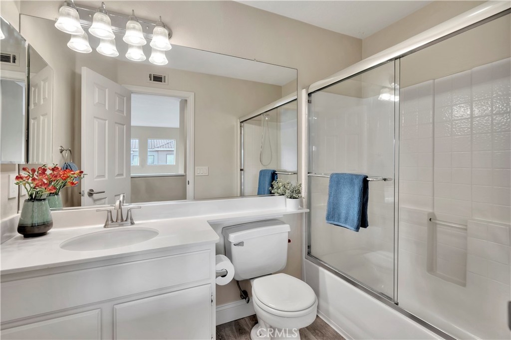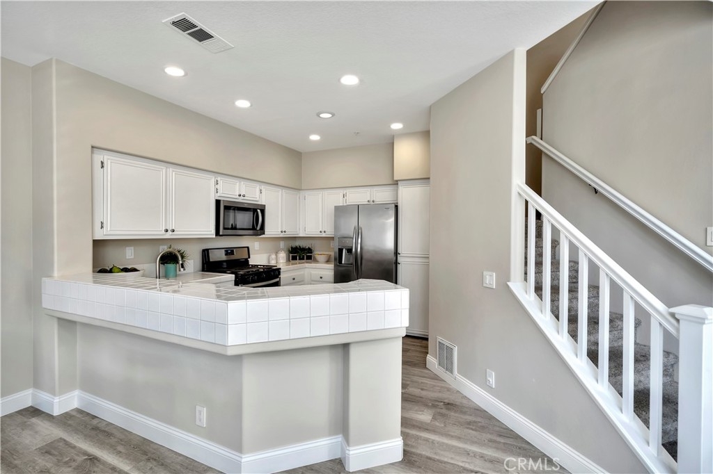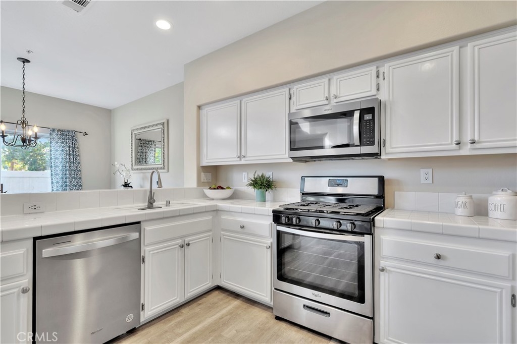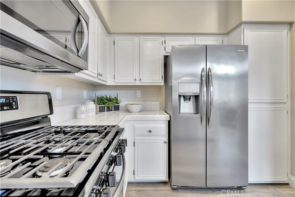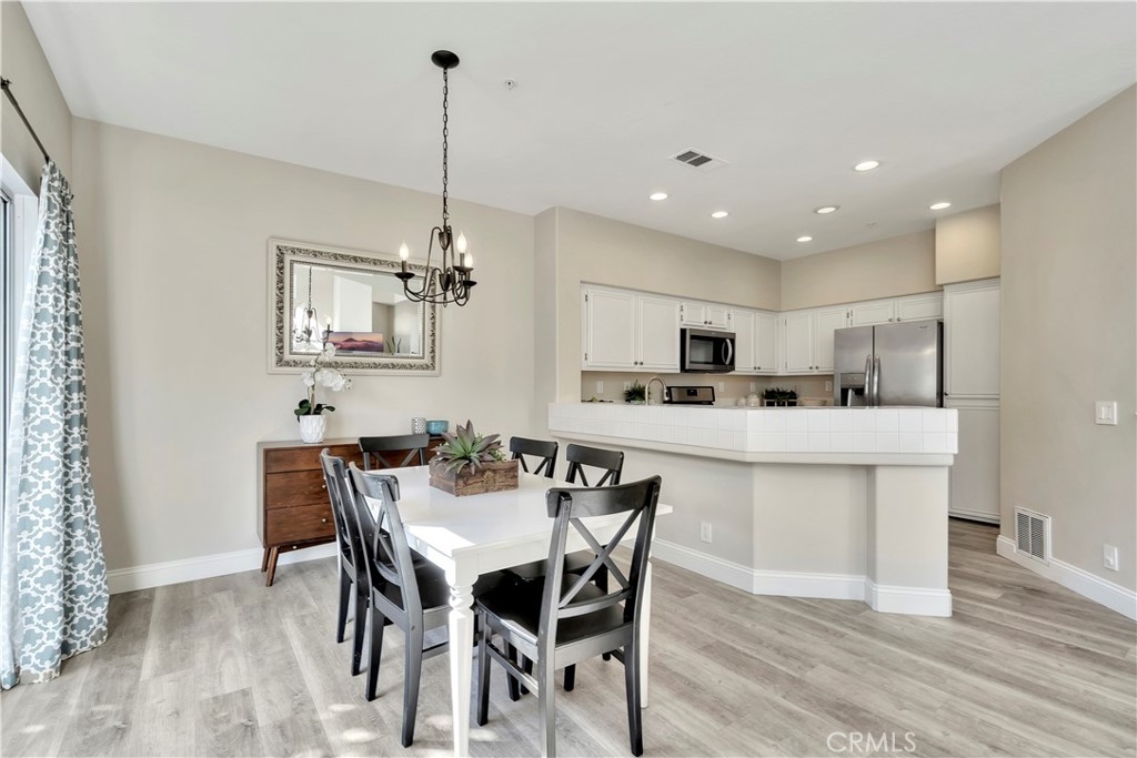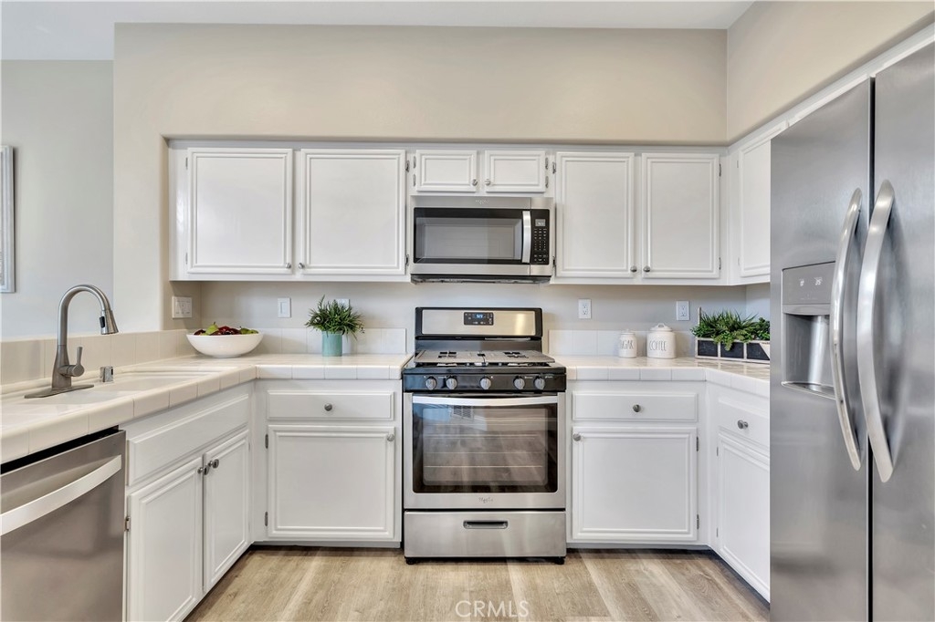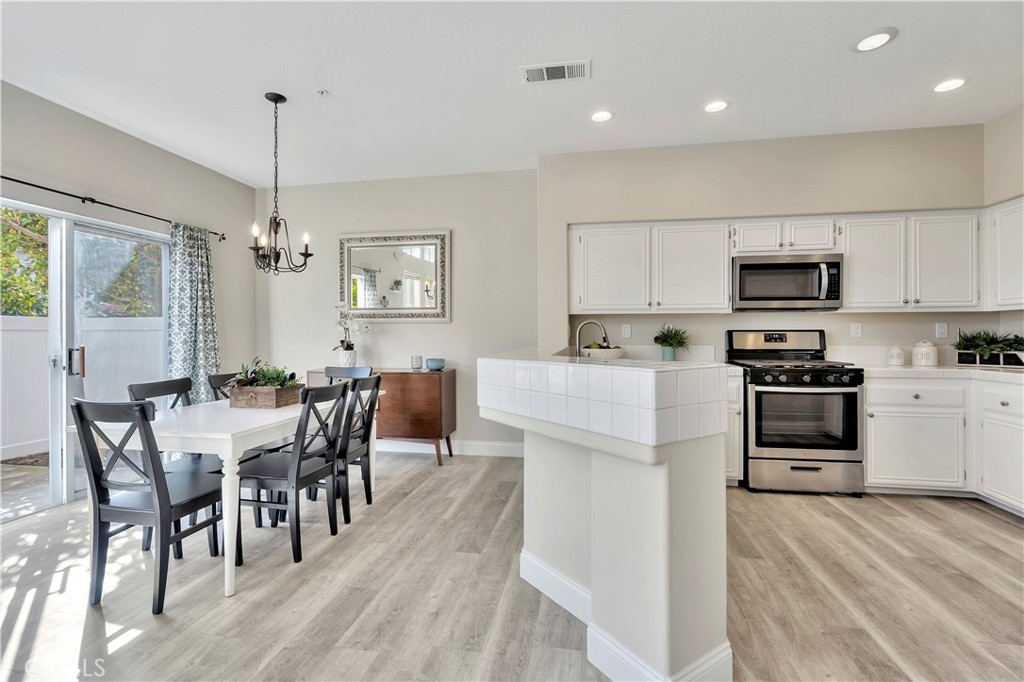 WATCH THE VIDEO (360)!! Fabulous location! This quiet and peaceful end unit is situated in the highly sought-after community of Terrace View. The townhome style home offers 3 bedrooms, 2 ½ bathrooms, and a two-car attached garage, with the added extra of a vinyl fenced private patio, perfect for entertaining, kids playing, or puppies romping! Delight in the volume ceilings downstairs, spacious living areas, fabulous window patterns cascading natural light throughout the home, designer paint colors, luxury vinyl plank flooring downstairs, and upgraded carpeting upstairs. Add in the enjoyment of this home being an Amazon Alexa + Samsung SmartThings home. The spacious kitchen has a new stainless-steel range and dishwasher, plenty of cabinetry for storage, great countertop space, and recessed can lighting. The kitchen opens to the spacious dining area with upgraded light fixture, and the delightful private patio. The living room is enhanced by a lovely gas log fireplace to provide added warmth on these cold nights! The master bedroom is light and bright, and is enhanced by a volume ceiling, upgraded ceiling fan, and recessed can lights. The master bathroom has upgraded luxury vinyl plank flooring, two sinks with a long countertop, a tub/shower with glass enclosure, upgraded light fixture, and a walk-in closet. The two secondary bedrooms are also light, bright, and spacious! The secondary bathroom upstairs has an upgraded vanity, tub/shower with glass enclosure, and luxury vinyl plank flooring. The downstairs guest bathroom has an upgraded vanity, newer fixtures, and lights. Added bonuses include the RING doorbell, the wall outlets, light switches, and wall plates have been replaced; the light switches all have dimmers and work with the Smart system. Enjoy the private community pool and spa with kids’ play area just around the corner. This wonderful community is tucked away, yet so close to everything! Walk to the shopping centers and restaurants; enjoy Lake Mission Viejo privileges offering fishing, boating, beaches, picnic areas, club house, summer concerts, and other seasonal events. Find beauty surrounding you in Whiting Ranch Wilderness Park where hiking and biking trails abound and improve your golf score at the Oso Creek Golf Course! Award winning, Blue Ribbon Distinguished schools in the highly desirable Saddleback Unified School District. Race to this home. You will delight in calling it “home sweet home”!