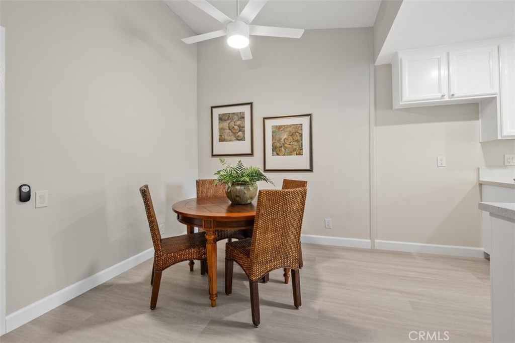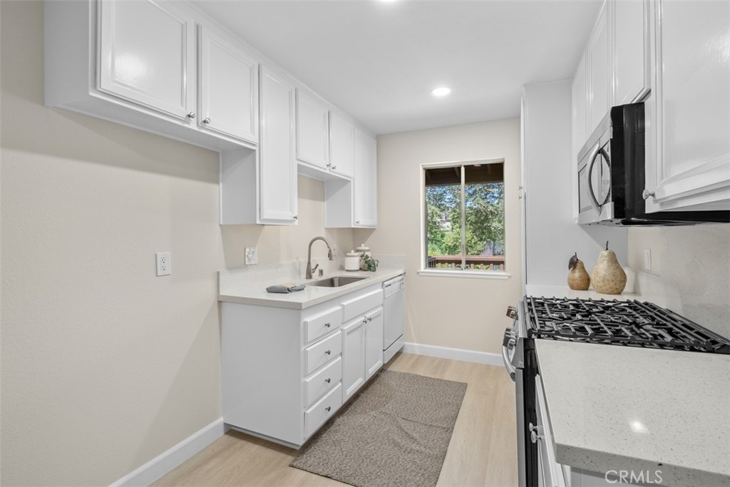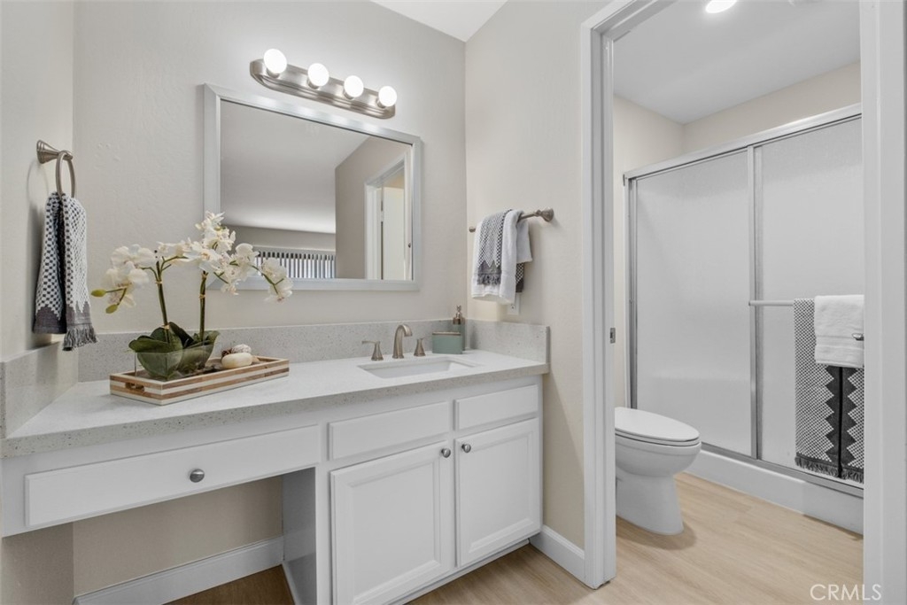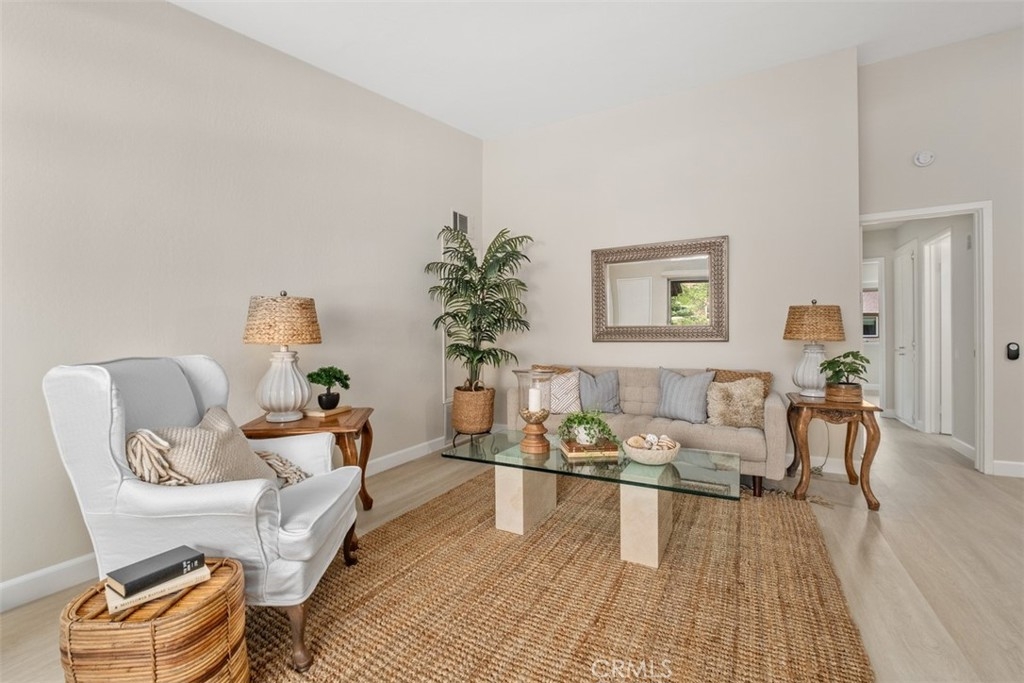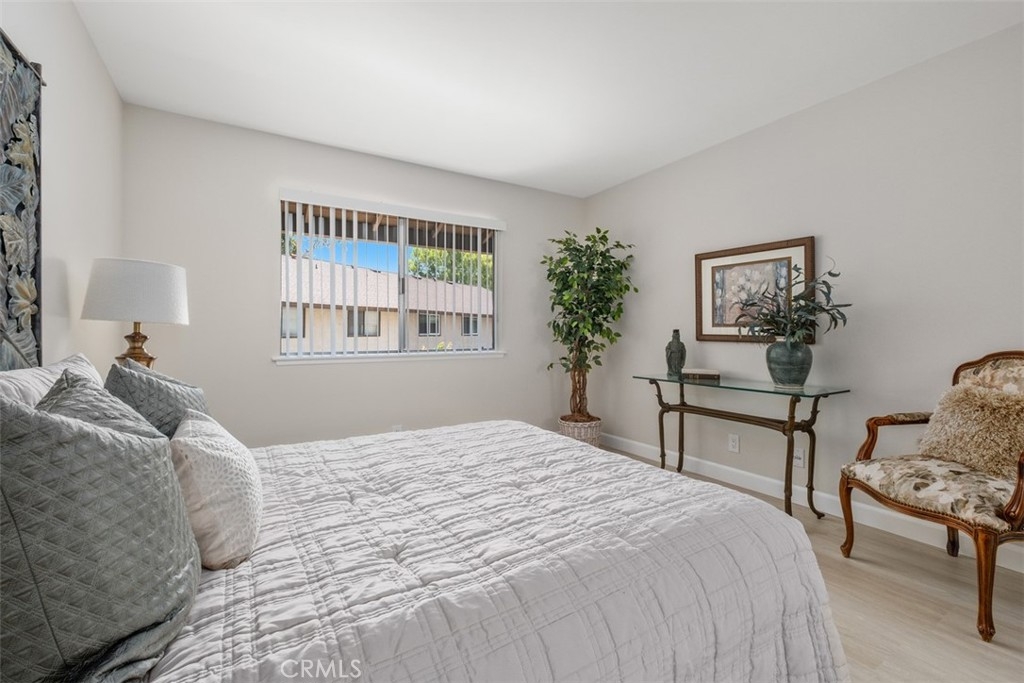 A fabulous VIEW location. The gorgeous 2 bedroom, 2 bath condo is highly upgraded with NEW vinyl wood floors throughout, new quartz counters in the kitchen and both bathrooms, freshly painted, and new wide base-boards through out. Enter into a large great room with vaulted ceilings with a balcony to relax and enjoy the stunning view. The updated white kitchen is adjacent to the dining area that opens into the great room making it ideal for entertaining. The primary bedroom is nice size with an ensuite bathroom. The 2 bedroom could also be used as an office or guest bedroom. The full hall bathroom is ideal for guest. The HOA includes, water, trash, laundry area next to the carport. You also have access to Lake Mission Viejo with beautiful sandy beaches, picnic area, boating and wonderful summer concerts.