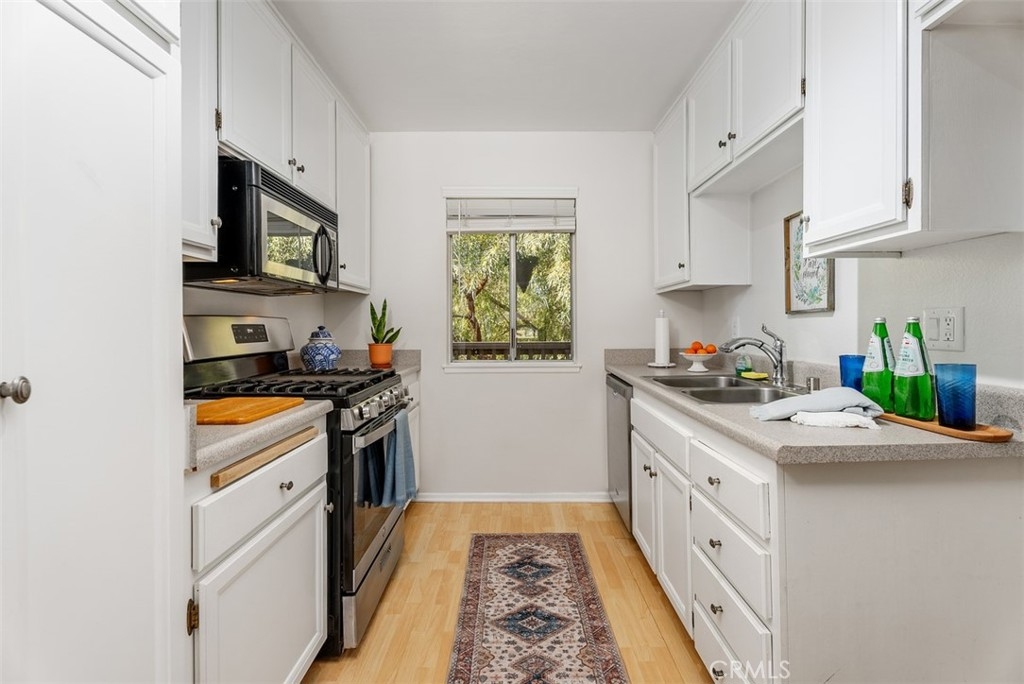 Desirable upstairs end-unit condo, located just 1 mile from the freeway in the heart of Mission Viejo. The bright and open floor plan features two balconies with views of the greenbelt and trees. High ceilings in the spacious living room open to the kitchen. The large master bedroom offers plenty of closet space and brand-new carpeting. HOA dues cover water and trash pickup, and the complex boasts a large community pool. Located within the prestigious Saddleback Valley Unified School District, this condo is within walking distance of restaurants, the library, shopping, a large park, and Memorial Hospital. EV charging stations are available.