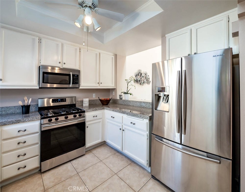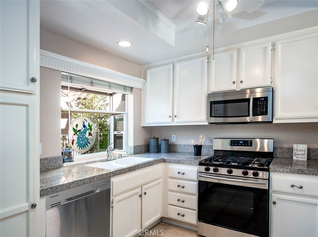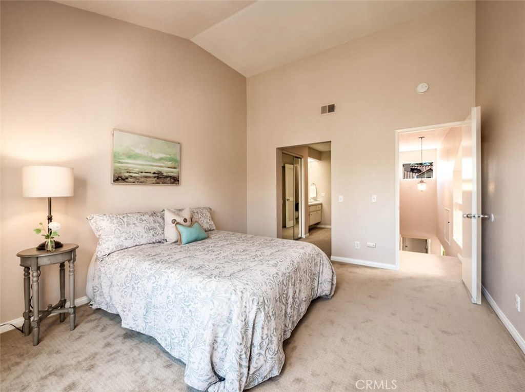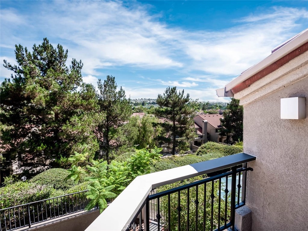 Adjacent to Lake Mission Viejo & several parks. Prime location on elevated street offering quiet, serene views to Saddleback Mountain and privacy. Gated courtyard entry plus nice backyard. Most desirable townhouse style floorpan with two true master suites- one on the main level & one upstairs with a private view balcony plus a mainfloor den/office or guest room & a powder bath. Upgraded kitchen with granite counters, white cabinetry, new stainless steel Samsung gas range, dishwasher & microwave hood as well as a French door Samsung refrigerator. Kitchen has a breakfast bar & is open to the living & dining room. Living room has soaring 2 story ceilings and skylights as well as a gas/wood burning fireplace. The backyard is private with a nice patio, planting areas, & wonderful views. Baths are all upgraded with New Quartz counters with mosaic backsplash and tile floors. Smooth ceilings. Attached direct access 2 car garage with roll up door, tons of storage. Washer & dryer included. Huge easy access floored attic storage, storage closets at backyard patio and balcony. Newer AC compressor. Enjoy close pool, spa, tennis courts and adjacent park and walk to Lake Mission Viejo Beach and wonderful amenities as well as restaurants. FHA and VA approved and we welcome your offer.