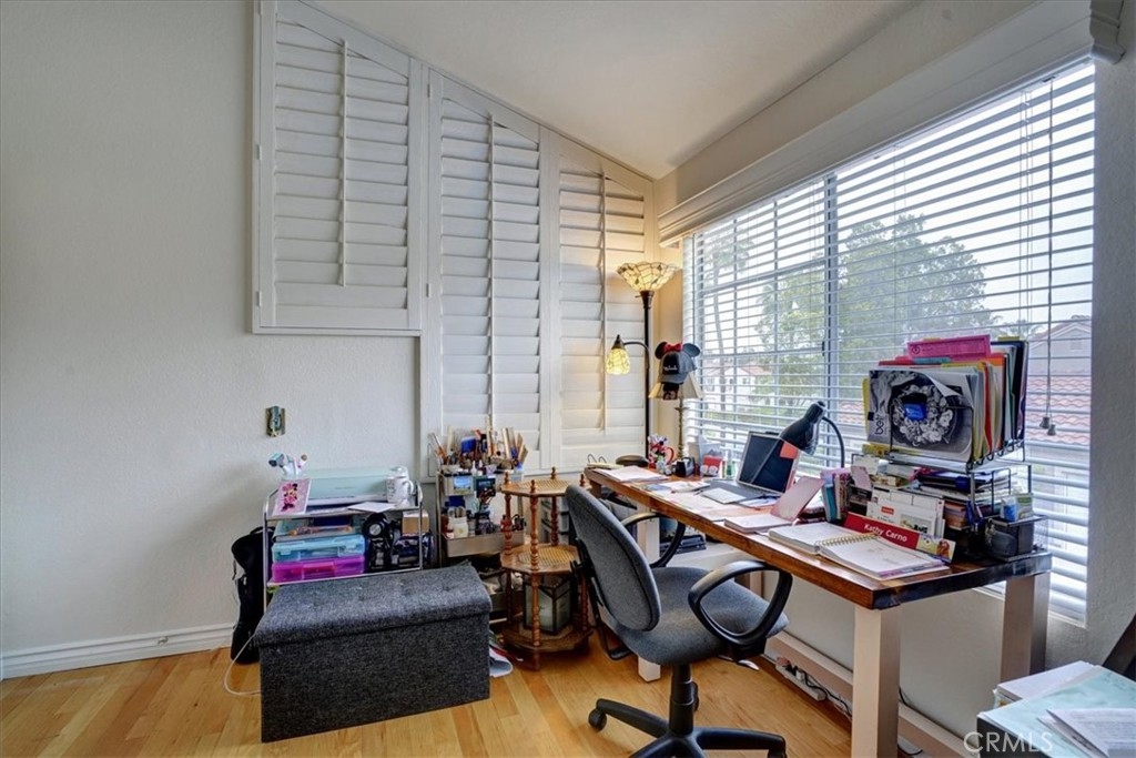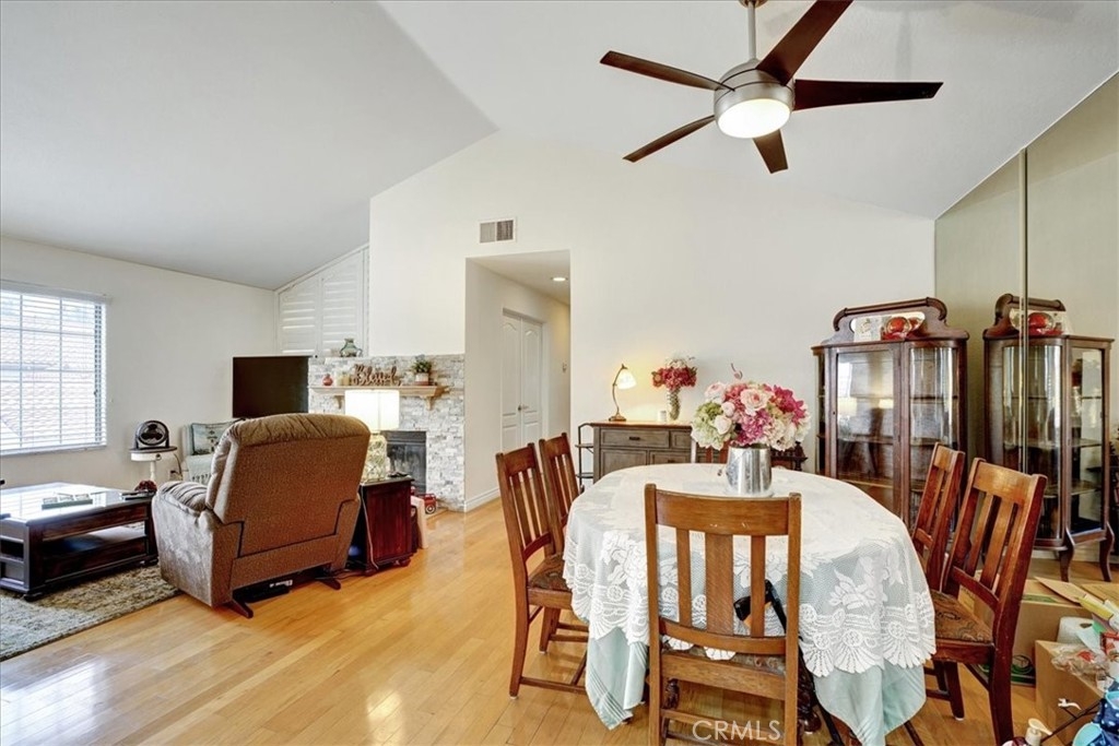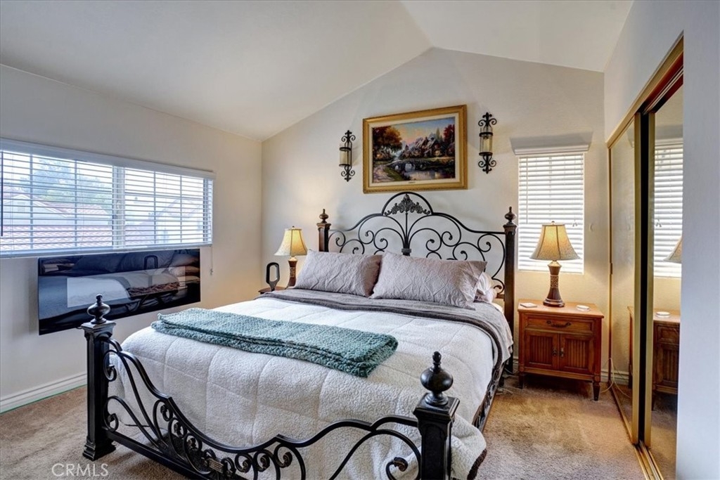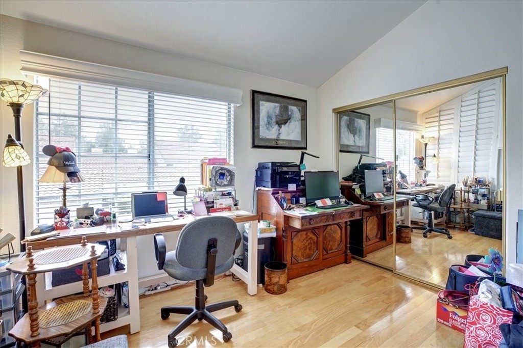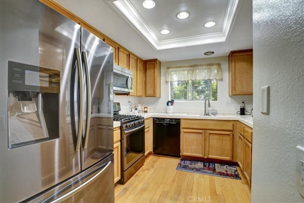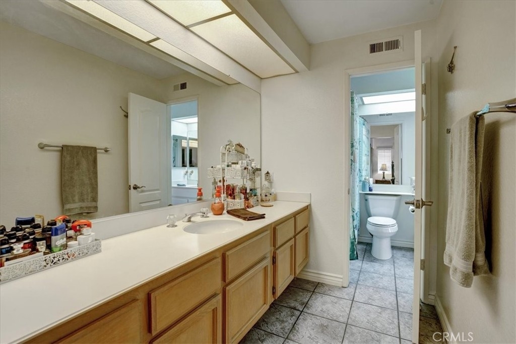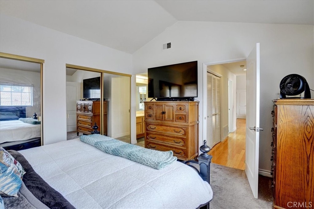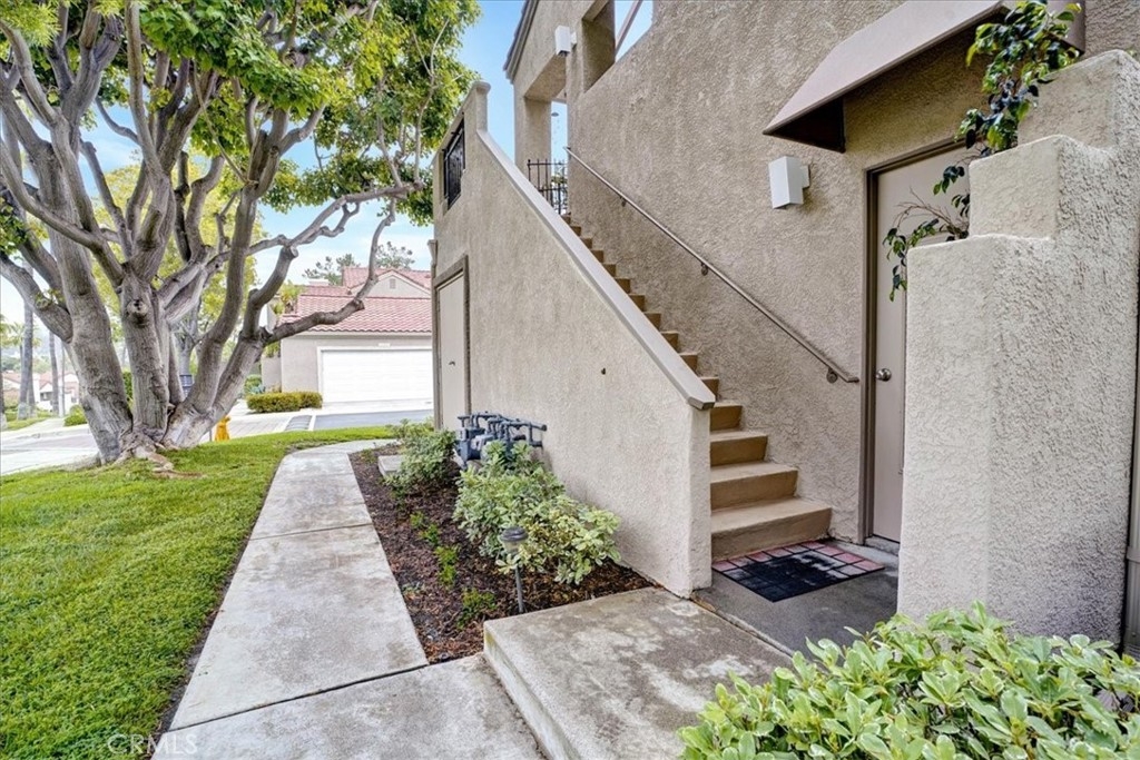 Walk to the lake! This well-maintained carriage unit condo has no one above or below you. It is also an end unit which means you have maximum privacy, light, and views. All on one level, this two bedroom and one full bath (plus additional master vanity) home has vaulted ceilings and gorgeous wood flooring throughout. The kitchen is spacious and opens directly to the dining and living areas. The outside patio is large and private, and you can see the 4th of July fireworks from your balcony! There is a one car garage, plus a full-size driveway. The association maintains a pool, spa and tennis courts in addition to greenbelts all around. Lake Mission Viejo is down the street with beaches, boating paddle boarding, swimming, fishing, concerts, holiday events, and more. This is a beautiful condo in a beautiful community. Award winning schools, and close to restaurants, shops, and more. Complex is not FHA /VA approved.