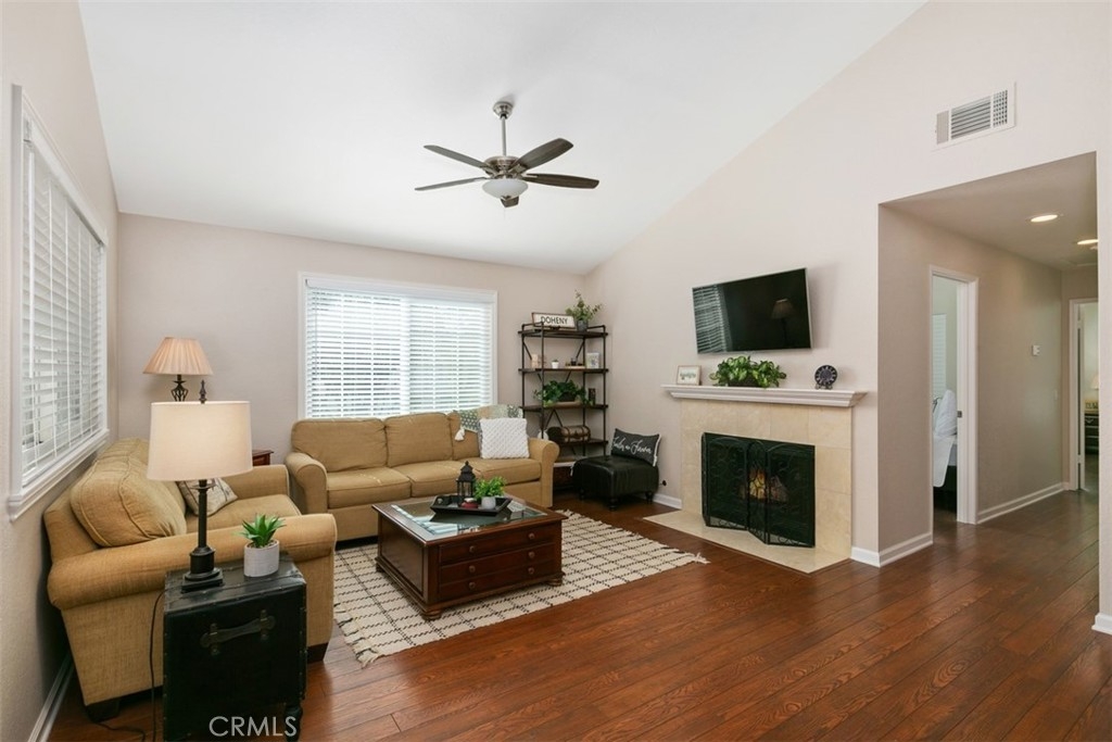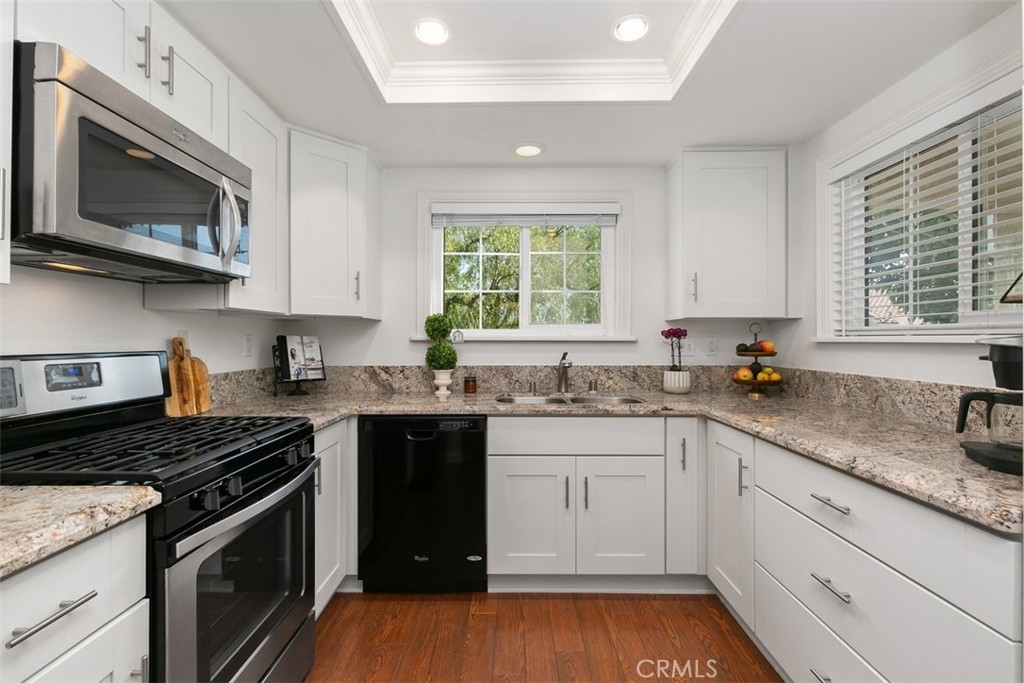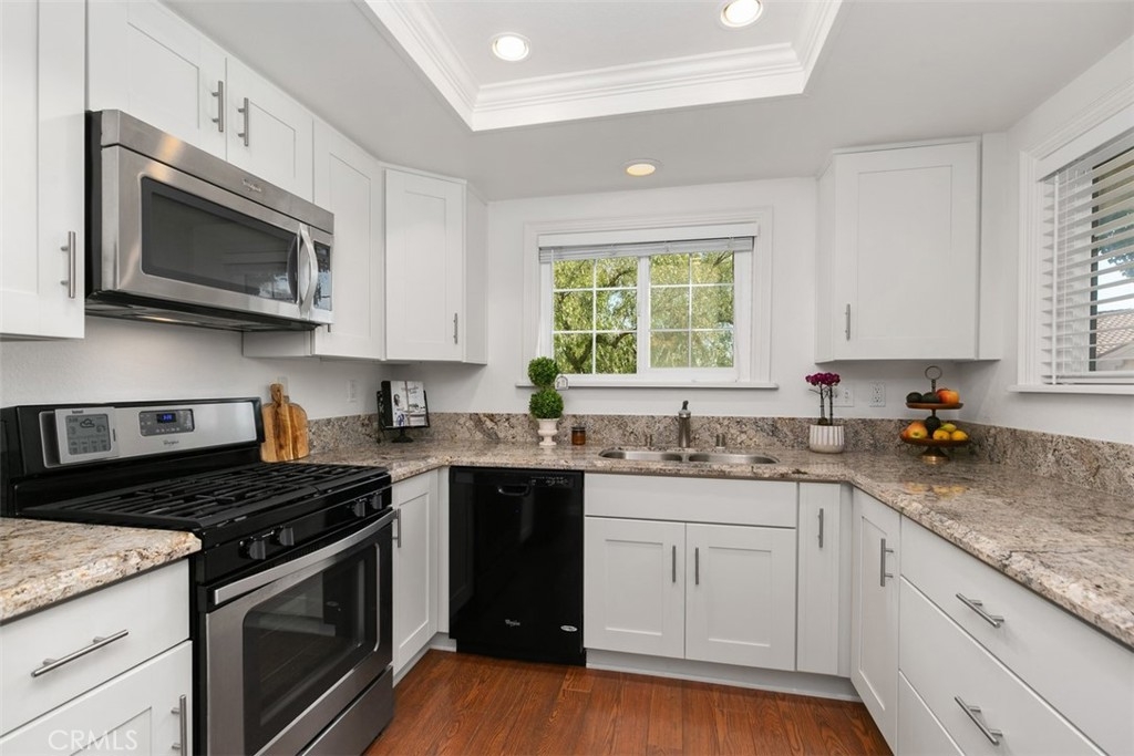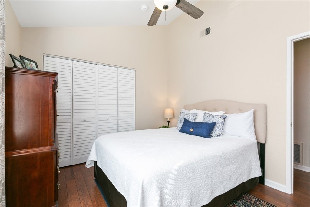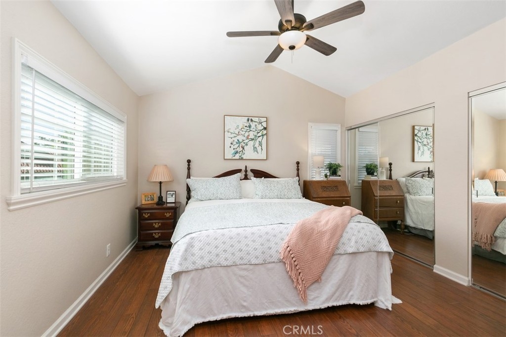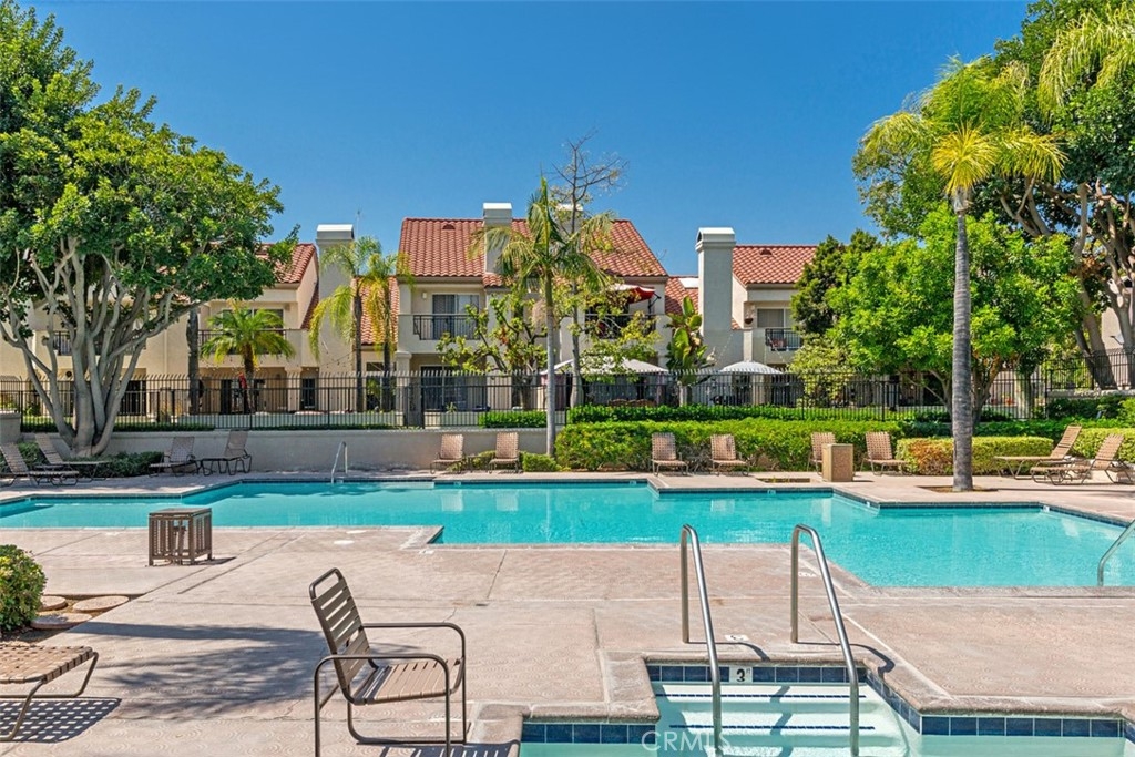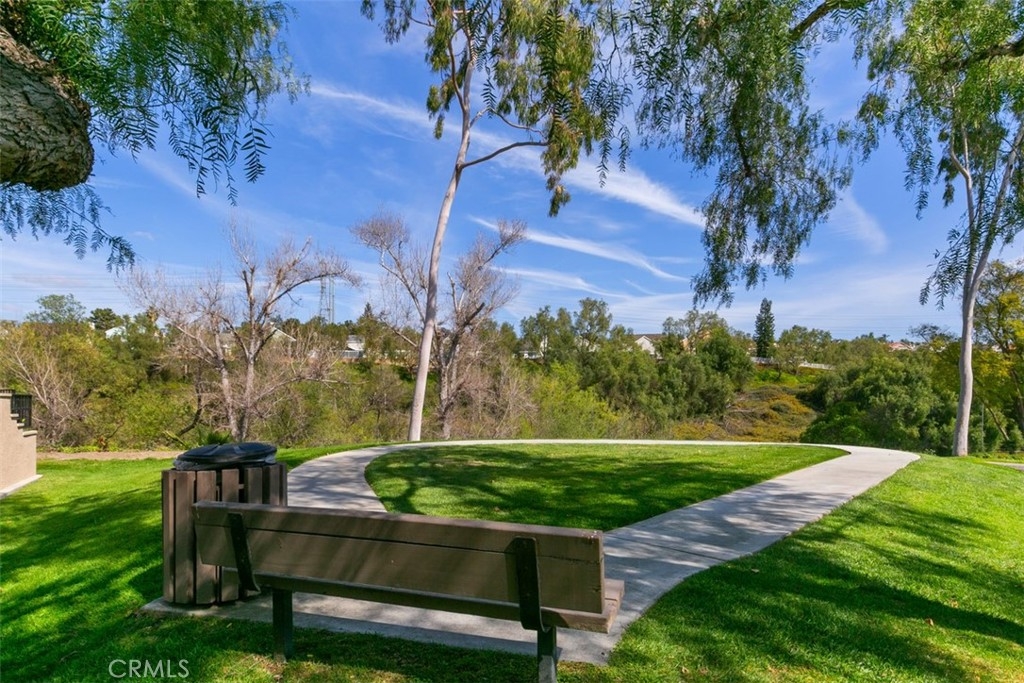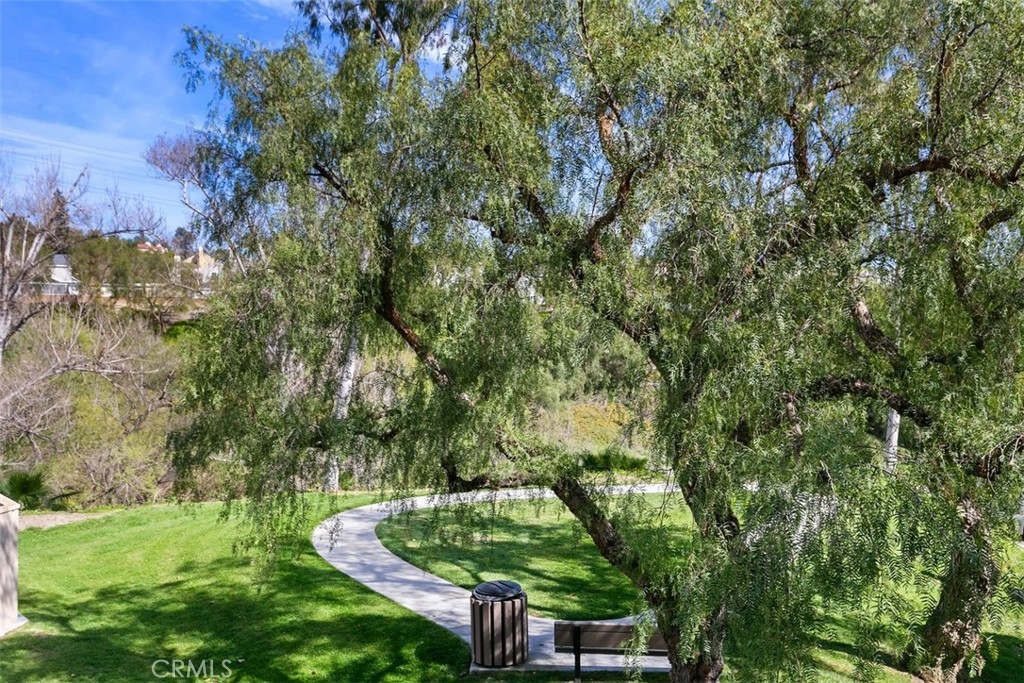 You Can Have it All! Supreme Location & Pristine Condition.... Welcome to this Beautifully Upgraded Coral Gardens 2 Bedroom and 2 Bathroom carriage unit (no one above/below) in Gorgeous Mission Viejo. Truly the best spot in the neighborhood, this End Unit property is situated on a quiet street, surrounded by lush landscape providing a serene and peaceful setting, with a grassy park/play area and paths that lead to the baseball fields and highly sought Lake Mission Viejo. A private staircase leads from the attached garage to the single level living space with patio ideal for sunset entertaining, BBQ and the BEST VIEWS of the 4th of July fireworks bonanza at the lake. This spacious and open home welcomes you with warm wood style laminate flooring, vaulted ceilings in the living/dining areas and upgraded dual pained windows offering plenty of natural light. The living area with gas burning fireplace is open to the generous dining space. Enjoy the Remodeled kitchen with incredibly breathtaking views of the trees, newer white cabinetry, updated fixtures, granite counters and custom tray lighted ceiling. Large Primary Suite with Pitched Ceiling and Huge Wardrobe Closets and a Newly Designed Bathroom which is Unique Only to this Unit!! Secondary bedroom is generous in size with a niche that hosts a desk. Both bedrooms and living room have lighted ceiling fans. Upgraded interior laundry closet hosts large washer/dryer and custom cabinetry. The list goes on and on... This home is complete with a Newer HVAC system and Water Heater, Designer paint, Wood Blinds and sooo much more! The single car garage has custom racks and cabinets with plenty of storage. Coral Garden offers tennis courts, spas, and a resort-style sparkling pool. Being within steps to Lake Mission Viejo you can utilize your membership by enjoying sandy days at the beach, lake swimming, Summer concerts under the stars, boating, fishing, kayaking, paddle boarding, party boat rentals to entertain friends/family and a host of other fun outdoor activities. Truly TOP NOTCH... Do not miss this INCREDIBLE OPPORTUNITY to ENJOY a HIGHLY UPGRADED & WELL KEPT HOME!