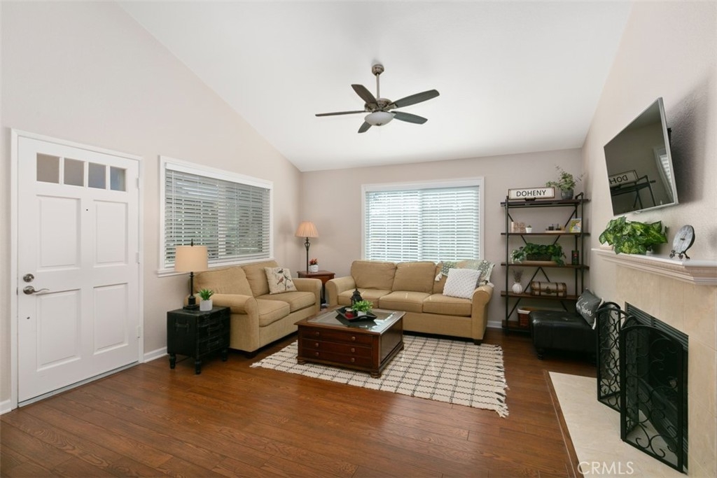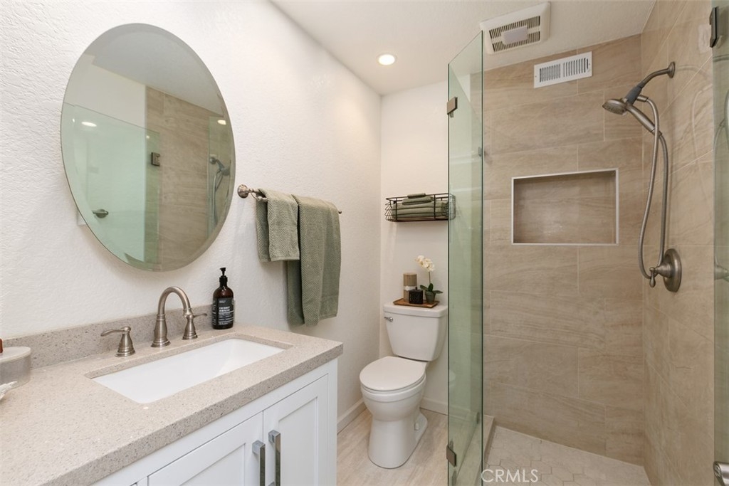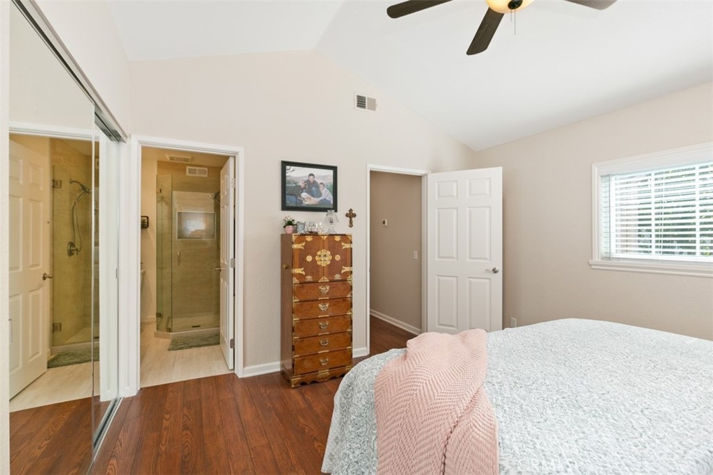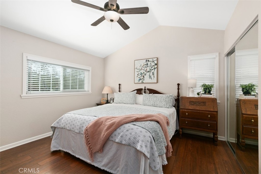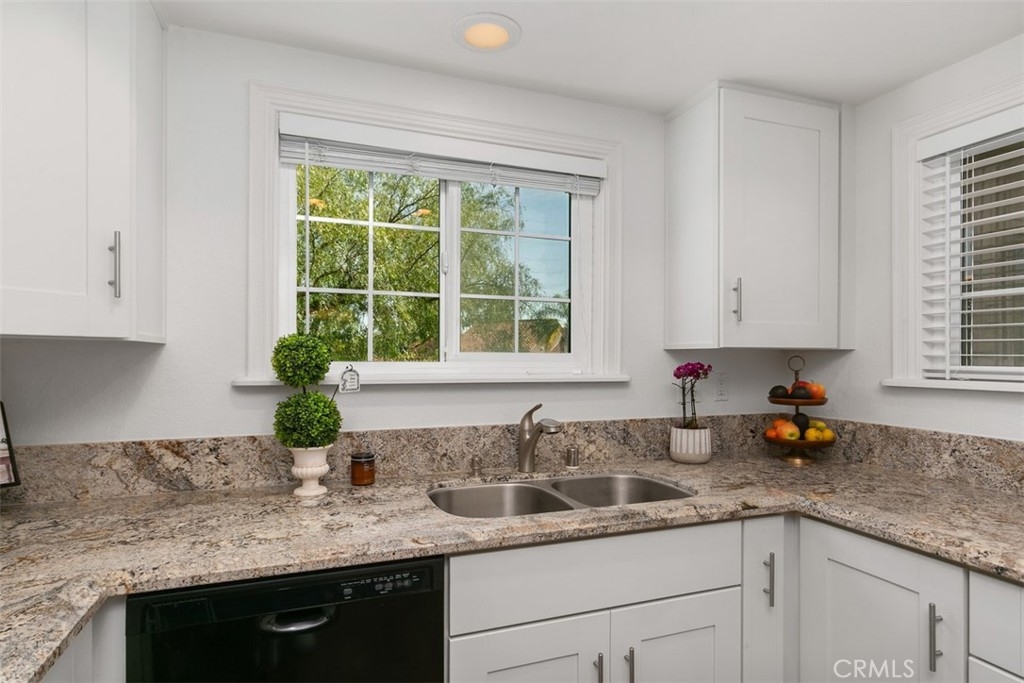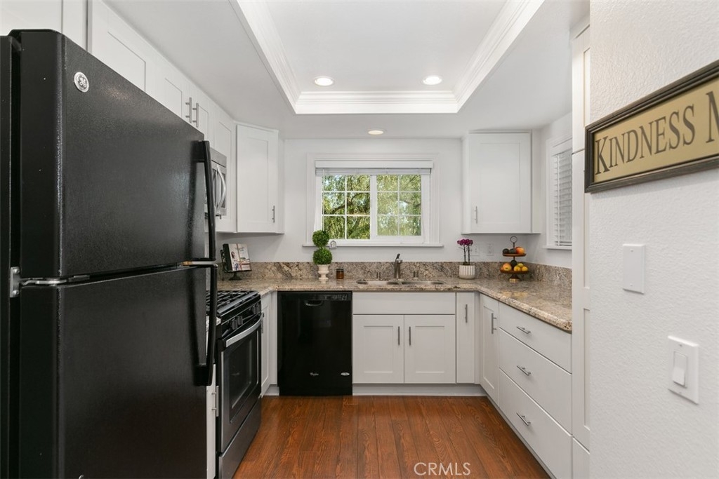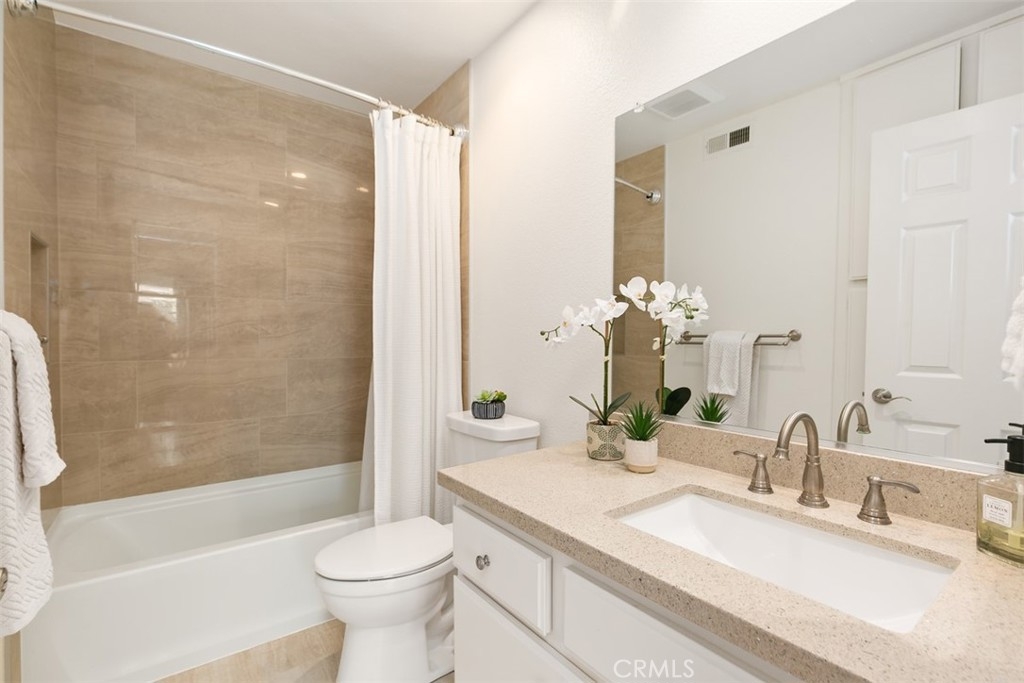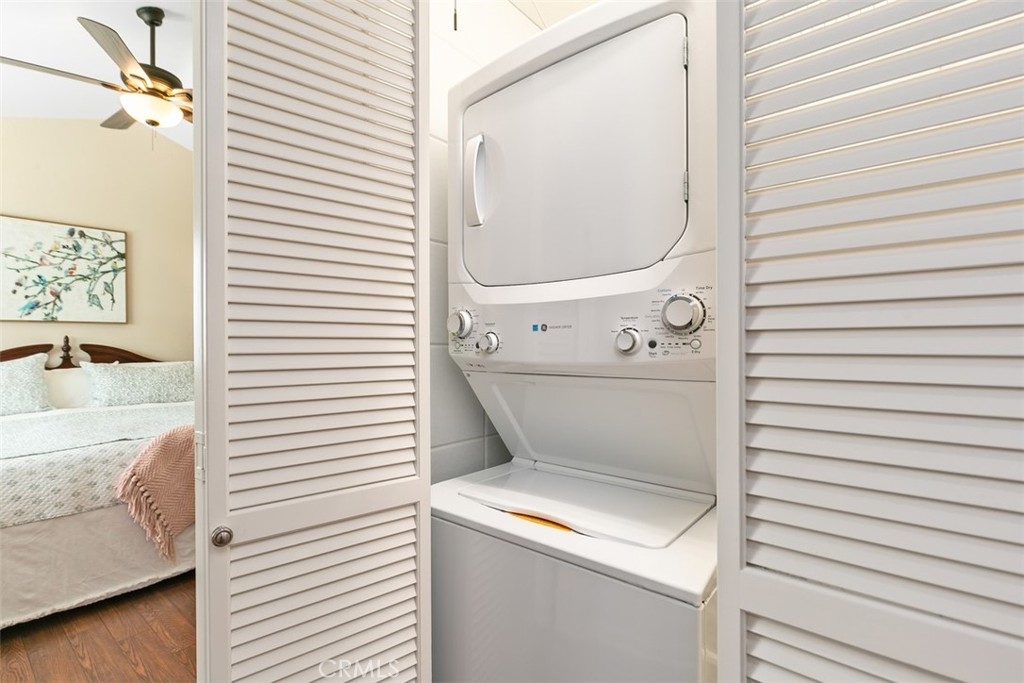 You Can Have it All! Supreme Location & Pristine Condition.... Welcome to this Beautifully Upgraded Coral Gardens 2 Bedroom and 2 Bathroom carriage unit (no one above/below) in Gorgeous Mission Viejo. Truly the best spot in the neighborhood, this End Unit property is situated on a quiet street, surrounded by lush landscape providing a serene and peaceful setting, with a grassy park/play area and paths that lead to the baseball fields and highly sought Lake Mission Viejo. A private staircase leads from the attached garage to the single level living space with patio ideal for sunset entertaining, BBQ and the BEST VIEWS of the 4th of July fireworks bonanza at the lake. This spacious and open home welcomes you with warm wood style laminate flooring, vaulted ceilings in the living/dining areas and upgraded dual pained windows offering plenty of natural light. The living area with gas burning fireplace is open to the generous dining space. Enjoy the Remodeled kitchen with incredibly breathtaking views of the trees, newer white cabinetry, updated fixtures, granite counters and custom tray lighted ceiling. Large Primary Suite with Pitched Ceiling and Huge Wardrobe Closets and a Newly Designed Bathroom which is Unique Only to this Unit!! Secondary bedroom is generous in size with a niche that hosts a desk. Both bedrooms and living room have lighted ceiling fans. Upgraded interior laundry closet hosts large washer/dryer and custom cabinetry. The list goes on and on... This home is complete with a Newer HVAC system and Water Heater, Designer paint, Wood Blinds and sooo much more! The single car garage has custom racks and cabinets with plenty of storage. Coral Garden offers tennis courts, spas, and a resort-style sparkling pool. Being within steps to Lake Mission Viejo you can utilize your membership by enjoying sandy days at the beach, lake swimming, Summer concerts under the stars, boating, fishing, kayaking, paddle boarding, party boat rentals to entertain friends/family and a host of other fun outdoor activities. Truly TOP NOTCH... Do not miss this INCREDIBLE OPPORTUNITY to ENJOY a HIGHLY UPGRADED & WELL KEPT HOME!