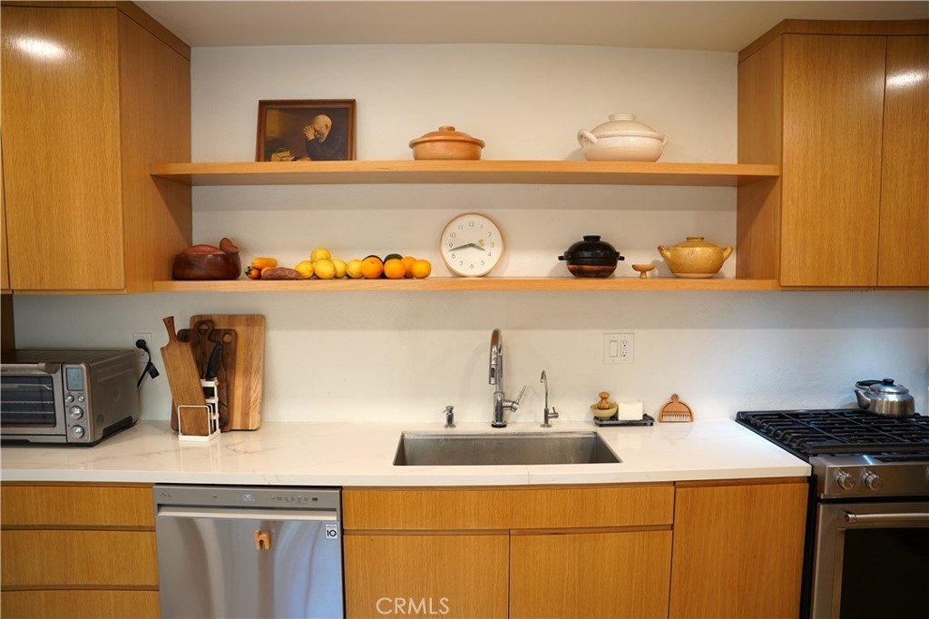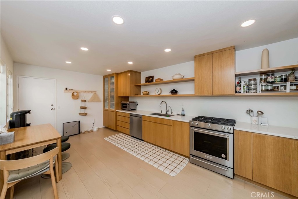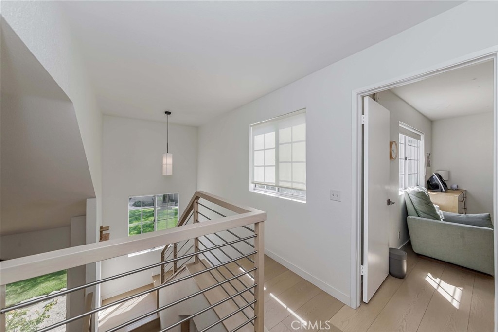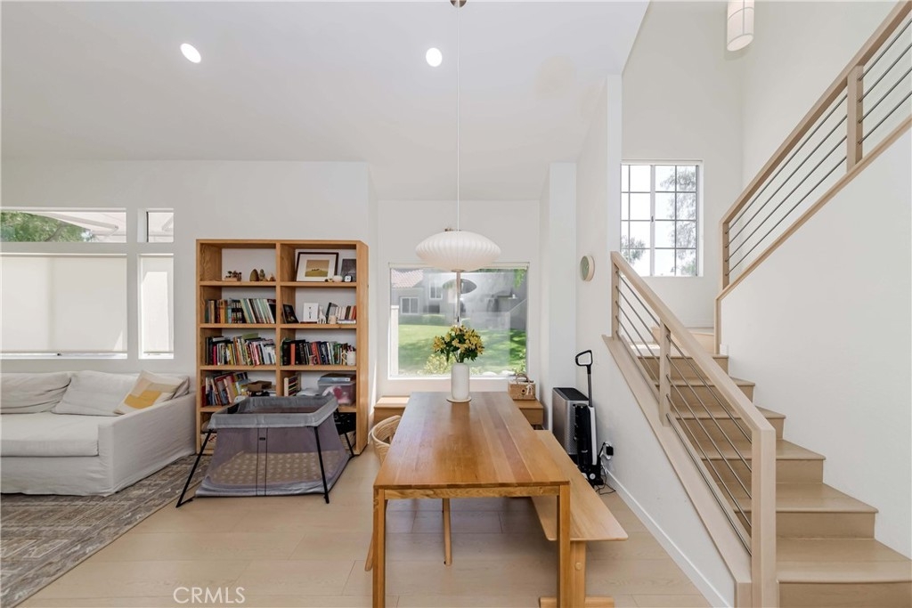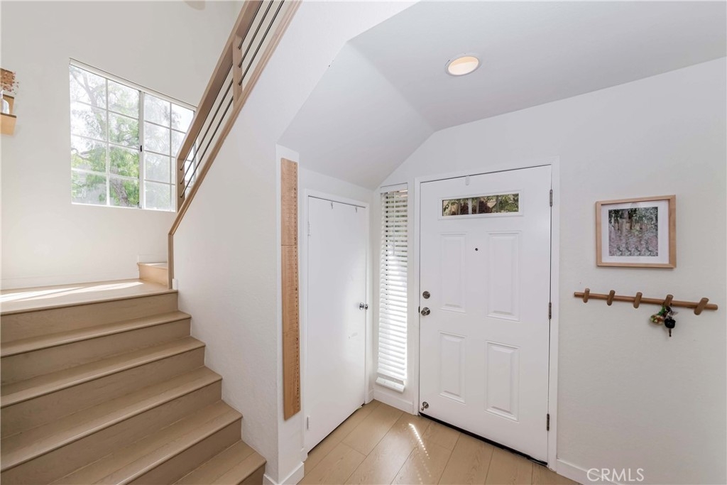 Meticulously remodeled from top to bottom 3 bedroom and 3 bathroom end unit townhouse nestled in the covetous Coral Gardens community with $150,000 in renovation. This home includes newly installed luxury laminate floors throughout, designer brand Cle tiles on all bathroom shower walls and floors, and custom kitchen and bathroom remodel by LA based architectural firm Manchen Co. On the first floor, this home features an open concept floor plan with an abundance of natural lighting throughout, cathedral ceilings, and a custom built fireplace adorned with Moroccan zellige tiles. Prepare your best dishes in this custom kitchen built with white oak cabinets and shelving, quartz countertops, and two sets of pantry designed with reeded glass. There is also a bedroom and full bathroom on the first floor, great for guests or as an in law suite. On the second floor, there are newly installed custom white oak staircase, two bedrooms and two full bathrooms. The primary suite has a balcony with the Saddleback mountains in view. Home includes fully renovated front and back courtyards with newly installed concrete, drought resistant landscaping, automatic sprinklers, outdoor lighting, and three retractable awnings throughout. Amenities include walking distance and membership to the Mission Viejo Lake and an expansive green belt right next to the home with added privacy as there are no neighbors front or back of the home.