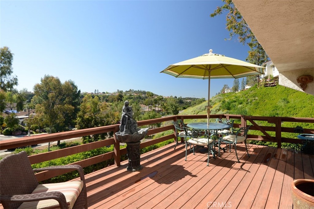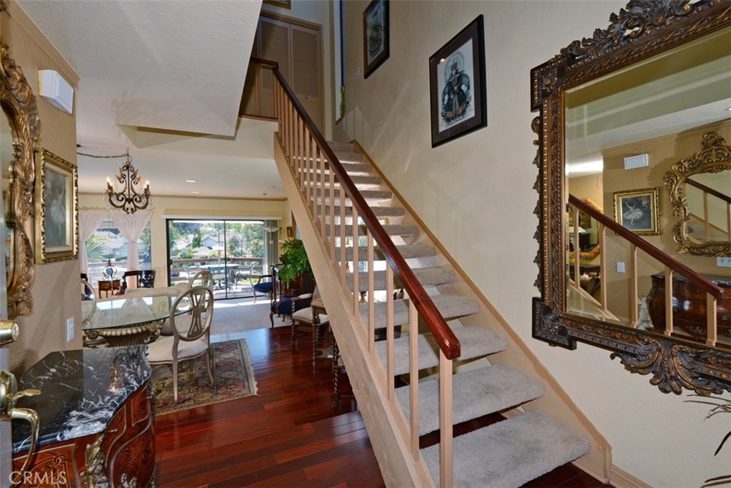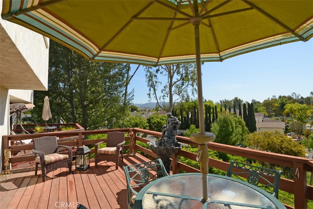 Great opportunity to own this Beautiful 3 Bedroom Condo in El Mirador community! The location of this condo provides stunning views of saddleback mountains and canyons the moment you step into the home. The open floor plans provides formal dining area, and living room with cozy fireplace that looks out to the panoramic views. The over sized deck is perfect place for you to sit and sip your coffee in the morning, or unwind with a glass a wine. Plenty of natural light shines thru to provide warm, cozy feeling. Recessed lighting and rose wood flooring on the first level. Beautiful remodeled powder bath is located conveniently downstairs for you and your guests. Relax upstairs in the master suite with own master bathroom. Remodeled bathroom with stylish sink and bath is located upstairs for other two bedrooms to use. Washer and Dryer is located upstairs for easy access. Enjoy your outdoor living with access to Lake Mission Viejo that offers great swimming, fishing, concerts, and BBQ areas. Endless fun activities for you and your family to enjoy! This is a must see for you to appreciate this great location!