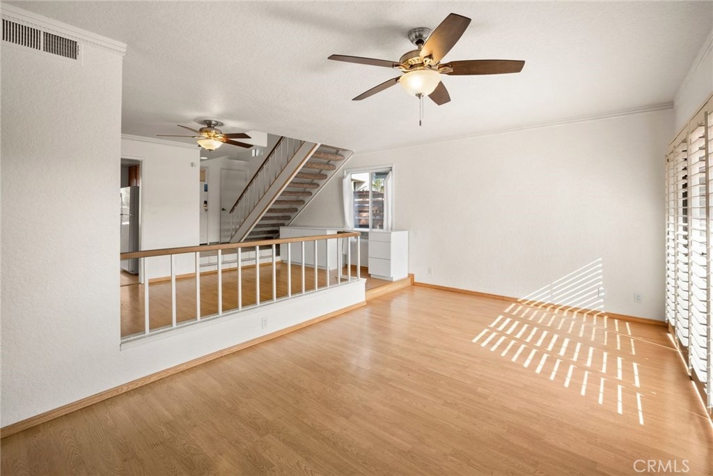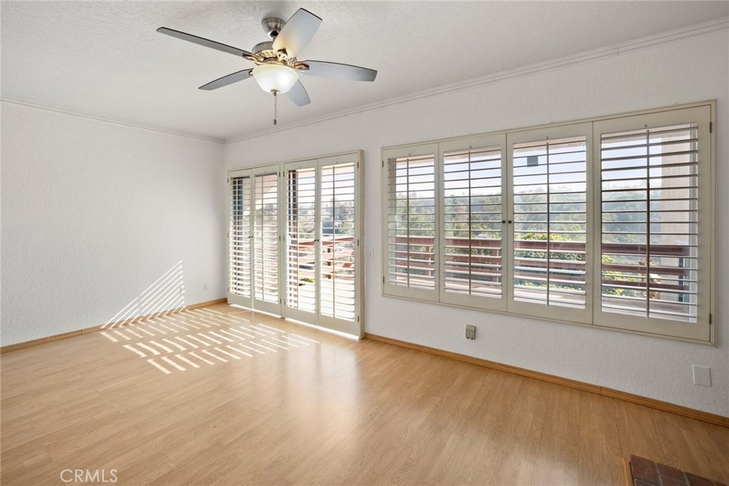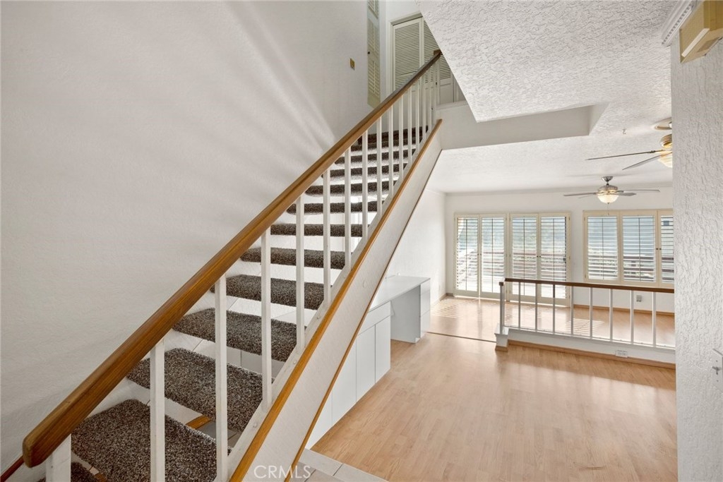 Beautiful 3 bedroom, 2.5 bathroom, story condo with gorgeous mountain and city lights views in the community of El Mirador in Mission Viejo! Enjoy an expansive upper deck with stunning panoramic views, an open floor plan with an inviting brick fireplace, wet bar, laminate wood flooring, and serene ceiling fans. The kitchen offers white appliances, elegant lighting, and sliding doors to the private, outdoor balcony. The primary bedroom features carpet flooring, large closets with built-in shelving, and an updated primary bathroom. Additional property highlights include the inside laundry room, shutters, and 2 car detached garage. The HOA dues include access to Lake Mission Viejo amenities such as boating, fishing, and more. Convenient to area markets, restaurants, and easy access to The Toll Roads!