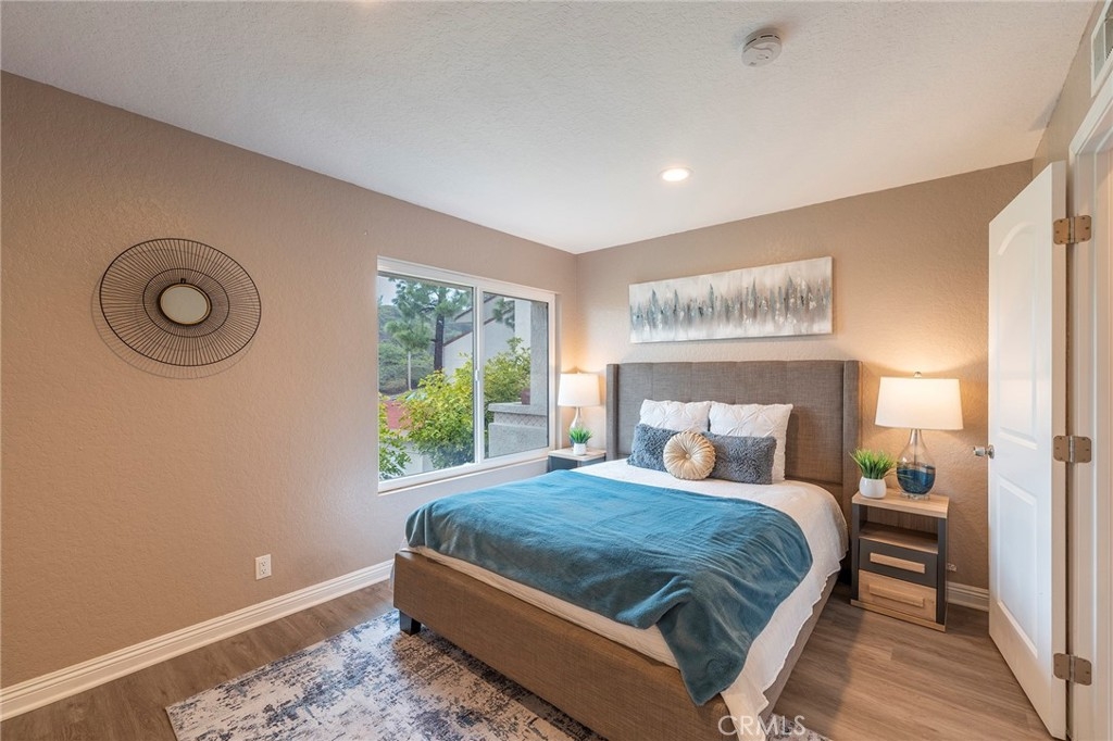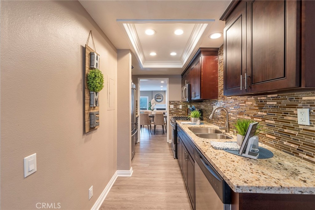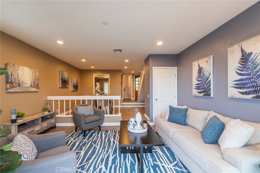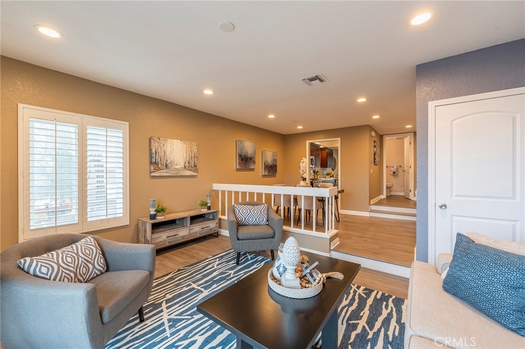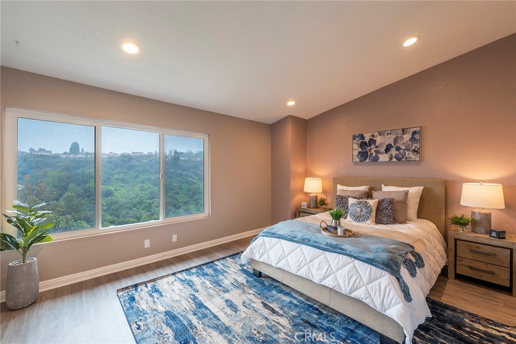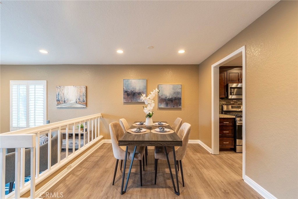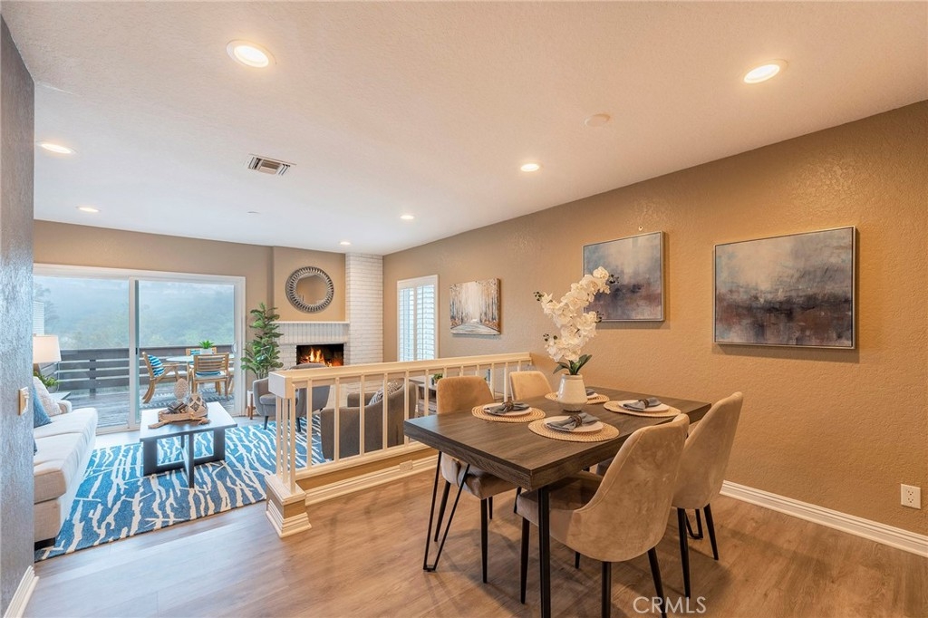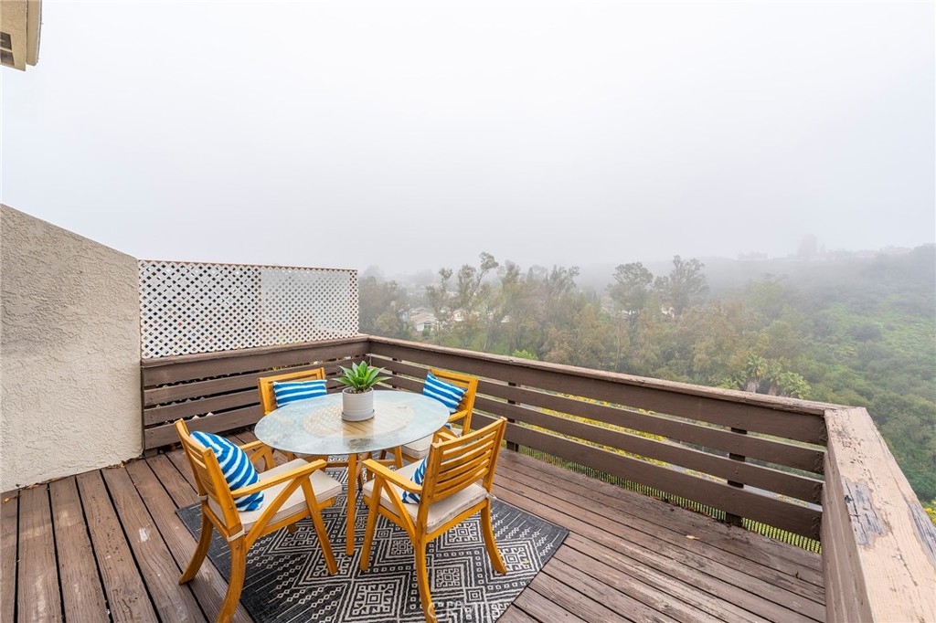 Gorgeous Townhome with unobstructed, panoramic views! This home features formal dining room and living room with a cozy fireplace and access to the large deck to enjoy the beautiful views. Kitchen has granite counters, glass tile backsplash, under cabinet lighting, stainless appliances, reassessed lighting, and a breakfast nook. The main floor has a convenient powder room as well. Upstairs you will find the master bedroom featuring vaulted ceilings, recessed lighting and two mirrored closets. Master bath features dual vanity, granite counters, and a custom framed mirror. The adjacent bath has granite counters, dual flush toilet, tub and enclosure and tile flooring. The second bedroom has vaulted ceilings, recessed lighting and a mirrored closet. The washer and dryer are conveniently located in the upstairs hallway closet. Private two car garage with newer opener located just a few steps away. New laminate flooring throughout in 2022 and new HVAC in 2020.