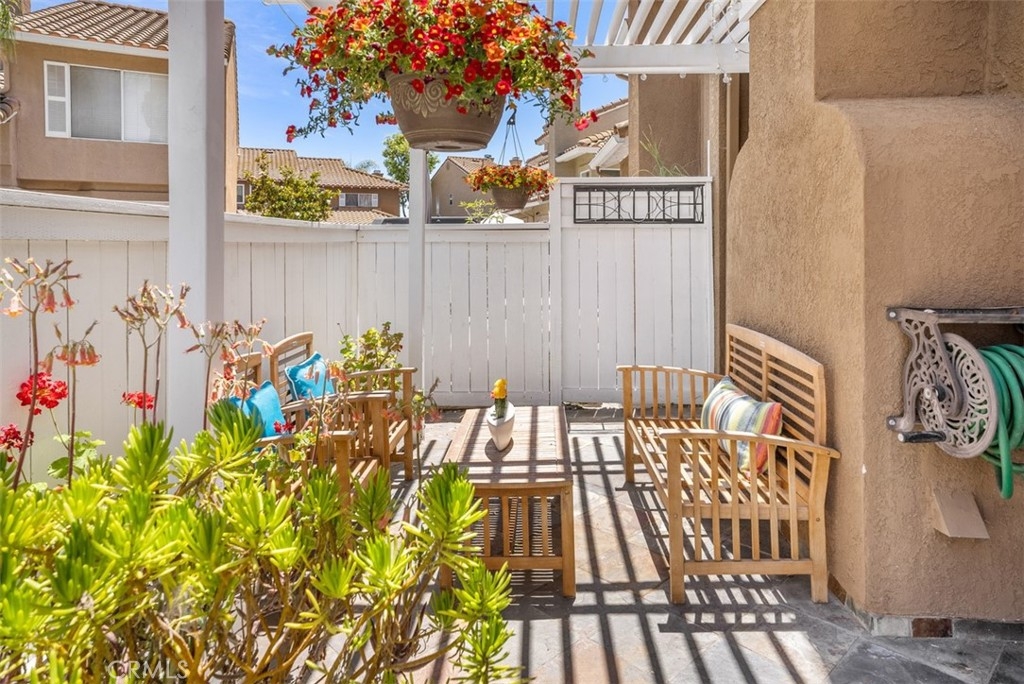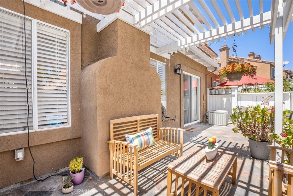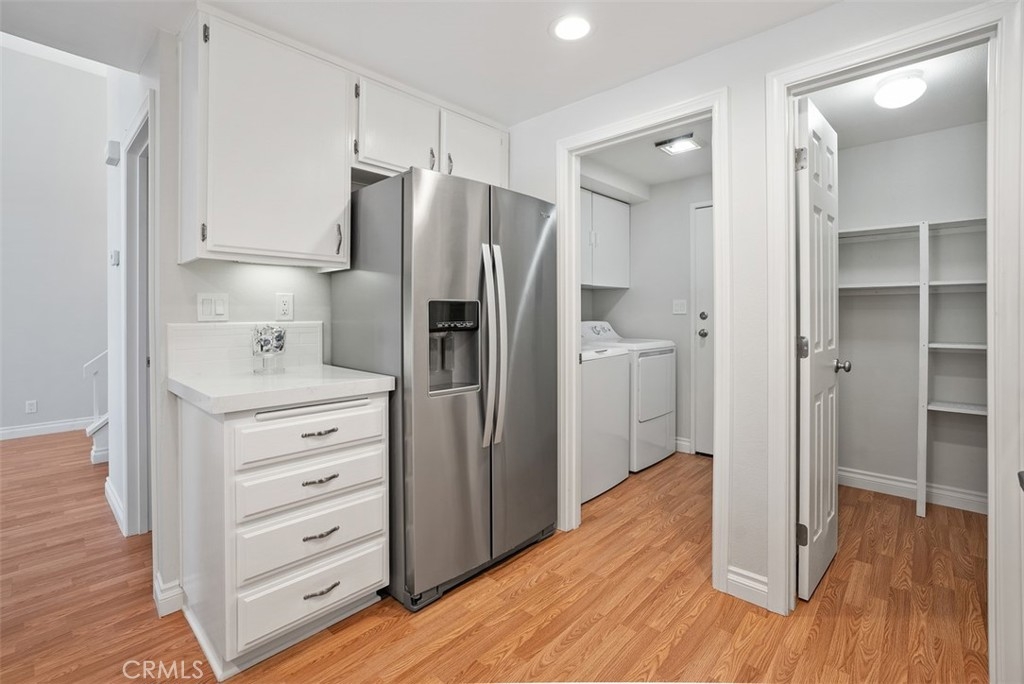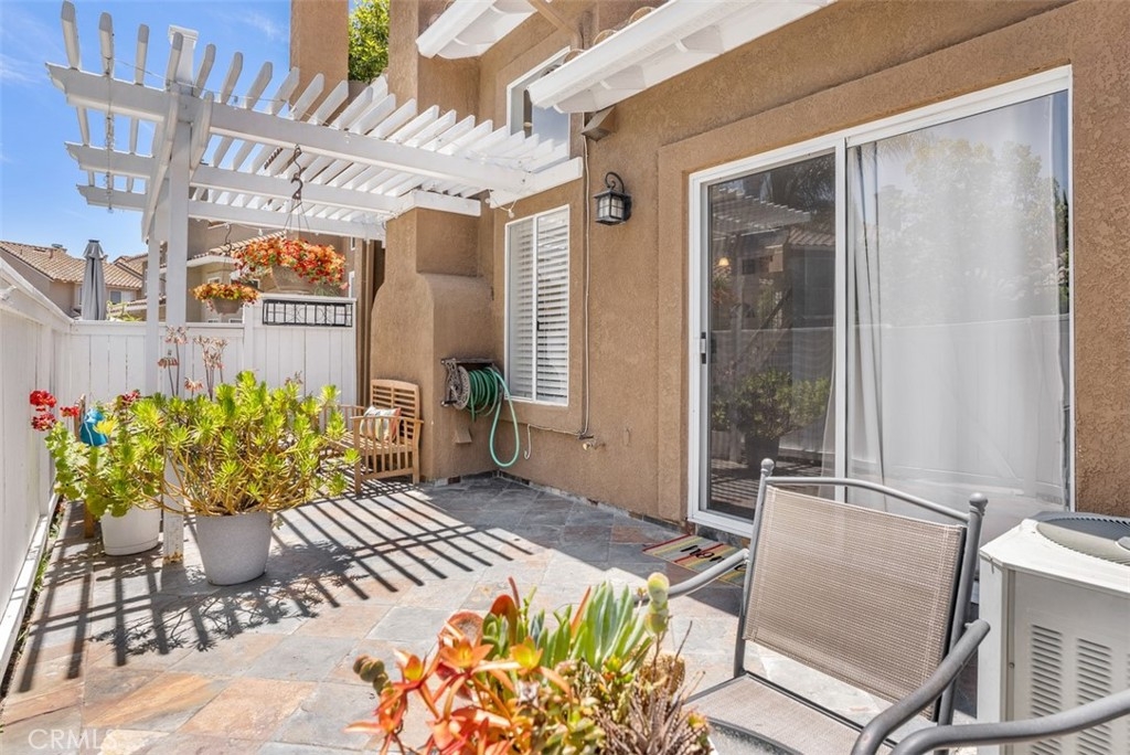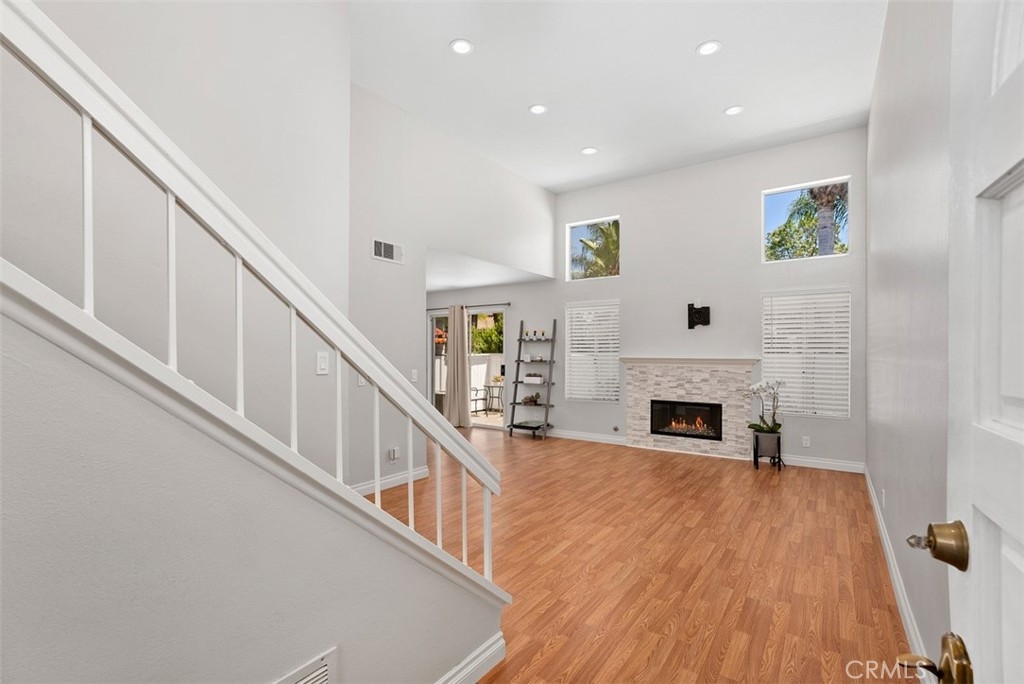 Remodeled three bedroom townhome with soaring ceilings in living room with stacked stone fireplace. Recessed led lighting, upgraded baseboards. Remodeled kitchen with stone counters, stainless steel appliances including refrigerator . Walk in pantry. Abundant storage. Individual laundry room, washer/dryer included. Picturesque rear patio with lush landscape surround. Covered loggia. Upstairs gracious master suite with vaulted ceiling. Dual closets, one of which is walk-in. Spa inspired master shower and master bath with dual sinks. Two secondary bedrooms, one with built-ins. Home attic fan to cool upstairs quickly. Easy parking with two car attached garage . Excellent location within community , steps to pool. This home was meticulously remodeled and is ready to move right in.