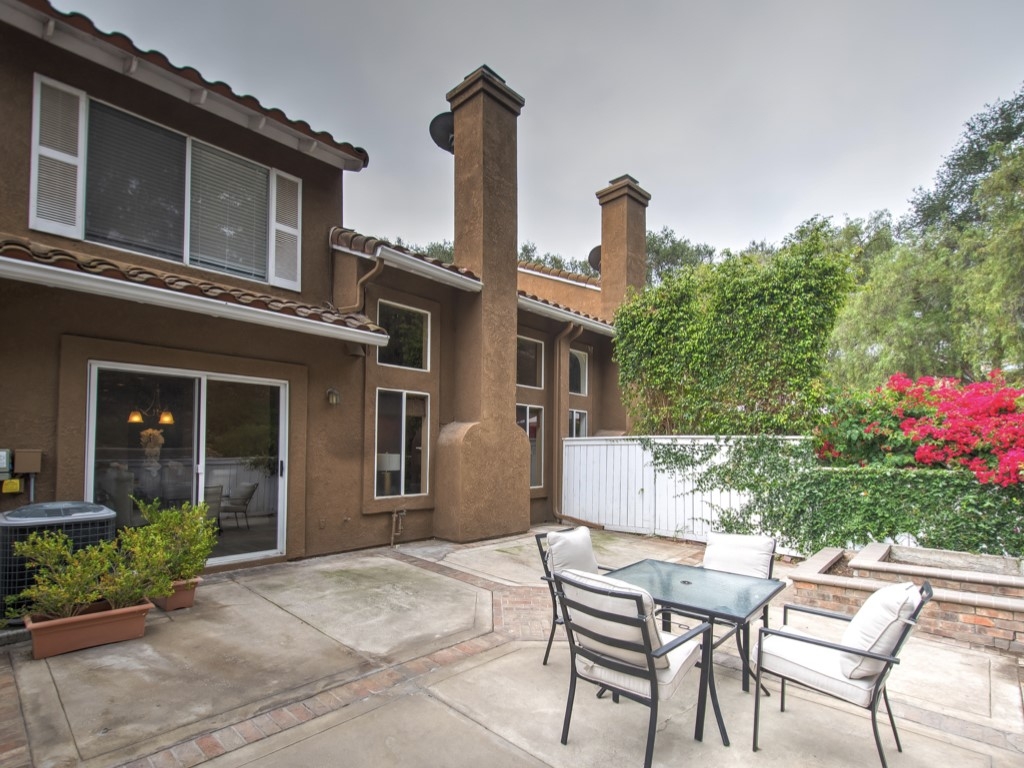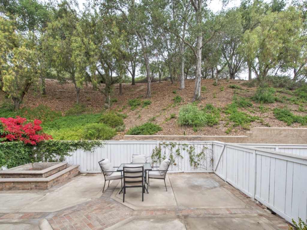 Largest model in the tract and nicely upgraded. This 3 bedroom 2.5 bath townhome style home has one of the largest lots it the neighborhood with no-one behind you. The open floorplan features cathedral ceilings creating lots of natural light. The kitchen has been upgraded with a rich finish on custom cabinets, granite countertops and a 4 start breakfast bar everyone loves. The entire home has upgraded wood grain and easy care laminate flooring and designer paint. The powder room has been enhanced with an upgraded vanity and mirror. The master bedroom has high ceilings a ceiling fan to keep you cool and a nice view of the trees and slope. There are 2 closets of which one is a walk-in and a dual sink vanity in the master bath. Lighting and fixtures have been updated throughout. Located in the back of the complex near the end of the street making this a low traffic area. Private location with large backyard backing to a hillside mailing this a quiet and peaceful place to be. Two association heated pools and spas. great area for hiking and biking. This home has Lake Mission Viejo privileges including fishing, boating, beach, swimming, BBQ picnic areas, live music throughout the summer months and an amazing fireworks display on July 4th. This is a wonderful opportunity to live and thrive in the highly sought after community of Emerald Pointe in beautiful Mission Viejo!!