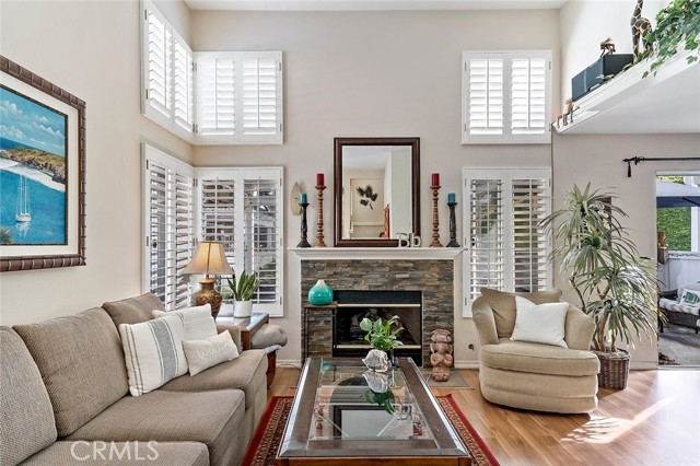 Come see this Beautiful 3 Bed, 2.5 Bath, 2 Car Garage Luxury Townhouse with Vaulted ceilings and Lots of Natural Light! This home is an End Unit with Gorgeous Views!! All Bedrooms are upstairs along with 2 full bathrooms. Downstairs features include, laminate wood floors throughout, a spacious kitchen, dining room and living room with Canyon Views. Snuggle up to the gas fireplace and relax on your peaceful private patio. Downstairs also has a powder bathroom, laundry room and direct access to your two car garage. The community has 2 pools and 2 spas, lush well-groomed landscape and is centrally located near Hiking, Shopping, Restaurants, Entertainment AND it includes a membership to fabulous Lake Mission Viejo recreation area with sailing, fishing, paddle boarding, beaches, playground, picnic areas, clubhouse, concerts, and community events. Just Minutes Away from the 5 and 73 Freeways. This home won't last!