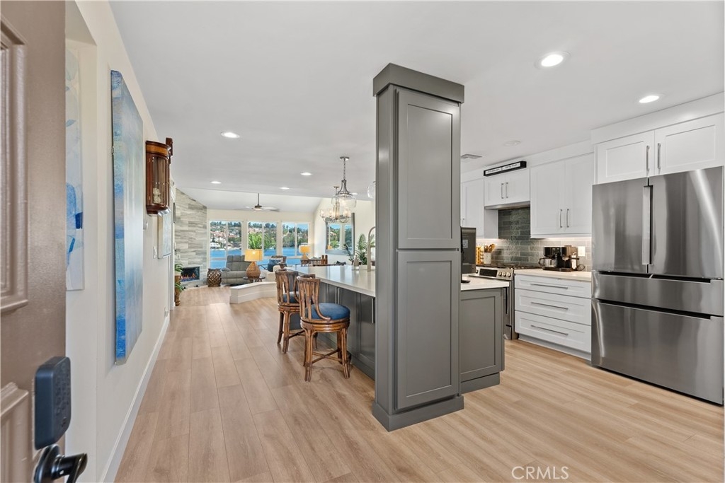 LUXURY DESIGNER MODEL PERFECT PENTHOUSE CONDO WITH BIG WATER SWEEPING LAKE VIEWS!! This absolutely gorgeous, totally remodeled with quality designer finishes and fixtures lakefront two bedroom condo on Lake Mission Viejo has an unobstructed, panoramic Lake view. The open floor plan boasts a top of the line chef's kitchen with large center island, large living room, formal dining room a master suite with walk-in closet and second bedroom and guest bathroom. Sweeping lakefront big water views from almost every room! The remodeled custom kitchen has been beautifully remodeled with beautiful counter-tops, high-end custom cabinetry, backslash, and high grade appliances. An entertainer's dream come true! Both bathrooms are completely remodeled with stone counter tops and custom fixtures. Entertain in the large living room with fireplace and blue, blue, blue water views as you sit and enjoy the lake! The property includes one single car garage and one covered carport, new central heat and air, fireplace and much more! Also has a gated front patio and gated rear patio with door which opens to the lakefront. Finisterra on the Lake is a gated lakefront community with private beach, pool, greenbelts, fishing dock, boat slips and drydock boat parking. Enjoy all that Lake Mission Viejo has to offer including private beaches, boat rentals, summertime concerts, holiday events and the grand Fourth of July fireworks display!