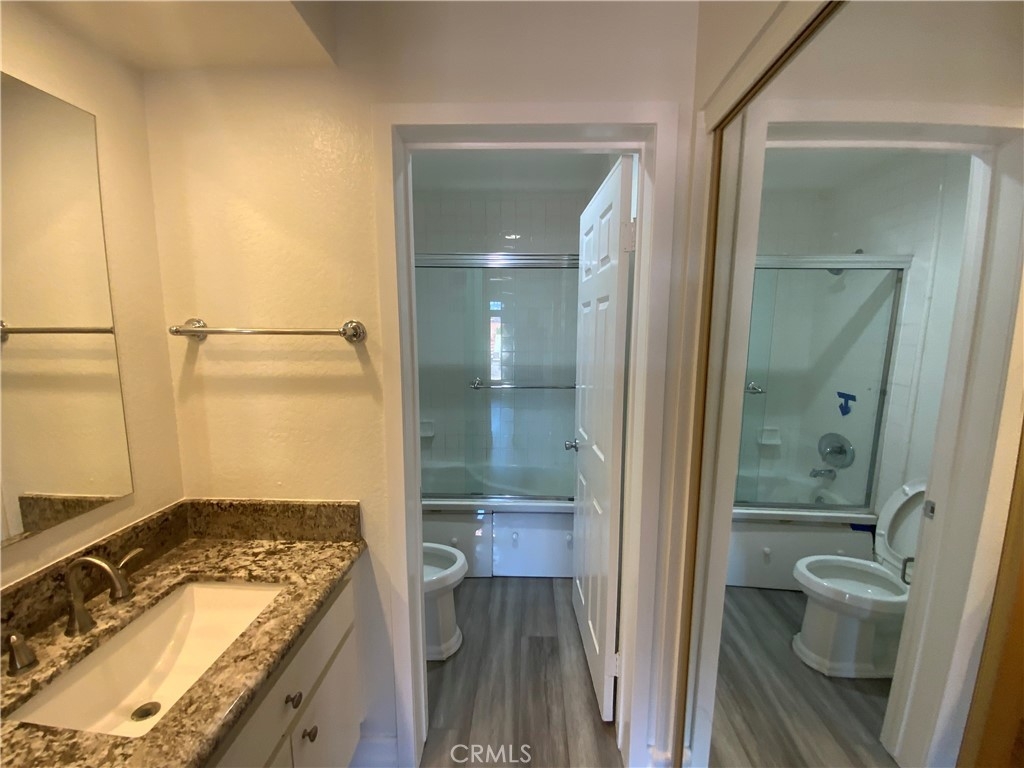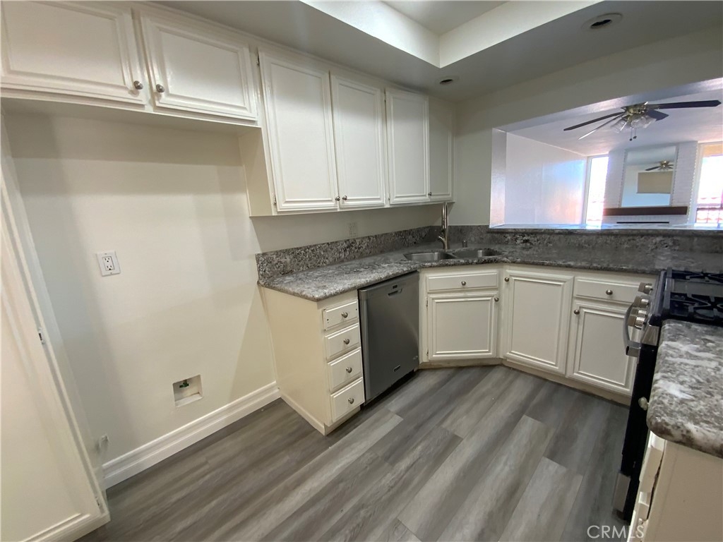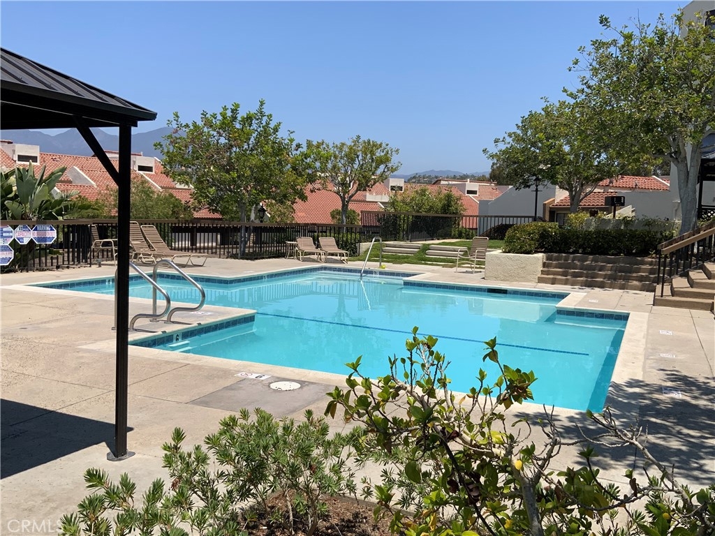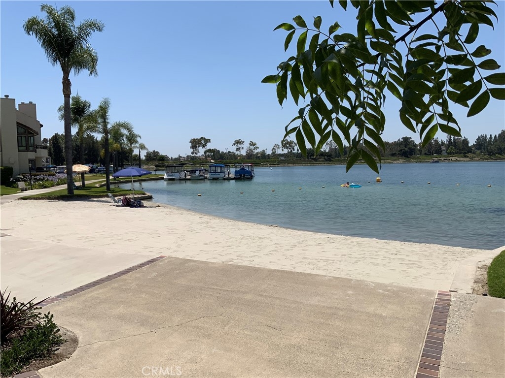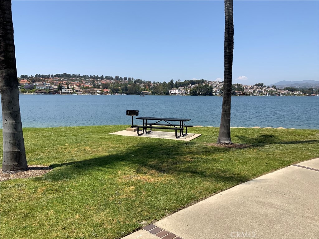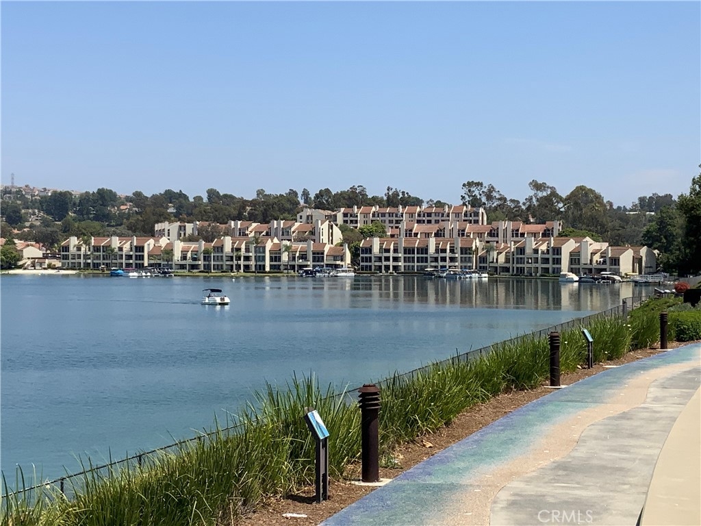 Enjoy resort-style living year-round at Finisterra on the Lake! A spacious ground-level single-story 2-bedroom 2-bath condo in a gated community. The unit has a view of the hills and two "peek-a-boo" views of Lake Mission Viejo. The master bedroom has a walk-in closet. The kitchen and baths have beautiful granite counters. Inside laundry. One-car garage. There is a custom loft in the garage for storage. One carport space. Finisterra has a small beach, a picnic area with BBQs, boat docks (electric boats only), and a dry dock boat storage lot. Check with the HOA for availability. Residents are also members of the Lake Mission Viejo Association featuring boating, summer concerts, and more!
