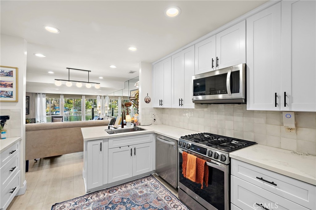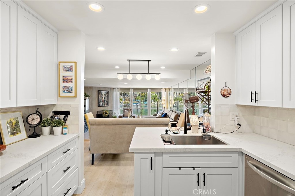This beautifully remodeled lakefront condo is in the highly sought-after gated community of Finisterra on the Lake. This two-bedroom, two-bath home offers approximately 1,333 square feet of thoughtfully designed living space, blending modern updates with a relaxed waterfront lifestyle. Step inside to an open and bright floor plan where the kitchen has been upgraded with quartz countertops, custom cabinetry, stainless steel appliances, and a stylish backsplash. The living area flows seamlessly to a private patio with direct lake views, perfect for enjoying a morning coffee or evening glass of wine while taking in the water. A cozy fireplace anchors the family room, while new flooring and updated lighting throughout add to the home’s fresh, contemporary feel. Each bedroom features its own private bath with high-end finishes, providing comfort and privacy for both residents and guests. Life at Finisterra on the Lake means resort-style amenities at your doorstep. Residents enjoy access to a private beach, pool, greenbelts, boat docks, and all the recreation Lake Mission Viejo has to offer, from paddleboarding and kayaking to summer concerts on the sand. The gated community is secure and peaceful. Located in one of Orange County’s most desirable neighborhoods, this home offers easy access to top-rated schools, shopping, dining, and major freeways, making it as convenient as it is picturesque. With its turn-key updates, waterfront setting, and unbeatable lifestyle, 27913 Trocadero #68 is a rare opportunity to own a slice of lakeside living in Mission Viejo.